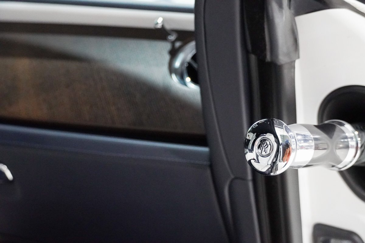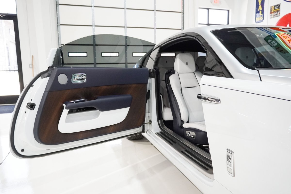This is a remarkable opportunity for Rolls Royce ownership. Simply immaculate in and out, this motorcar has traveled just over 17,000 carefully driven miles from new. This example is finished in Arctic White with the factory contrast upper Two-Tone White Sands (light gold tone) that was recently custom wrapped in a gorgeous silver hue as the perfect complement for the Artic White exterior finish. Tastefully appointed with the Navy Blue and Arctic White interior, it's a head-turner that was crafted for the most discerning motoring enthusiast.
