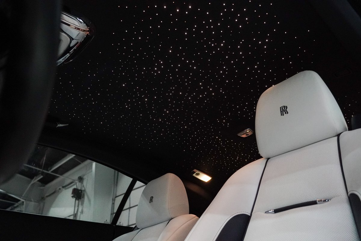 Inside, the Wraith is a testament to the art of luxury, with plush leather, exquisite wood trim, and an array of high-tech features that would make even Tony Stark raise an eyebrow. The starlight headliner, with hundreds of tiny LEDs to mimic a starry night sky, is a particularly delightful touch.