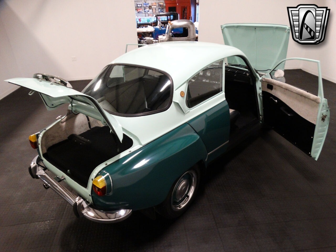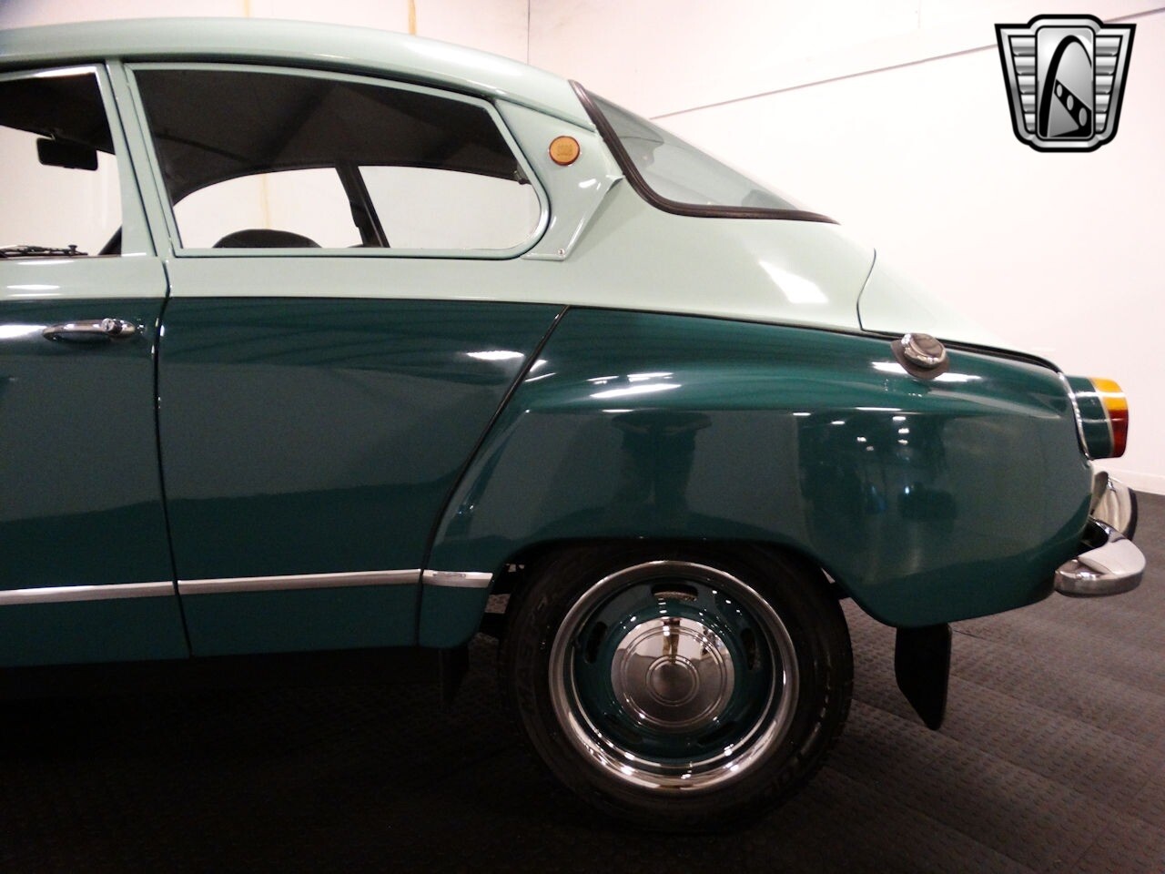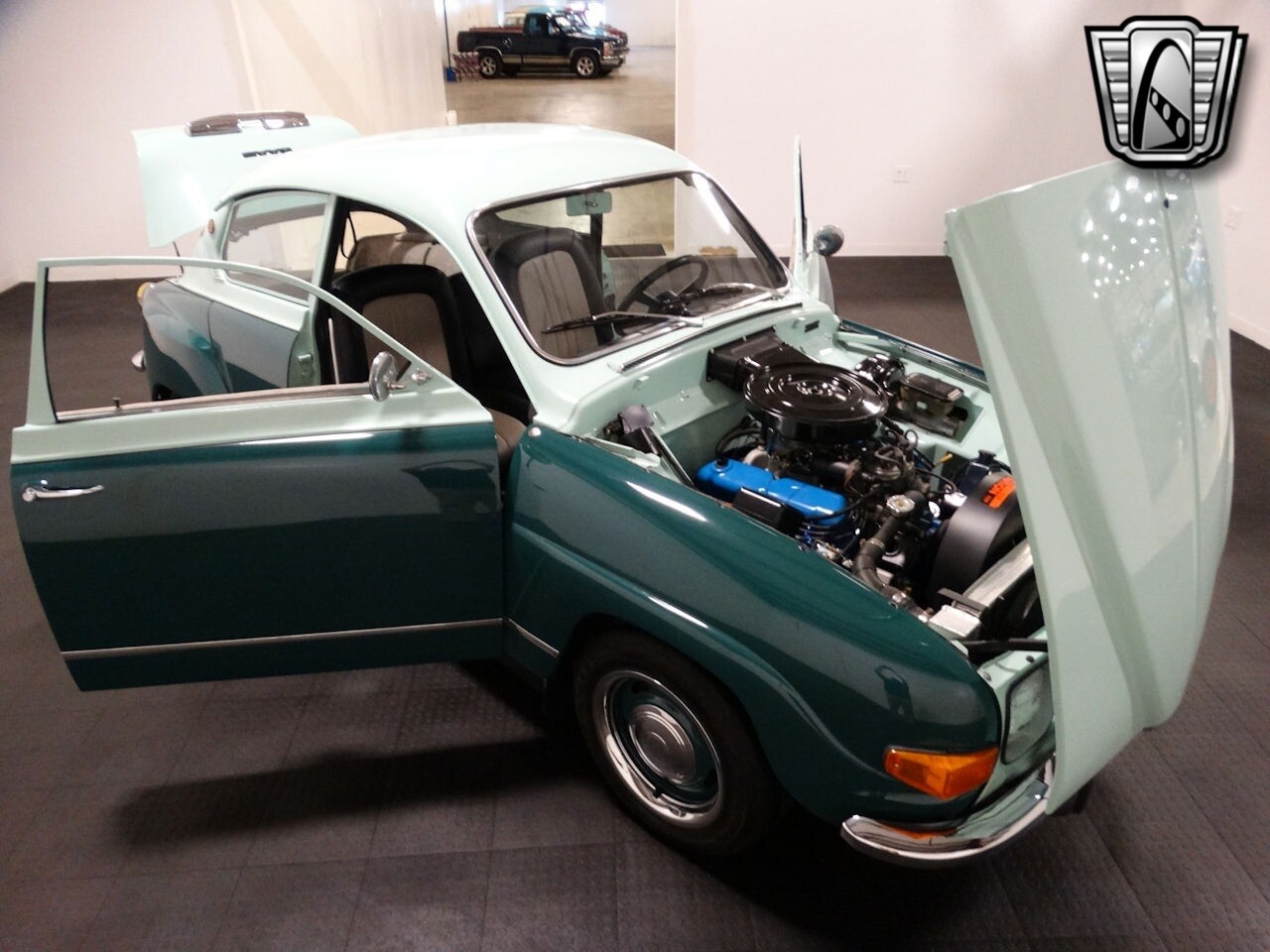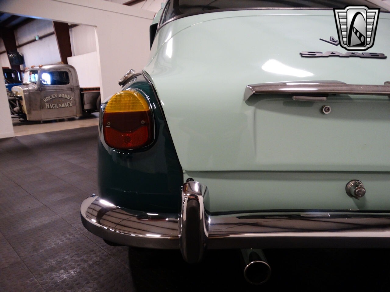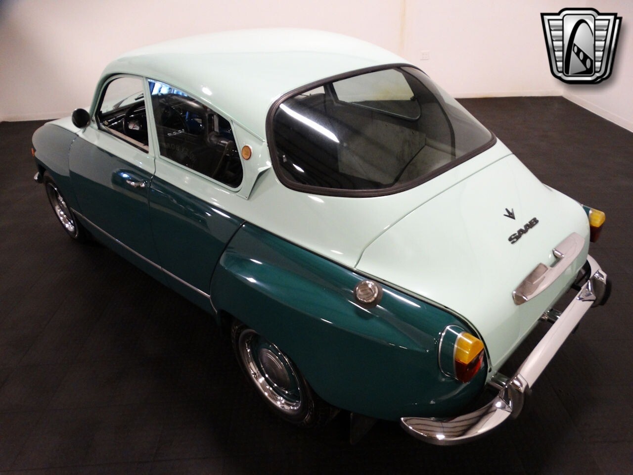 Gateway Classic Cars of Louisville is proud to present this 1971 Saab 96! Ending the 50s Saab was still a fairly new car company founded in 1945. Saab wanted to refresh their aging 93 model car and in 1960 the 96 was unveiled. [ omitted ]. The two-tone light and dark green paint looks sharp, has a nice luster and certainly takes you back to the era. The black and gray vinyl interior looks nice and in good order. You will probably surprise some people at a red light with what is under the hood of this ride. Powering this Saab is a Ford 302ci V8 engine backed by a 3-speed automatic transmission. This little car runs and drives out well and is very fun. She is sporting a 2.73 gear ratio, great for cruising. Current owner has had her for over 3 years, acquired from a private owner. The title is clean and clear and ready to be transferred into your name now! We see all sorts of customized cars in here, but this little Saab feels special and is ready for its new home. Options on this 96 are: Power Steering, Power Brakes, Vinyl Interior, Hub Caps, and Radial Tires. [ omitted ]. [ omitted ]. .
