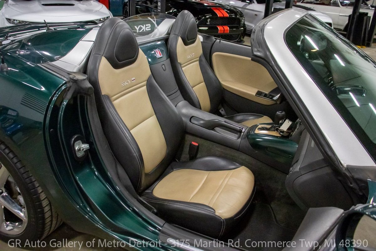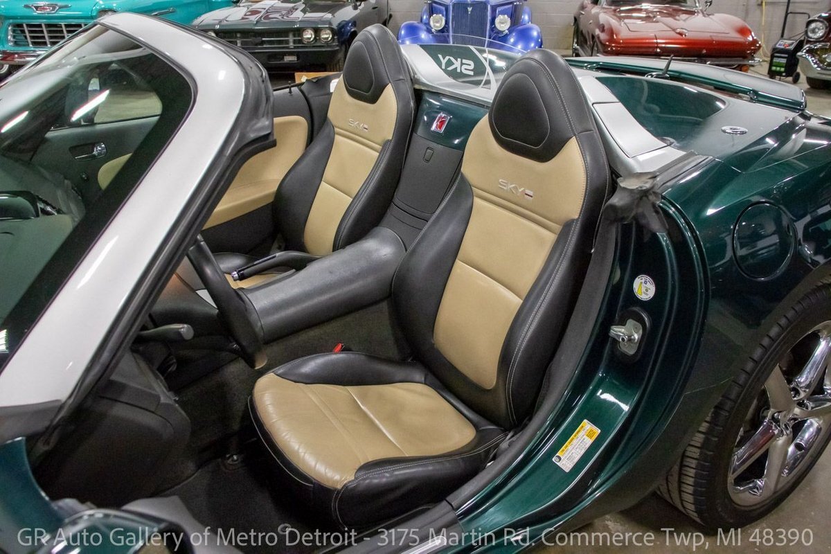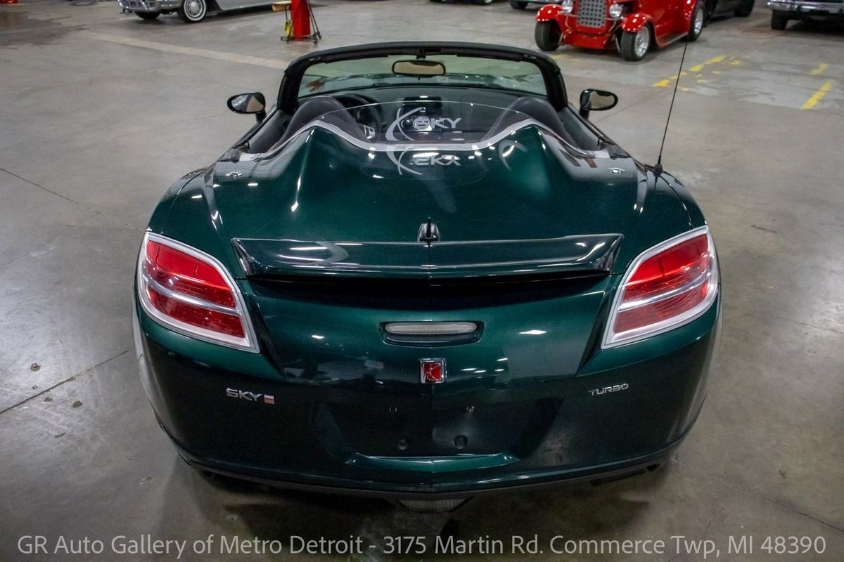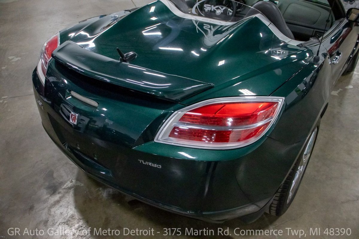 GR Auto Gallery is pleased to present this 2007 Saturn Sky Red Line for your consideration. This Saturn comes in a beautiful Emerald Green exterior over a clean Black and Tan leather interior. Powering this Saturn is a Turbocharged 2.0 Liter 4 Cylinder producing 297hp paired with an automatic transmission. This Saturn comes with some great features such as; a new convertible top, stage 2 OEM turbo upgrade kit, power locks, brakes and steering, functional heat and air conditioning, wind restrictor, sequential turn signals, white/yellow front blinkers, new OEM hood vents, redline struts replaced with stock struts, pvd bright chrome wheels, premium radio, 2 gm lift pad adapters, car cover and much more. This Sky has been meticulously maintained and upgraded tastefully throughout its ownership and is ready to cruise. Drive this one out of our showroom or have us assist with shipping it to you anywhere in the United States! Don't hesitate to call us with any questions or for more information.