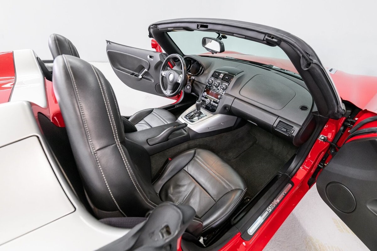 This totally original 2007 Saturn Sky is a stunning roadster. Pontiac/Saturn engineers used design concepts of the Corvette chassis to build a quiet, solid roadster. Saturn produced the Sky for only three model-years, 2007-2009. (A handful of Sky's were built as 2010 models before the Pontiac/Saturn plant in Wilmington was shuttered in mid-2009.) The Saturn Sky is very rare on the resale market today, and a really nice one like this is seldom seen. Our 2007 Sky is a 1-family gem with just under 44,000 miles showing on the odometer. (Extensive service documentation/Owner's Manual included.) The original Chili Pepper Red finish is in excellent condition and 18" 5-spoke polished alloys mount Goodyear Eagle radials. The tasteful ebony leather interior has been well maintained. Convenience features include air conditioning, power locks, dual airbags, keyless entry, power tinted windows and remote trunk release. This Sky is also equipped with a premium AM/FM/CD system, power driver seat, tilt wheel, full gauge package w/tach and cruise control. The convertible top is manually operated. This Saturn Sky is powered by GM's 2.4L 4-cylinder, dual overhead cam Ecotec LE5 motor with Variable Valve Timing that produces 177 BHP @5100 RPM. The power is delivered through a GM 5L40-E 5-speed automatic gearbox. The chassis is equipped with close-ratio power steering, 4-wheel anti-lock power disc brakes, fully independent suspension and front/rear sway bars. This sharp Saturn Sky will soon move to a new owner's garage – why not yours? ALL VEHICLES SOLD "AS IS".