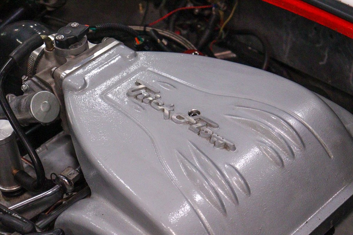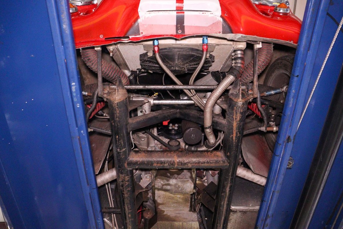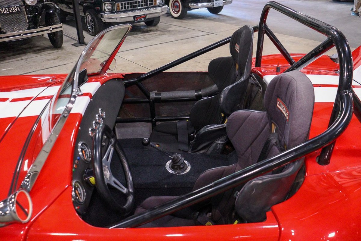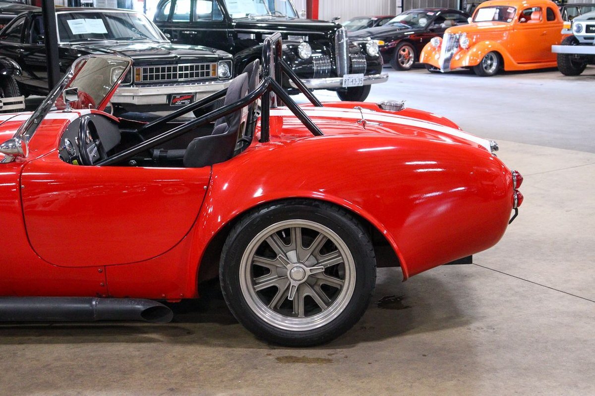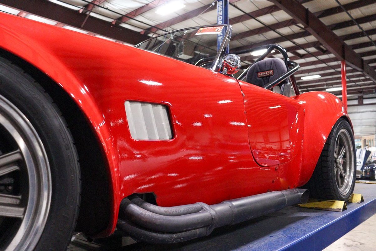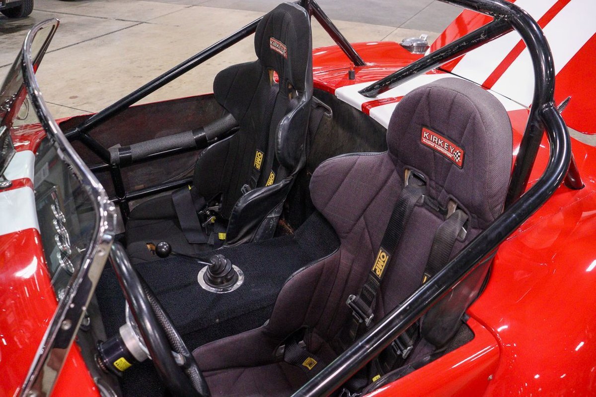 A fuel-injected 5.0-liter Ford V8 sends power to the rear wheels through a Tremec T5 five-speed manual transmission and has been fitted with a Trick Flow Stage 1 roller camshaft, cylinder heads, and upper intake manifold plenum. The fiberglass body is finished in red with white center stripes, and additional features include 17" Haibrand-style wheels, a roll cage, and a three-link 8.8 rear axle with 3.27:1 gears in addition to aluminum Kirkey racing seats, OMP harnesses, AutoMeter instrumentation, Talbot Berlin-style mirrors, and a Le Mans-style fuel filler. Vehicle has a Michigan Title and is listed as a 1965 Shelby Cobra