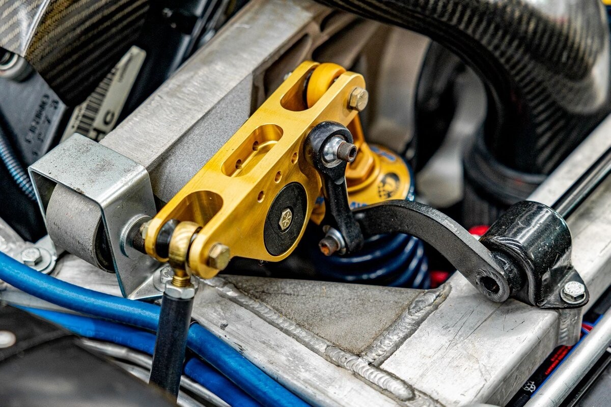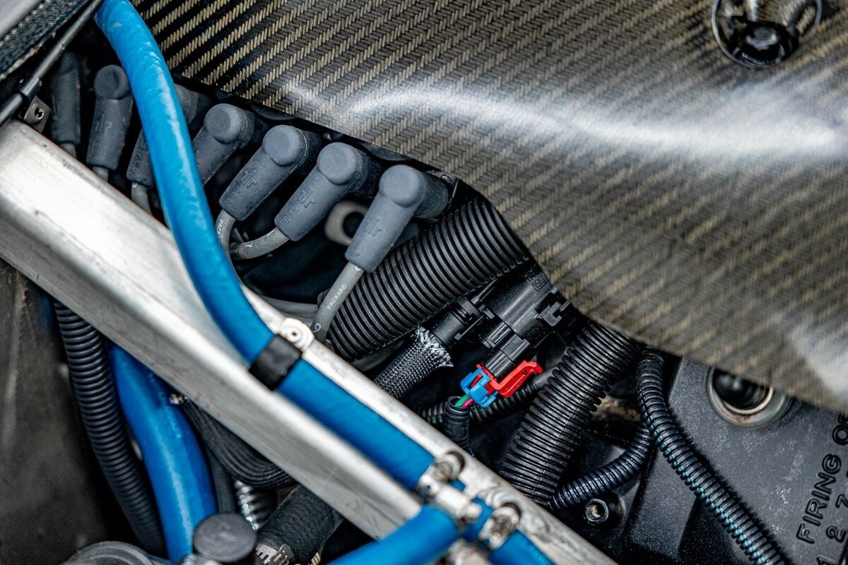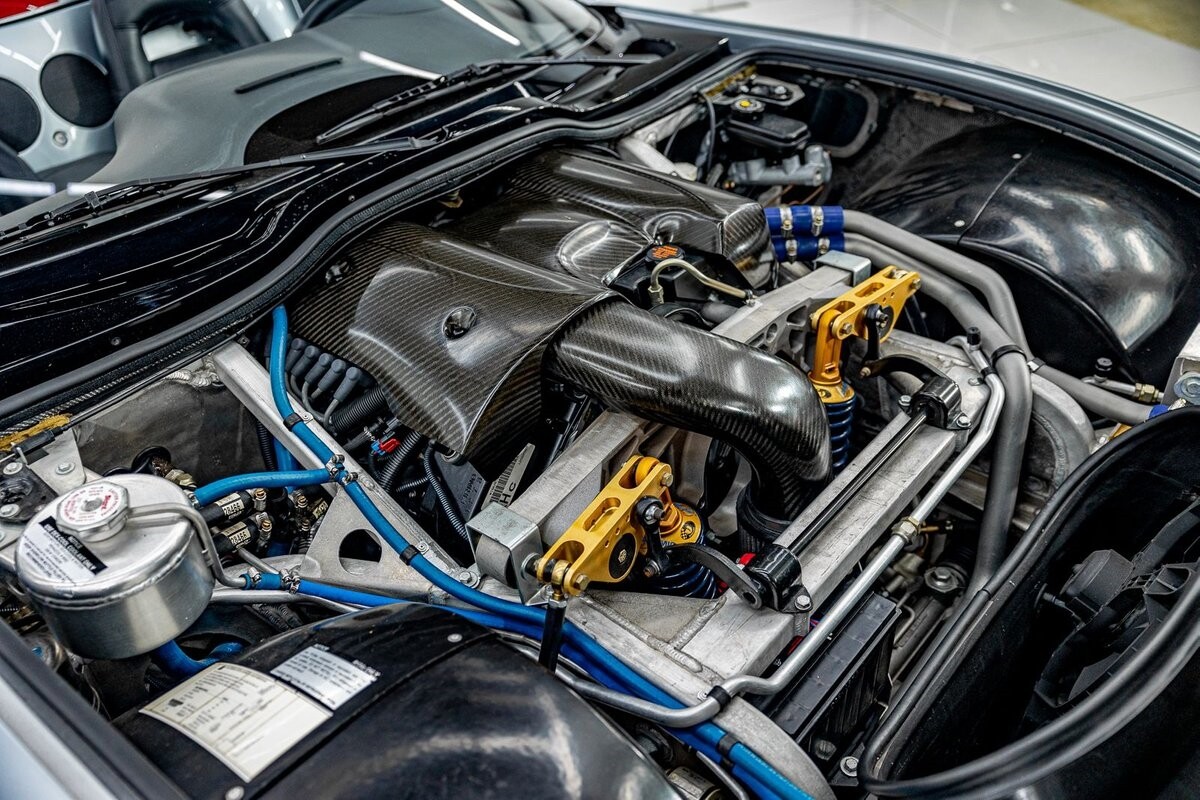 ENGINE COMPARTMENT: Pop the hood and you'll find a very impressive engine bay. The exposed aluminum frame is impressive with the dual wishbone control arms and the high tech inboard over rocker coil over suspension with remote dampening. Jam-packed in the center of all this is the Aurora 4.0L V8 packing a punch of 320HP. It is mated to a ZF 6 speed manual transmission that was exclusively modified to fit these cars! Sitting on top of the engine are very nice carbon fiber covers that add to the appeal of the engine bay!