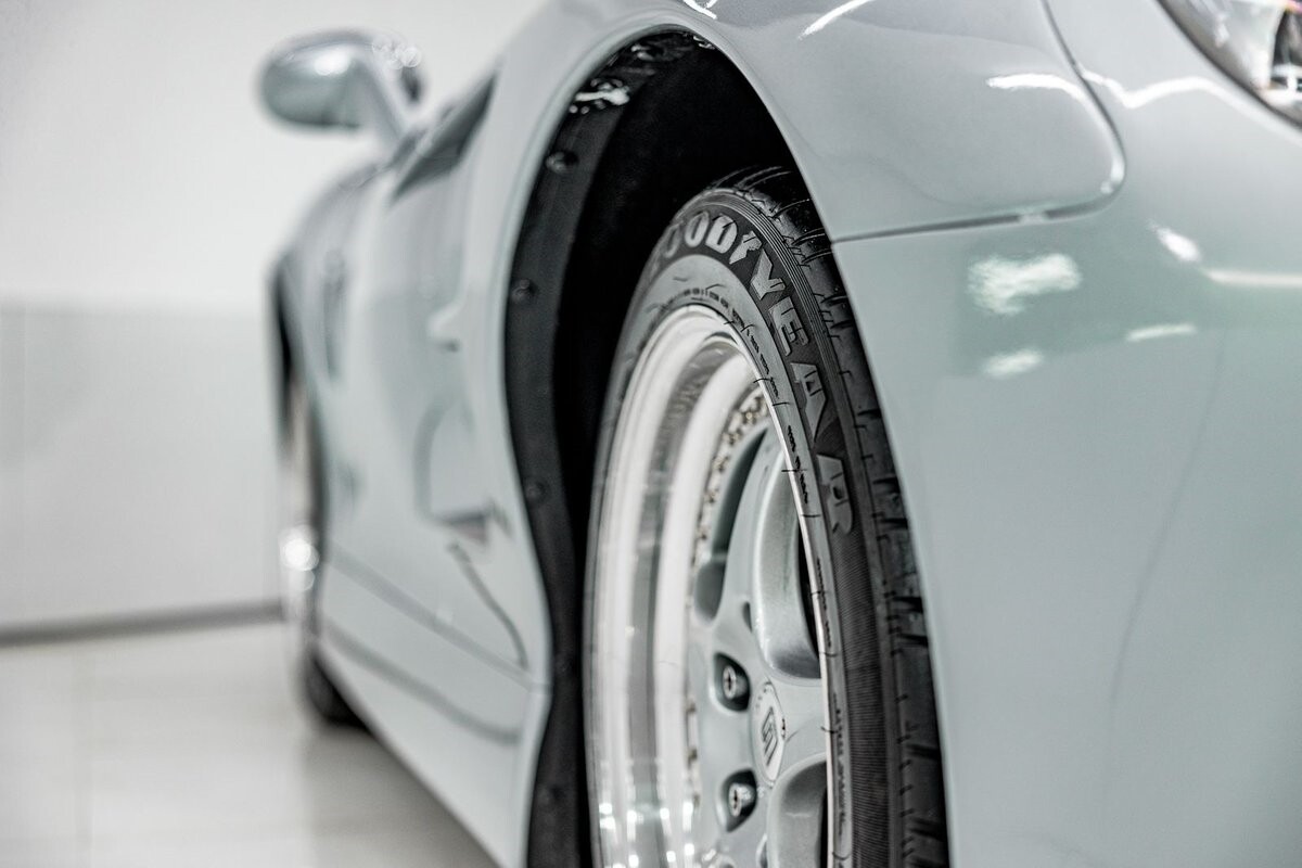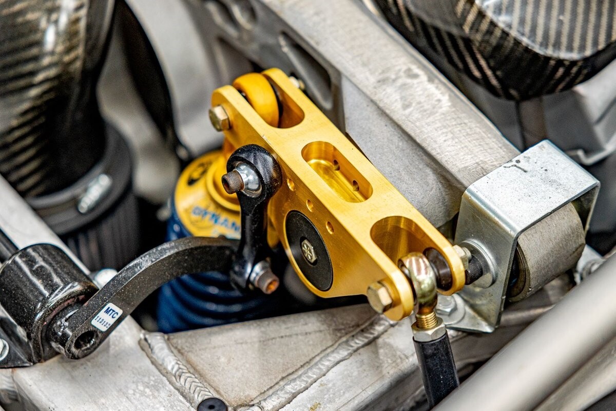 UNDERSIDE: Underneath the car is spotless and impressive! The all aluminum chassis is a sight to see. This car is equipped with 4 wheel independent suspension, dual stainless steel, Borla exhaust with a nice rumble, and 4 wheel disc brakes!