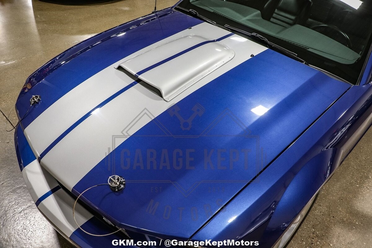 Under the hood, the 4.6L V8 engine roars to life, embodying the powerful spirit of Shelby performance. Mated to a 5-speed manual transmission, this GT Coupe provides an engaging driving experience that enthusiasts crave. The Vista Blue exterior is a striking and iconic choice, paying homage to the classic Shelby color palette and ensuring that the car turns heads wherever it goes. Complemented by a sleek black interior, the color combination is timeless and exudes a sense of sporty sophistication.