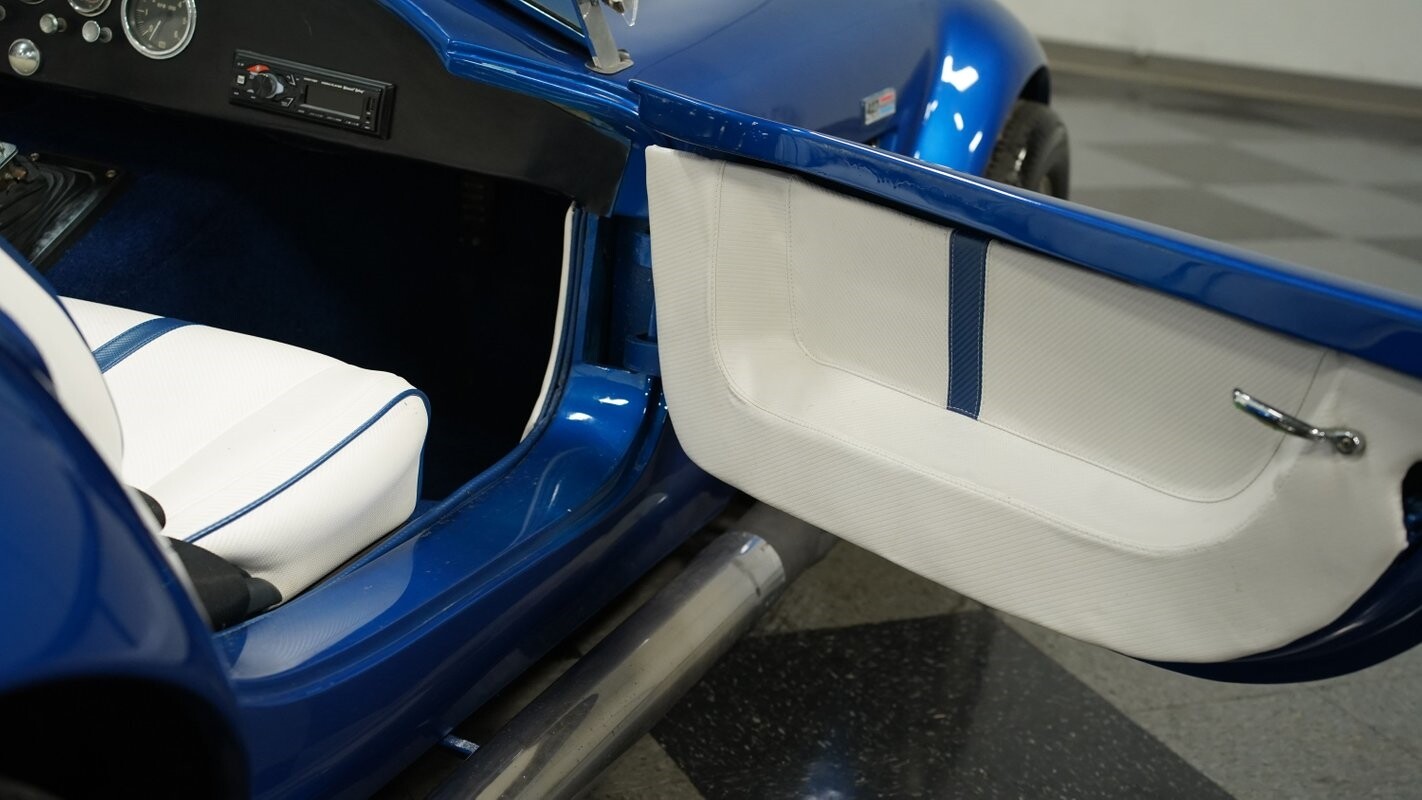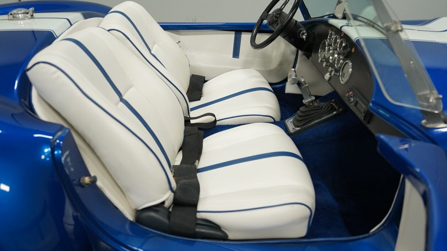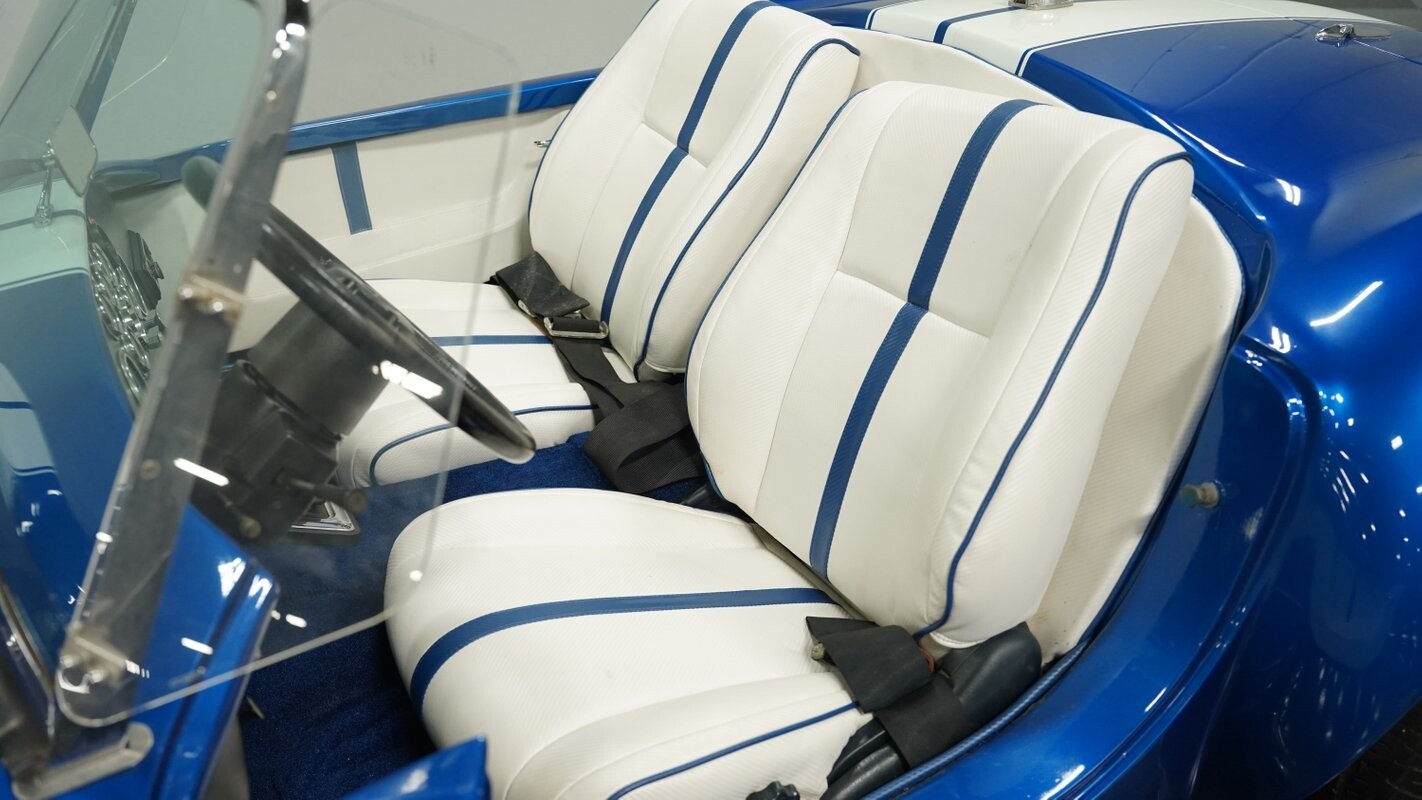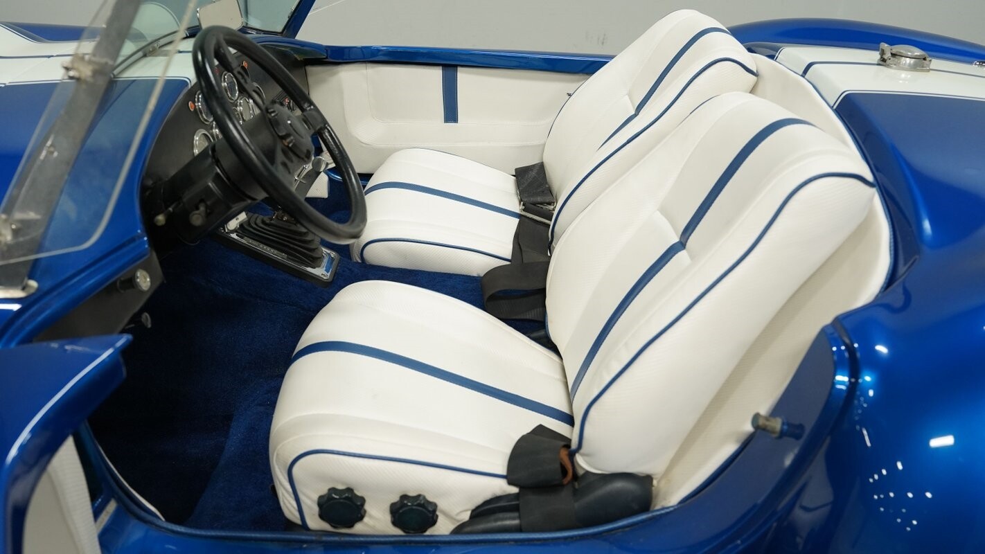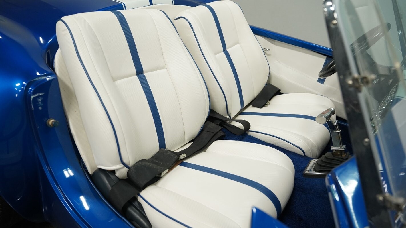 • Bucket Seats in White Vinyl Upholstery with Blue Accents