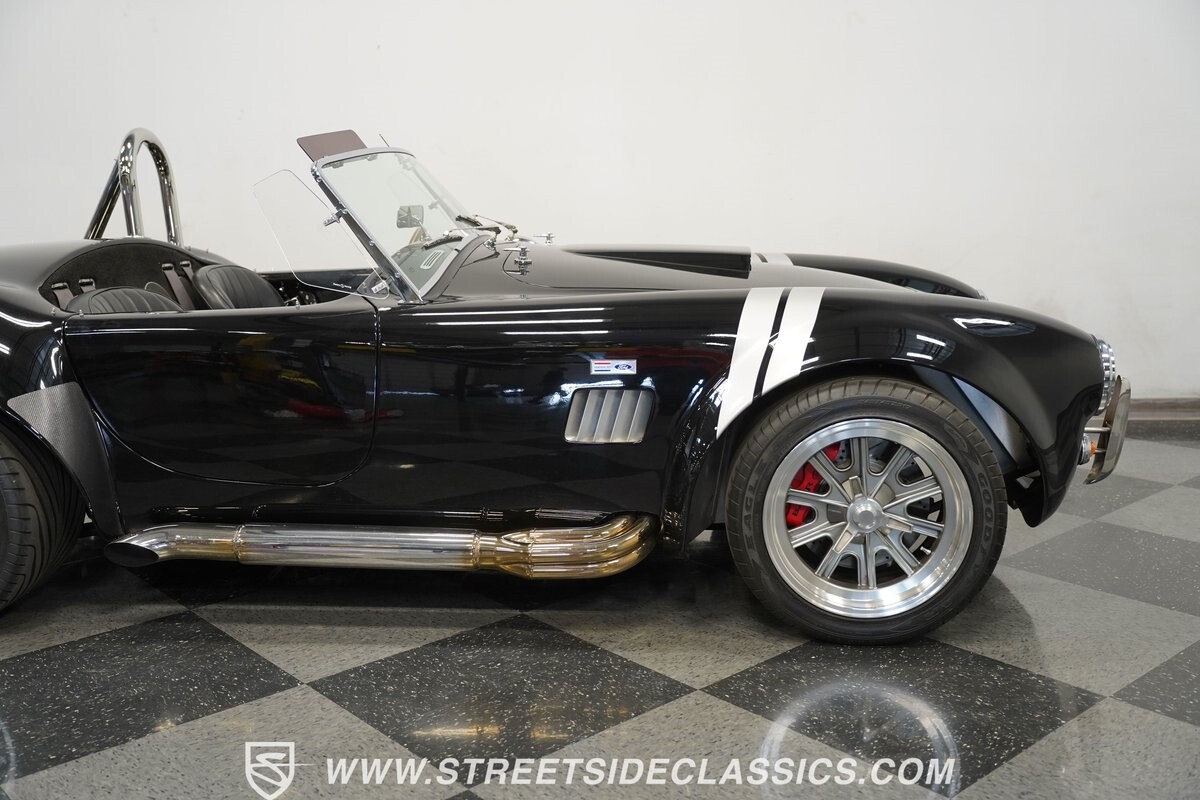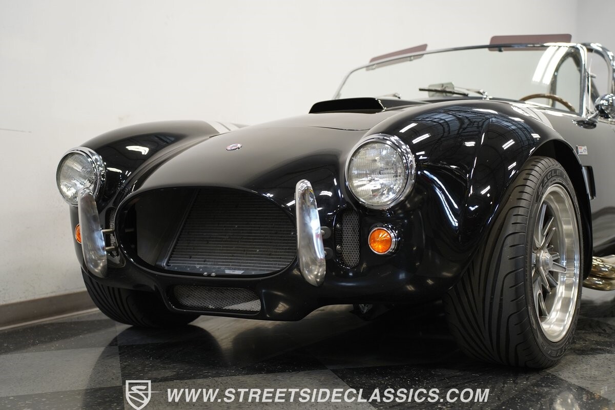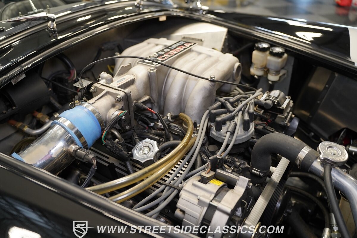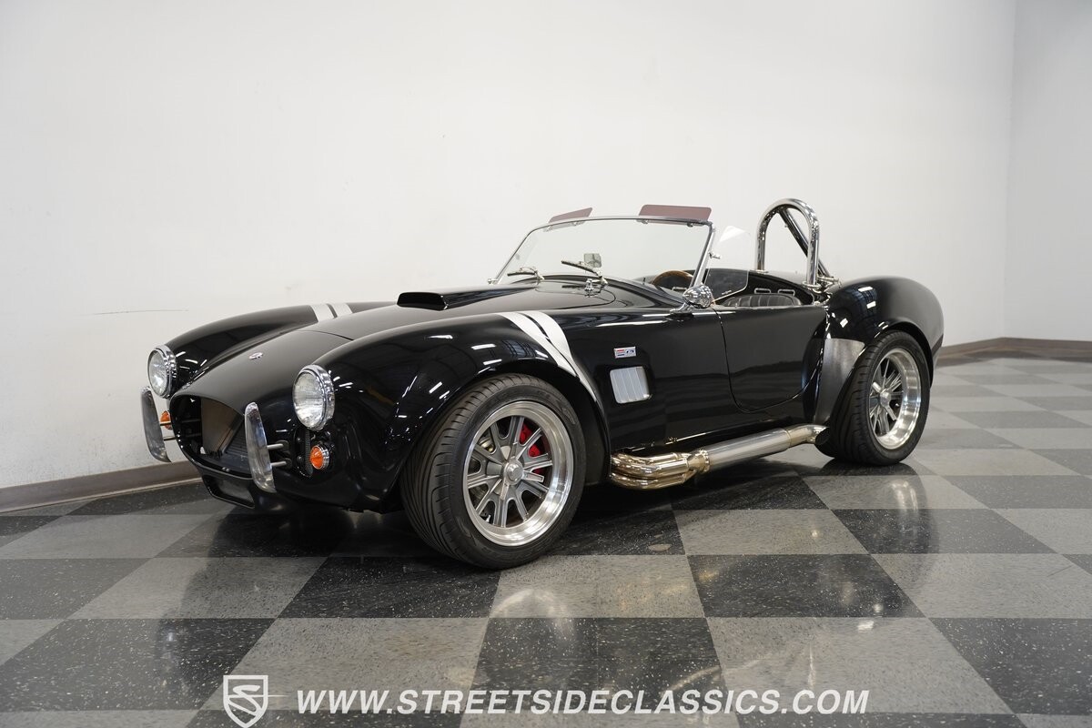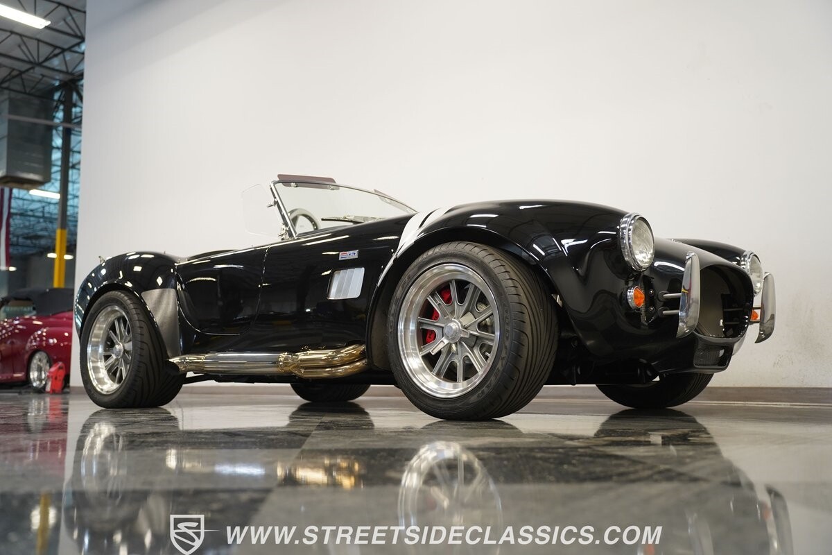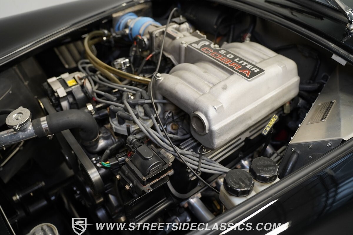 Under the hood, this Cobra uses Ford's other famous engine. The 5.0-liter Windsor small-block V-8 is a two-bolt main from the 1991-1996 era of Mustang engines, featuring electronic fuel injection, so there are no fussy carburetors to deal with. That power is then funneled through a (more) modern Borg and Warner T5 five-speed manual transmission. No mufflers necessary when talking about a Cobra, as the long tube headers link right up to the big side pipes to announce your arrival long before you get there.