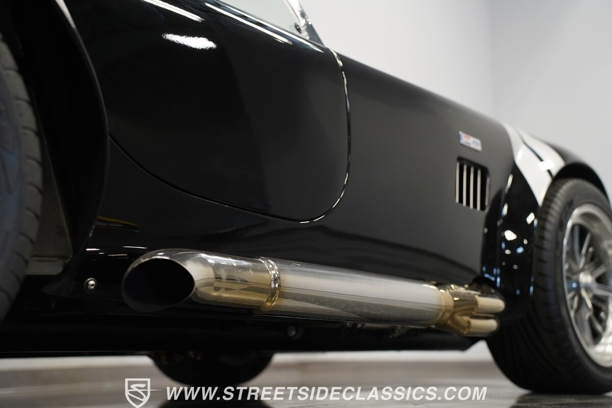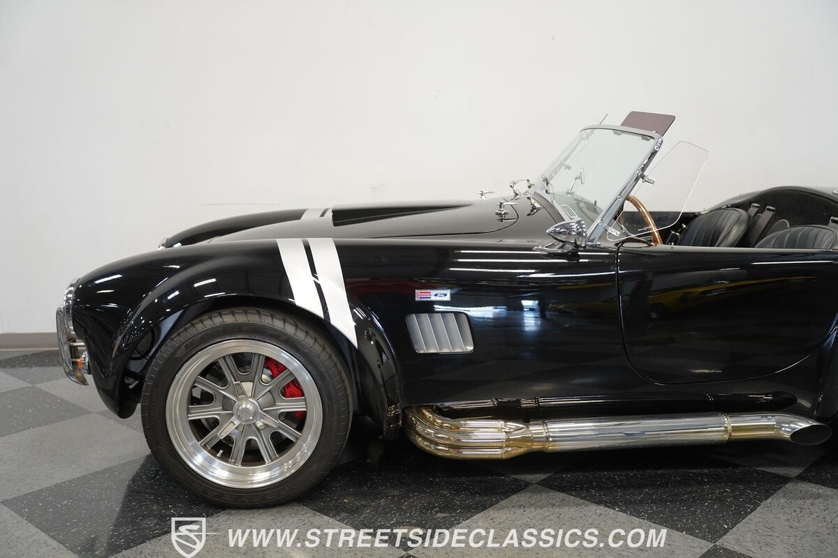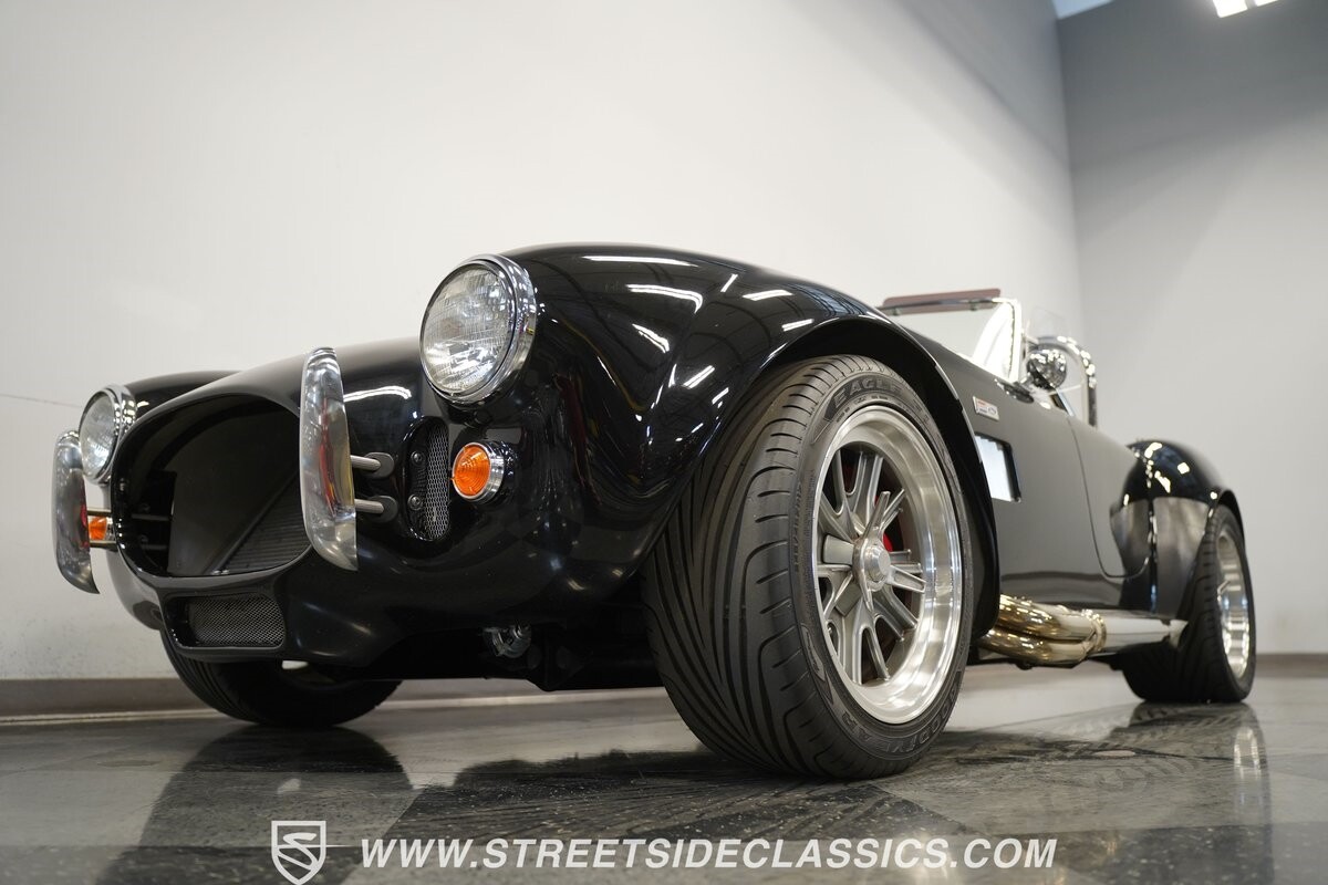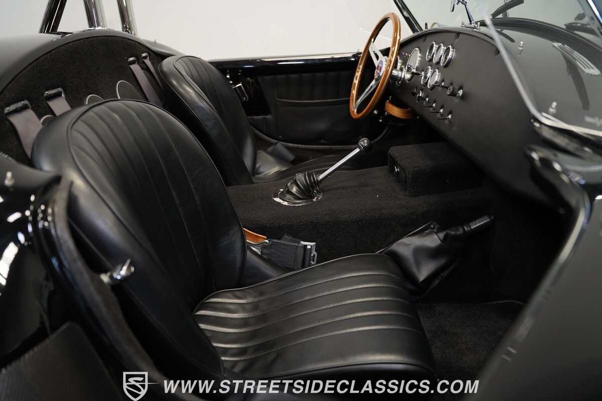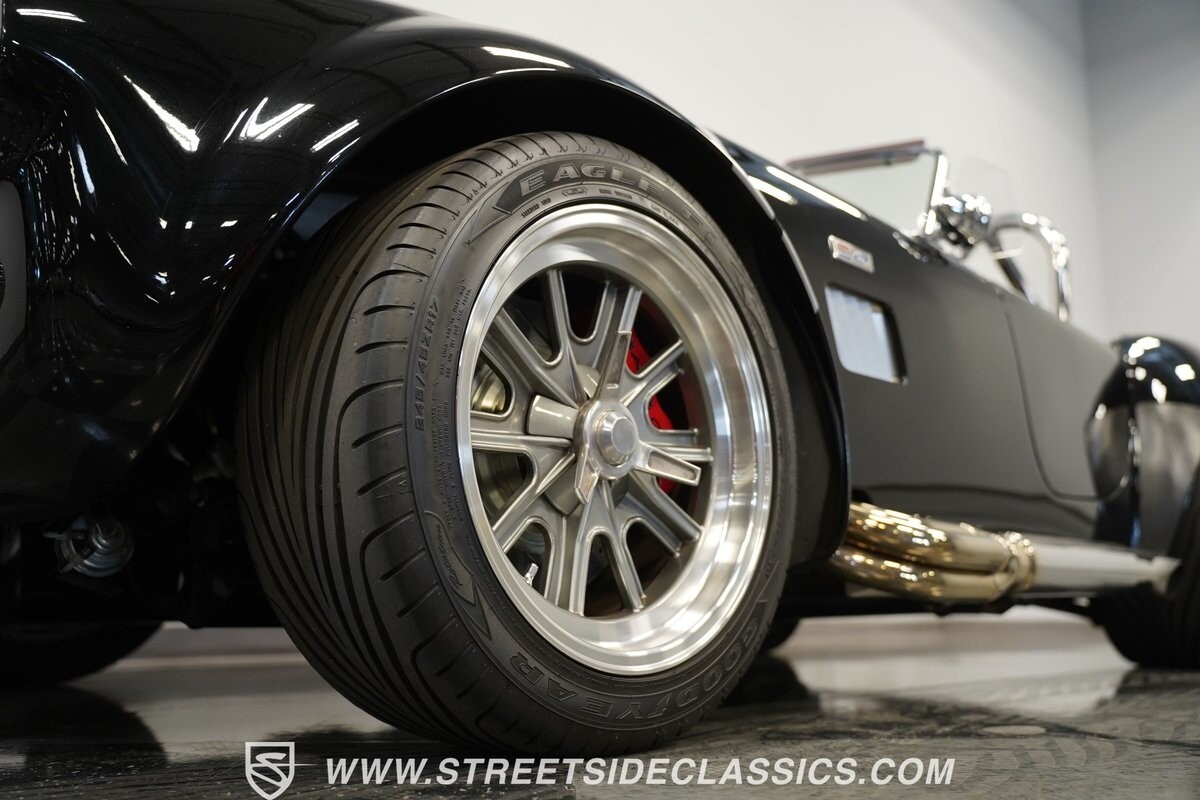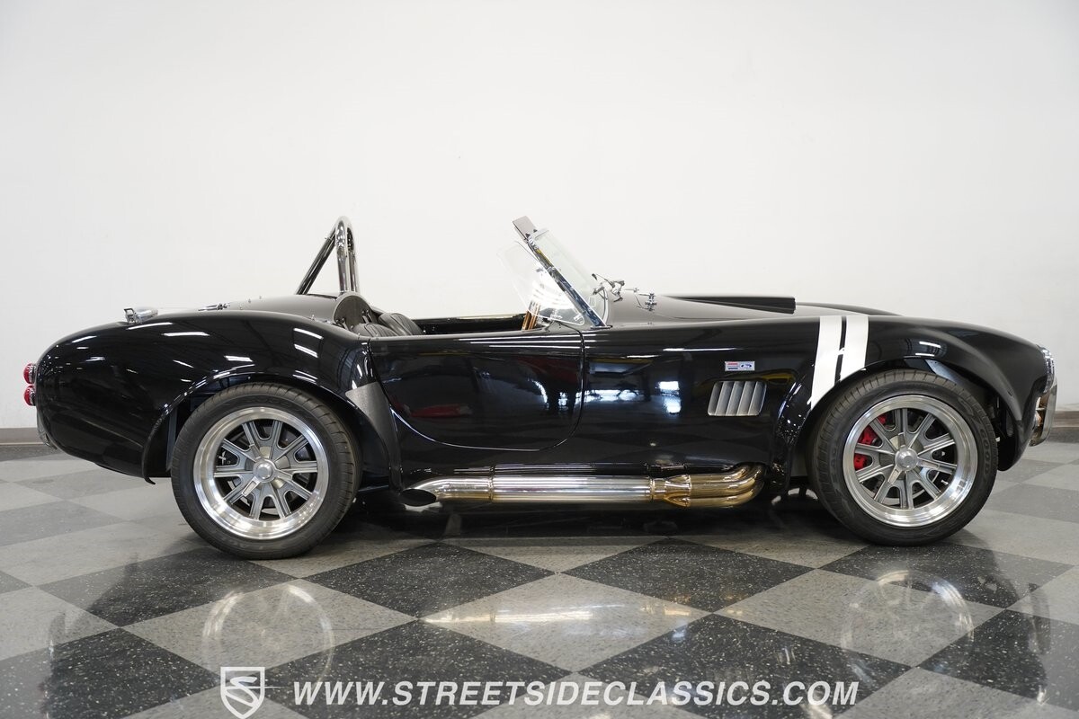 Under the hood, this Cobra uses Ford's other famous engine. The 5.0-liter Windsor small-block V-8 is a two-bolt main from the 1991-1996 era of Mustang engines, featuring electronic fuel injection, so there are no fussy carburetors to deal with. That power is then funneled through a (more) modern Borg and Warner T5 five-speed manual transmission. No mufflers necessary when talking about a Cobra, as the long tube headers link right up to the big side pipes to announce your arrival long before you get there.