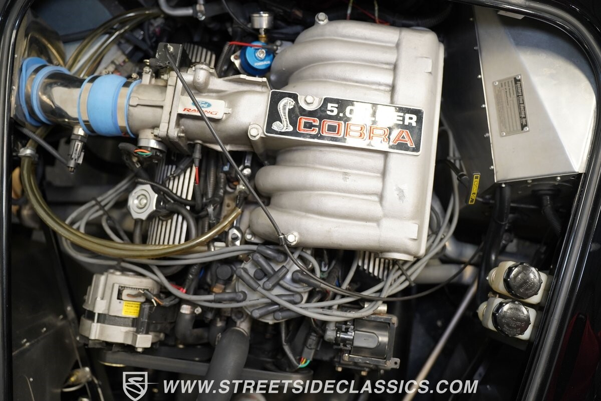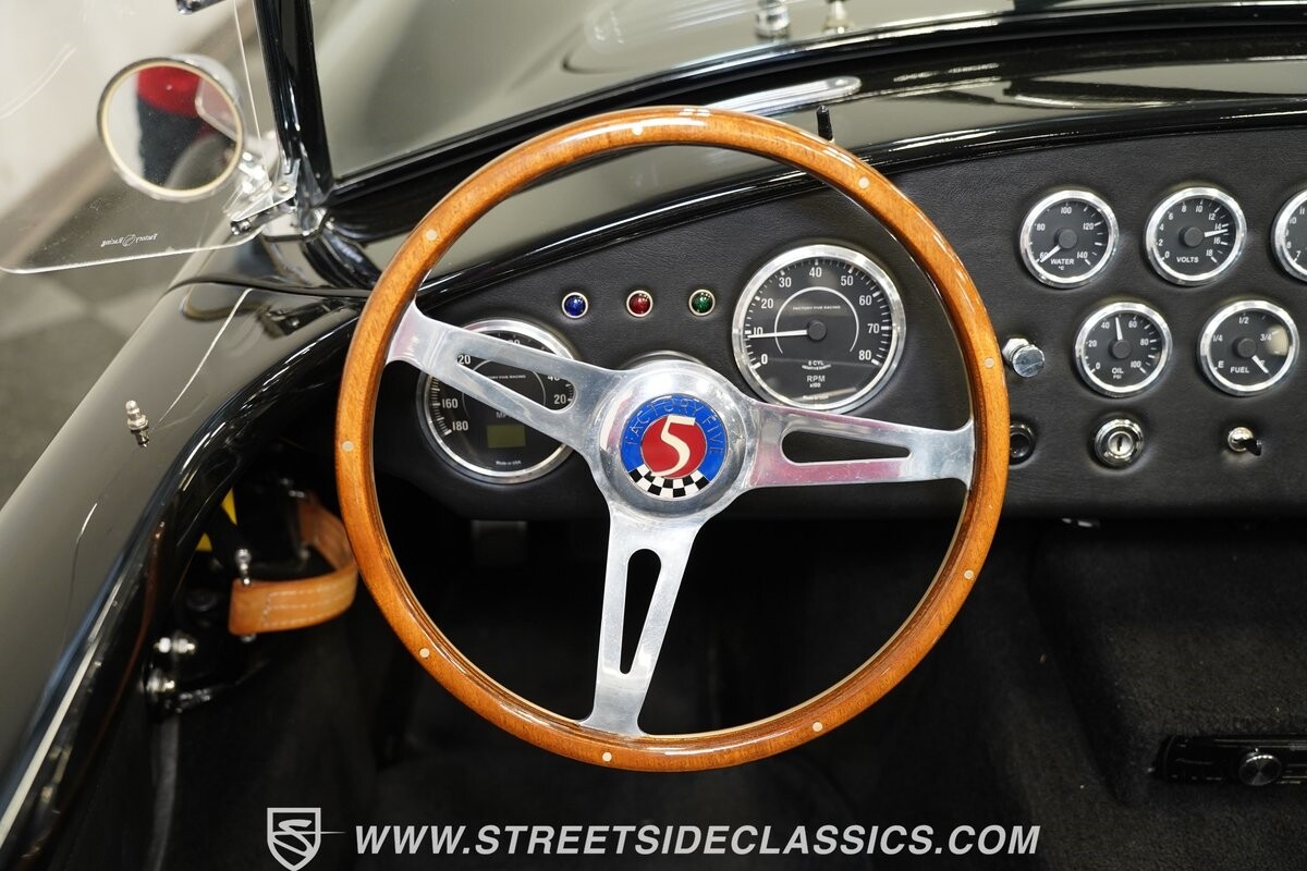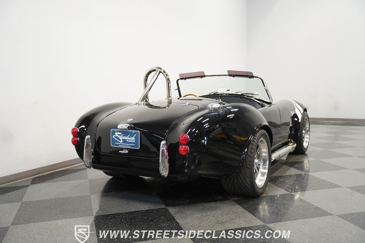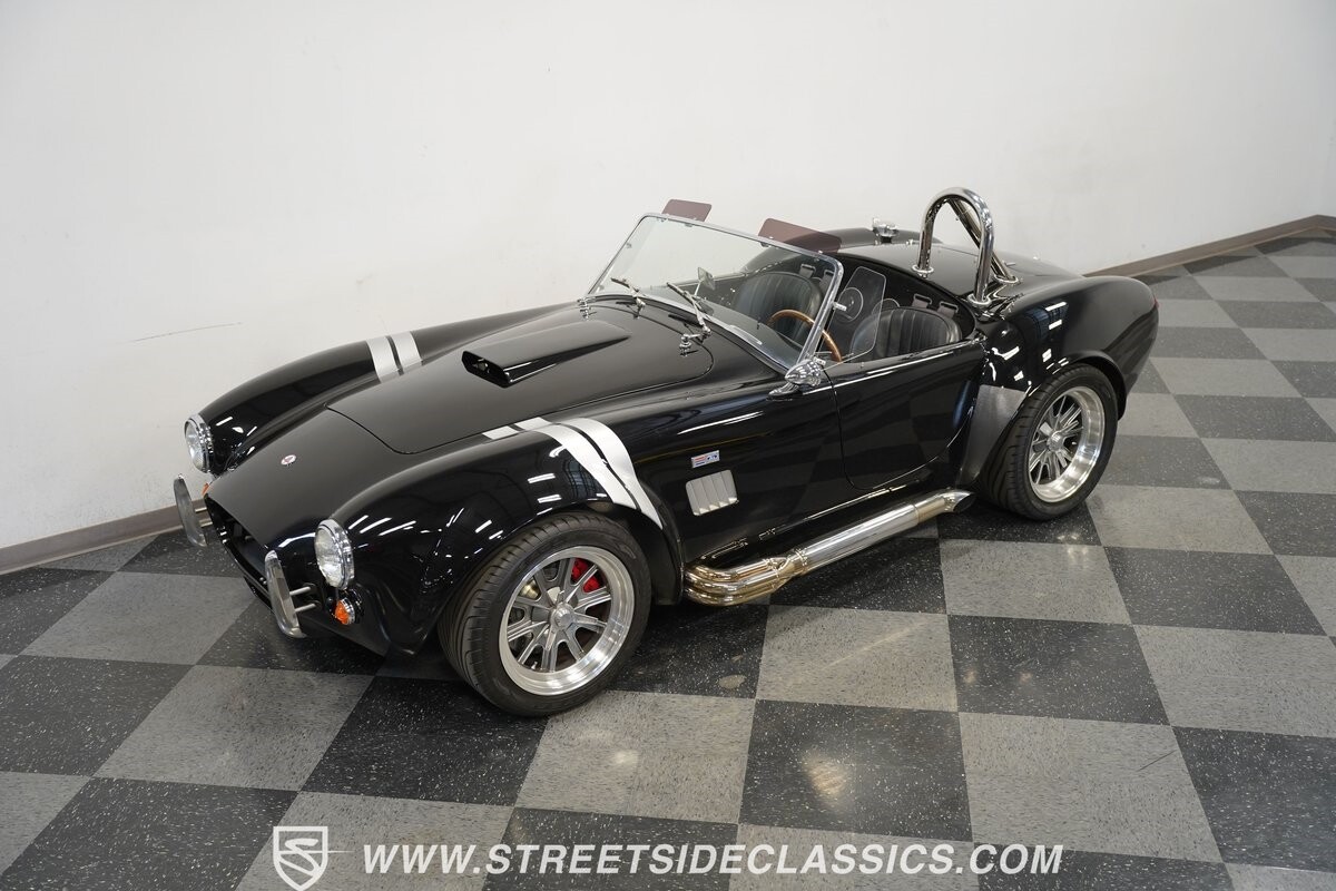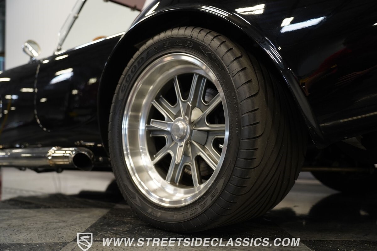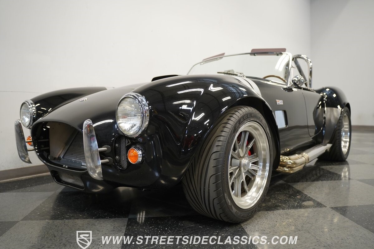 Under the hood, this Cobra uses Ford's other famous engine. The 5.0-liter Windsor small-block V-8 is a two-bolt main from the 1991-1996 era of Mustang engines, featuring electronic fuel injection, so there are no fussy carburetors to deal with. That power is then funneled through a (more) modern Borg and Warner T5 five-speed manual transmission. No mufflers necessary when talking about a Cobra, as the long tube headers link right up to the big side pipes to announce your arrival long before you get there.