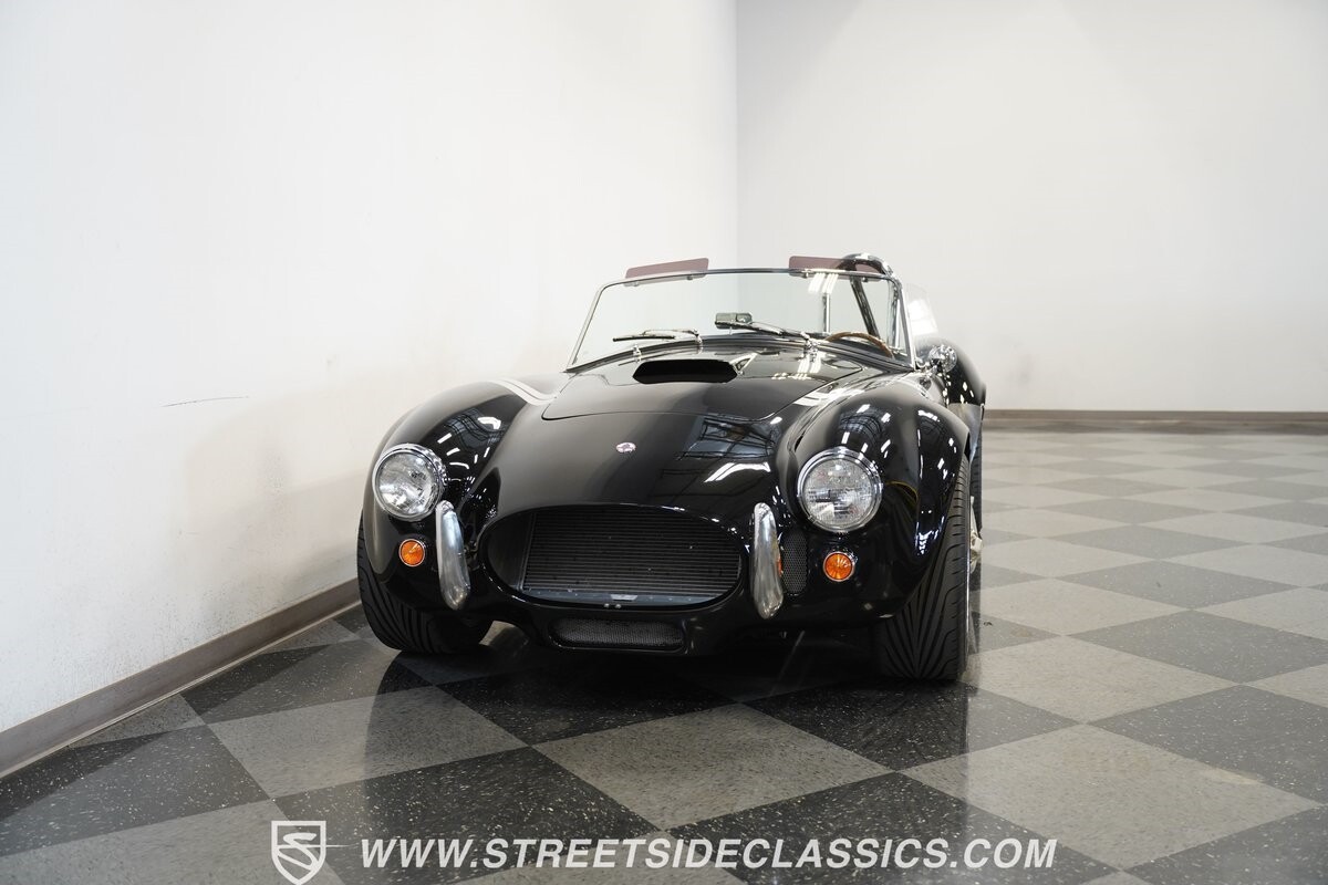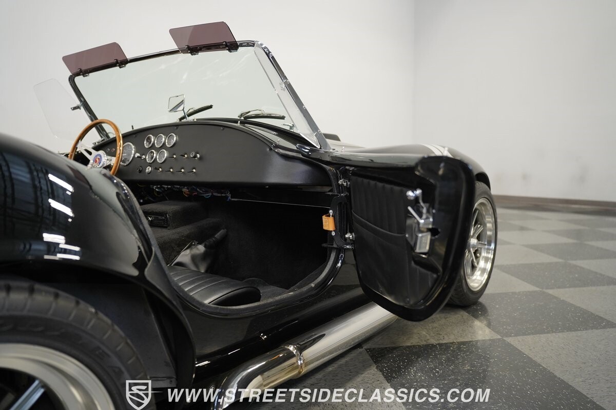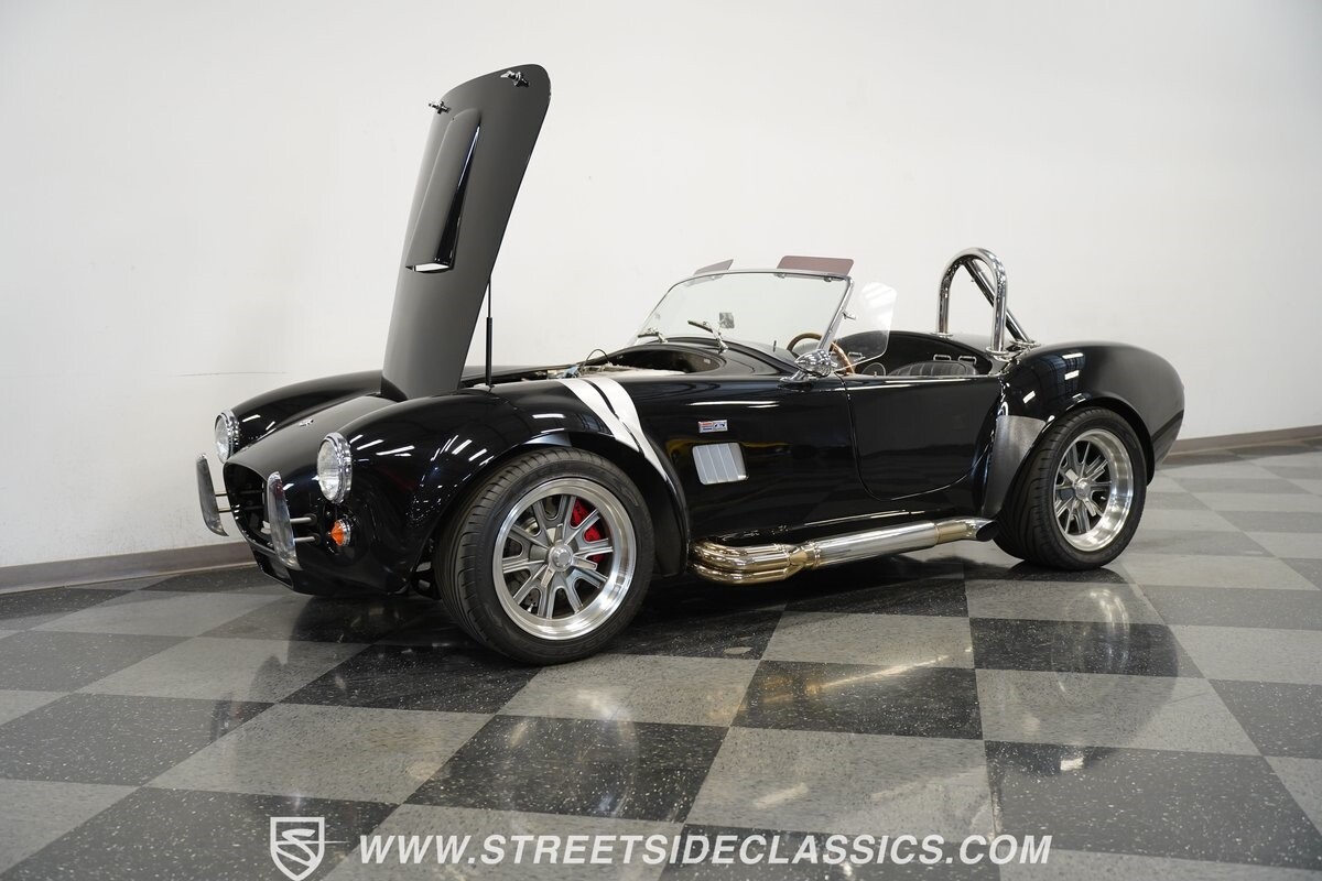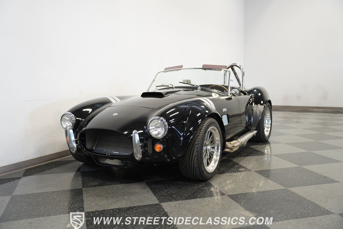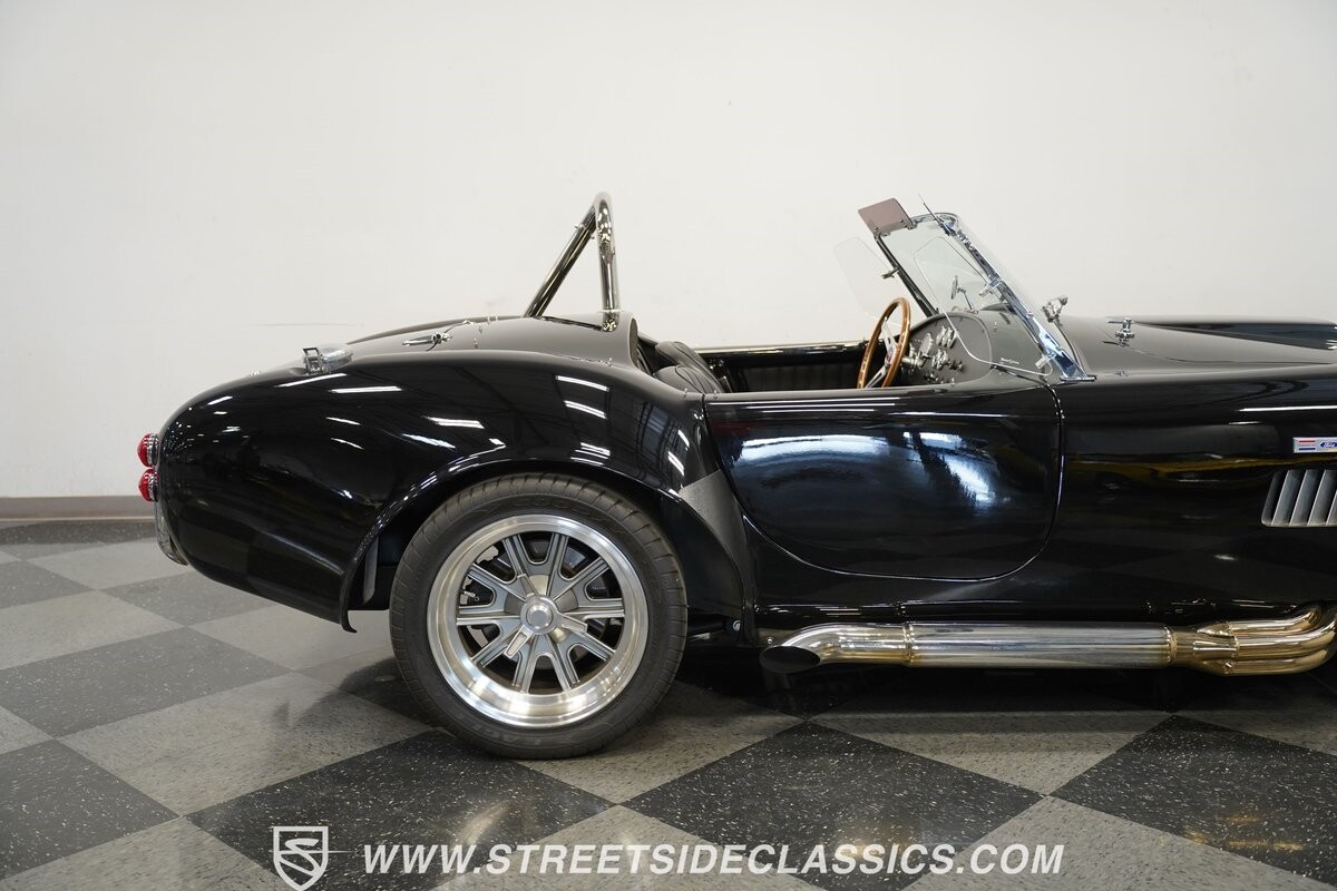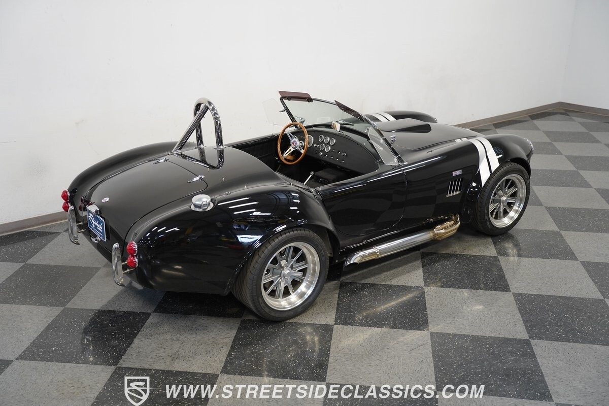Under the hood, this Cobra uses Ford's other famous engine. The 5.0-liter Windsor small-block V-8 is a two-bolt main from the 1991-1996 era of Mustang engines, featuring electronic fuel injection, so there are no fussy carburetors to deal with. That power is then funneled through a (more) modern Borg and Warner T5 five-speed manual transmission. No mufflers necessary when talking about a Cobra, as the long tube headers link right up to the big side pipes to announce your arrival long before you get there.