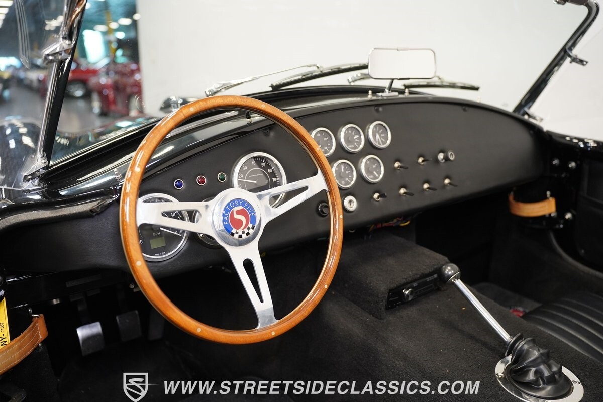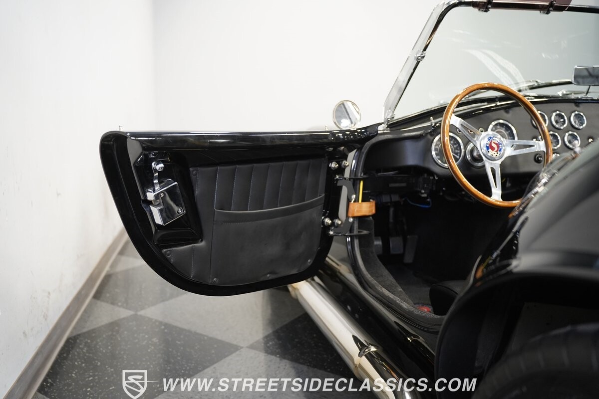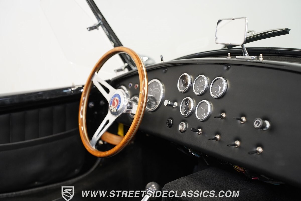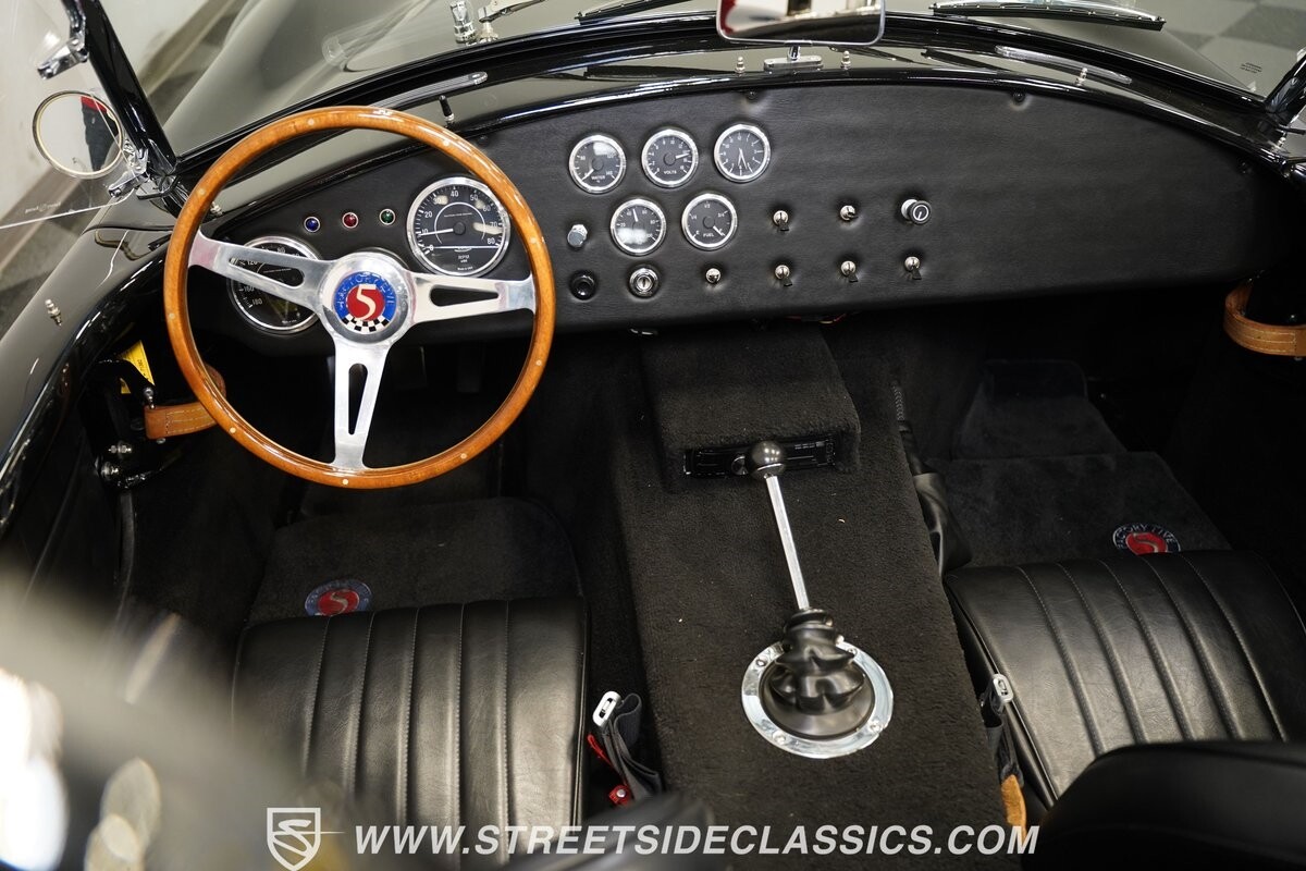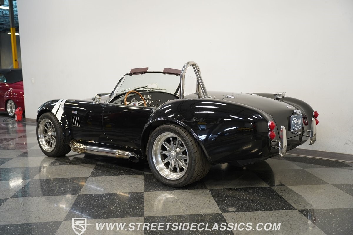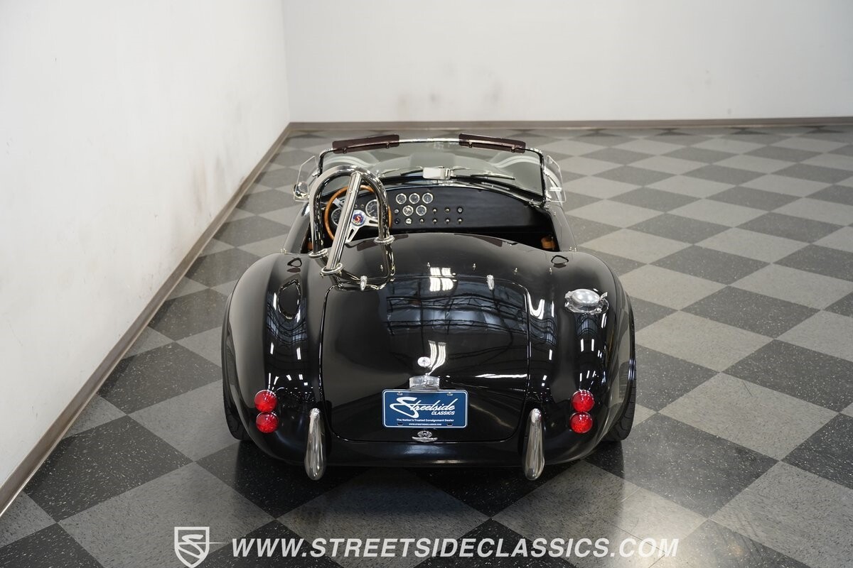 Under the hood, this Cobra uses Ford's other famous engine. The 5.0-liter Windsor small-block V-8 is a two-bolt main from the 1991-1996 era of Mustang engines, featuring electronic fuel injection, so there are no fussy carburetors to deal with. That power is then funneled through a (more) modern Borg and Warner T5 five-speed manual transmission. No mufflers necessary when talking about a Cobra, as the long tube headers link right up to the big side pipes to announce your arrival long before you get there.