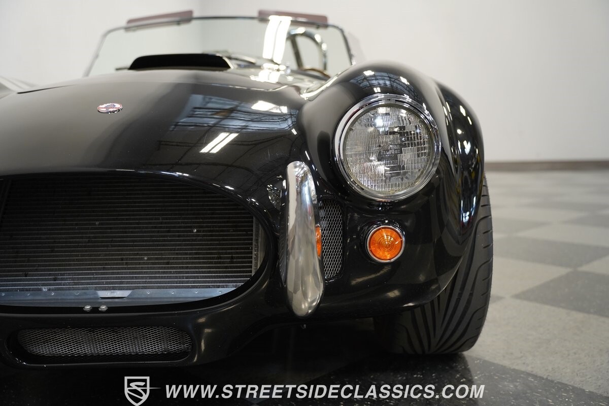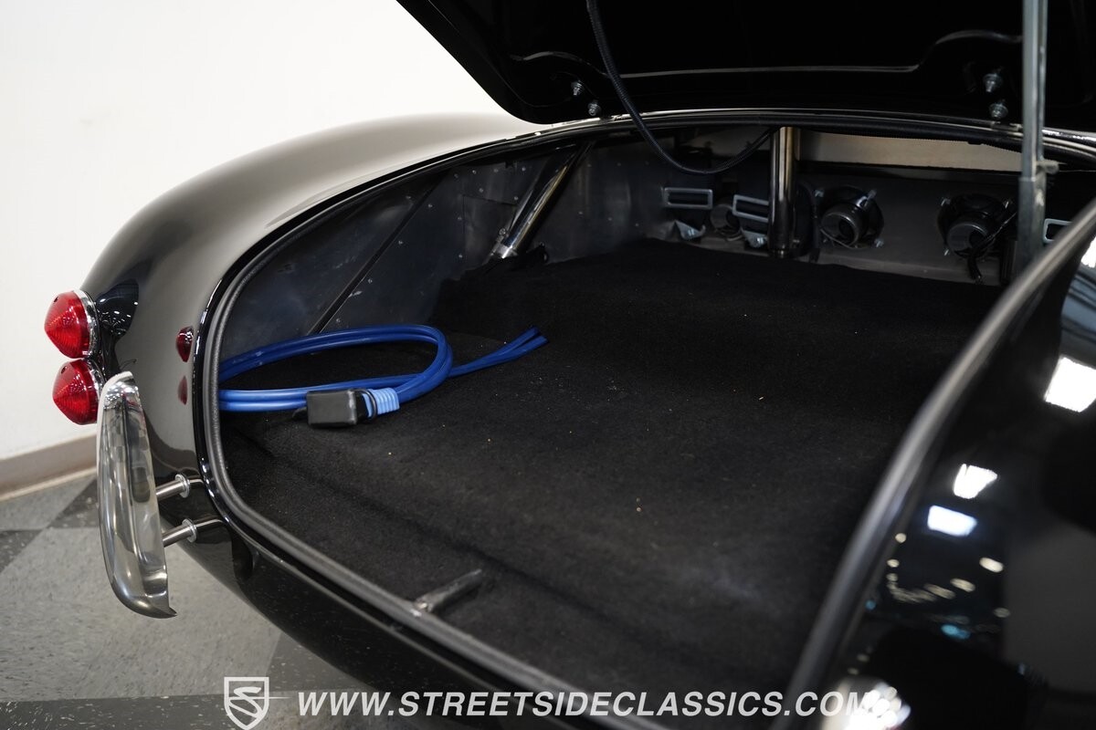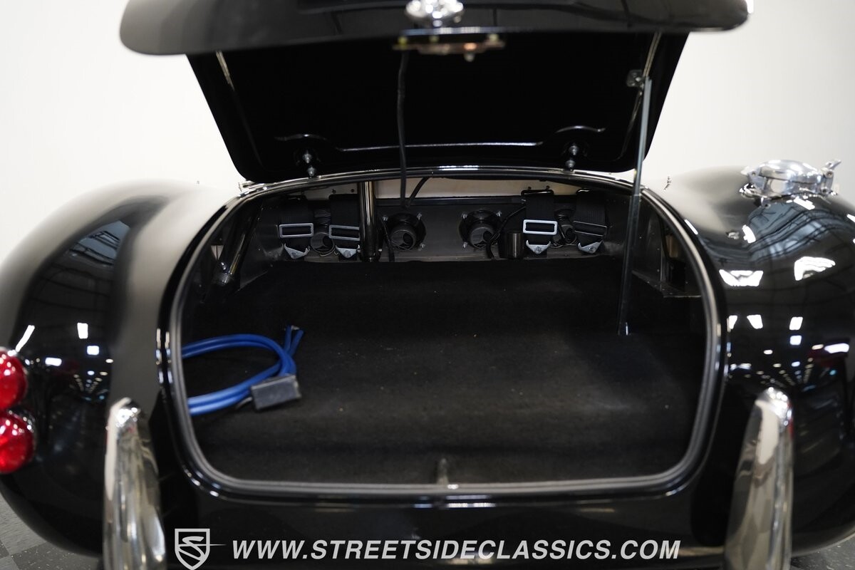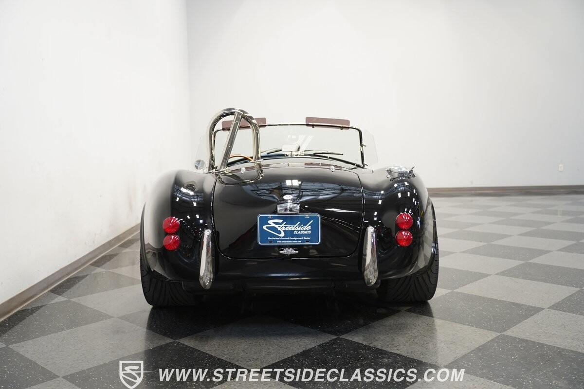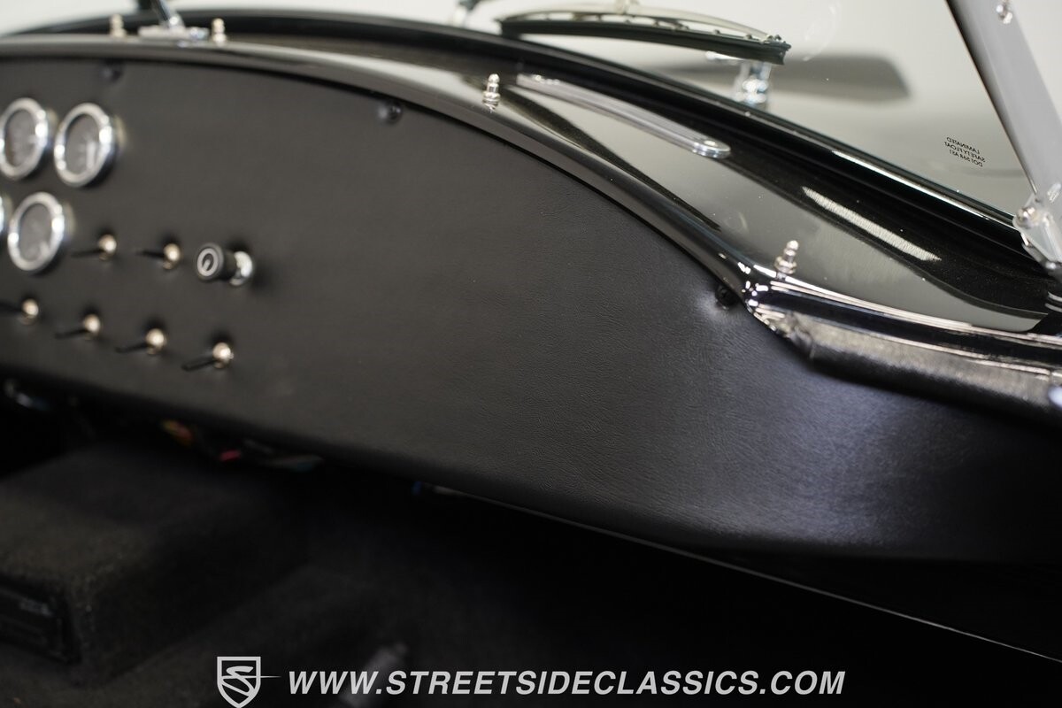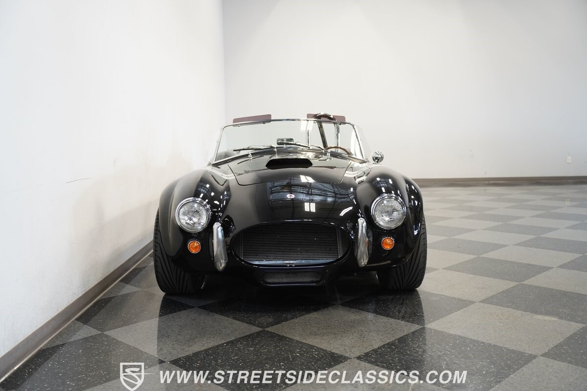 Under the hood, this Cobra uses Ford's other famous engine. The 5.0-liter Windsor small-block V-8 is a two-bolt main from the 1991-1996 era of Mustang engines, featuring electronic fuel injection, so there are no fussy carburetors to deal with. That power is then funneled through a (more) modern Borg and Warner T5 five-speed manual transmission. No mufflers necessary when talking about a Cobra, as the long tube headers link right up to the big side pipes to announce your arrival long before you get there.