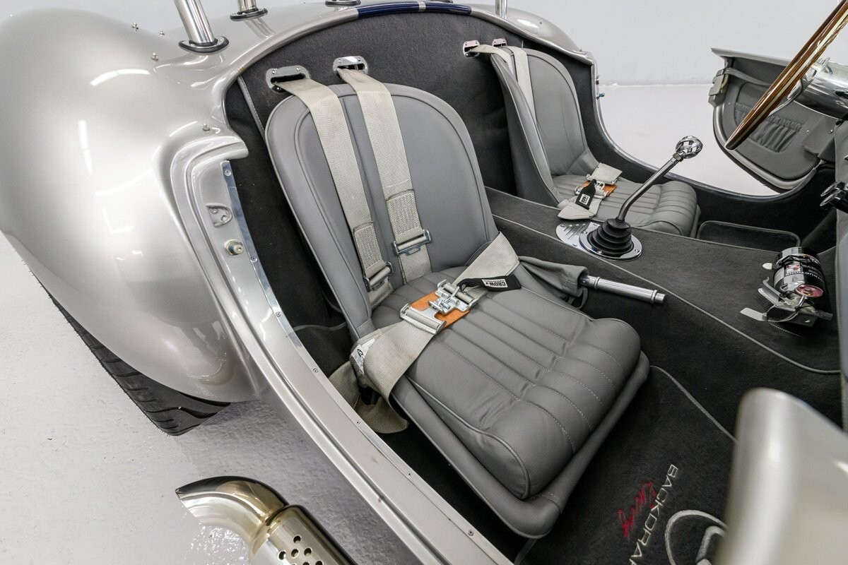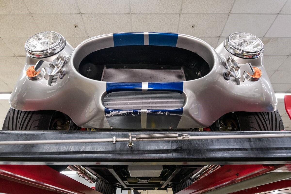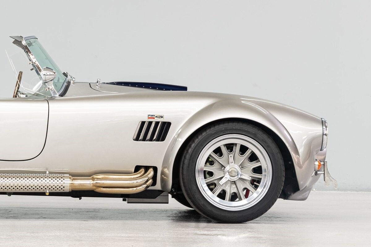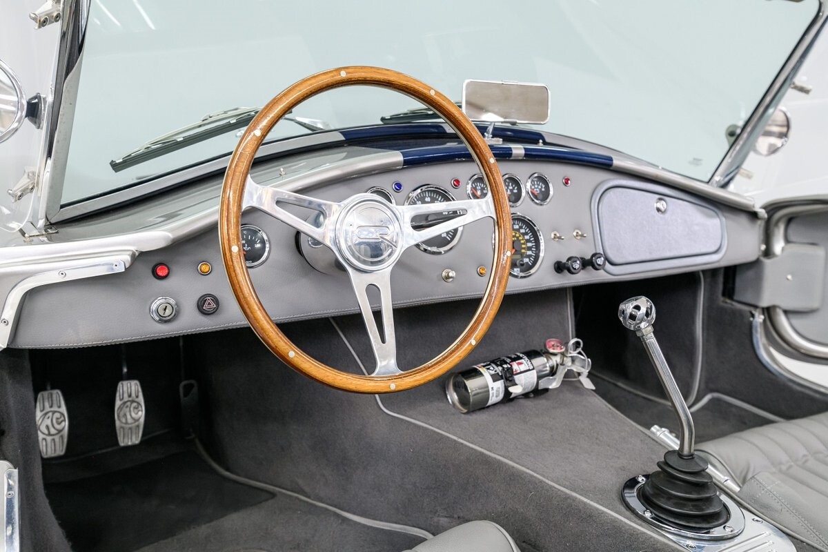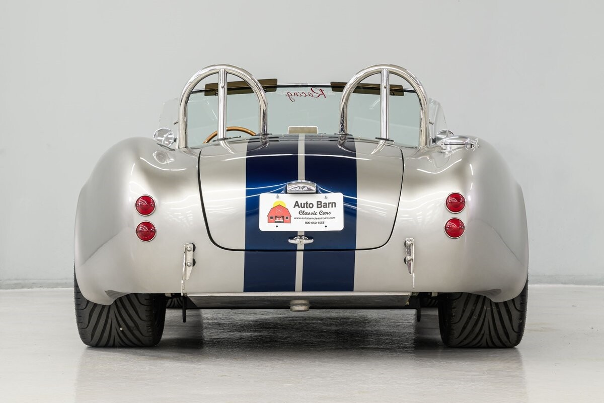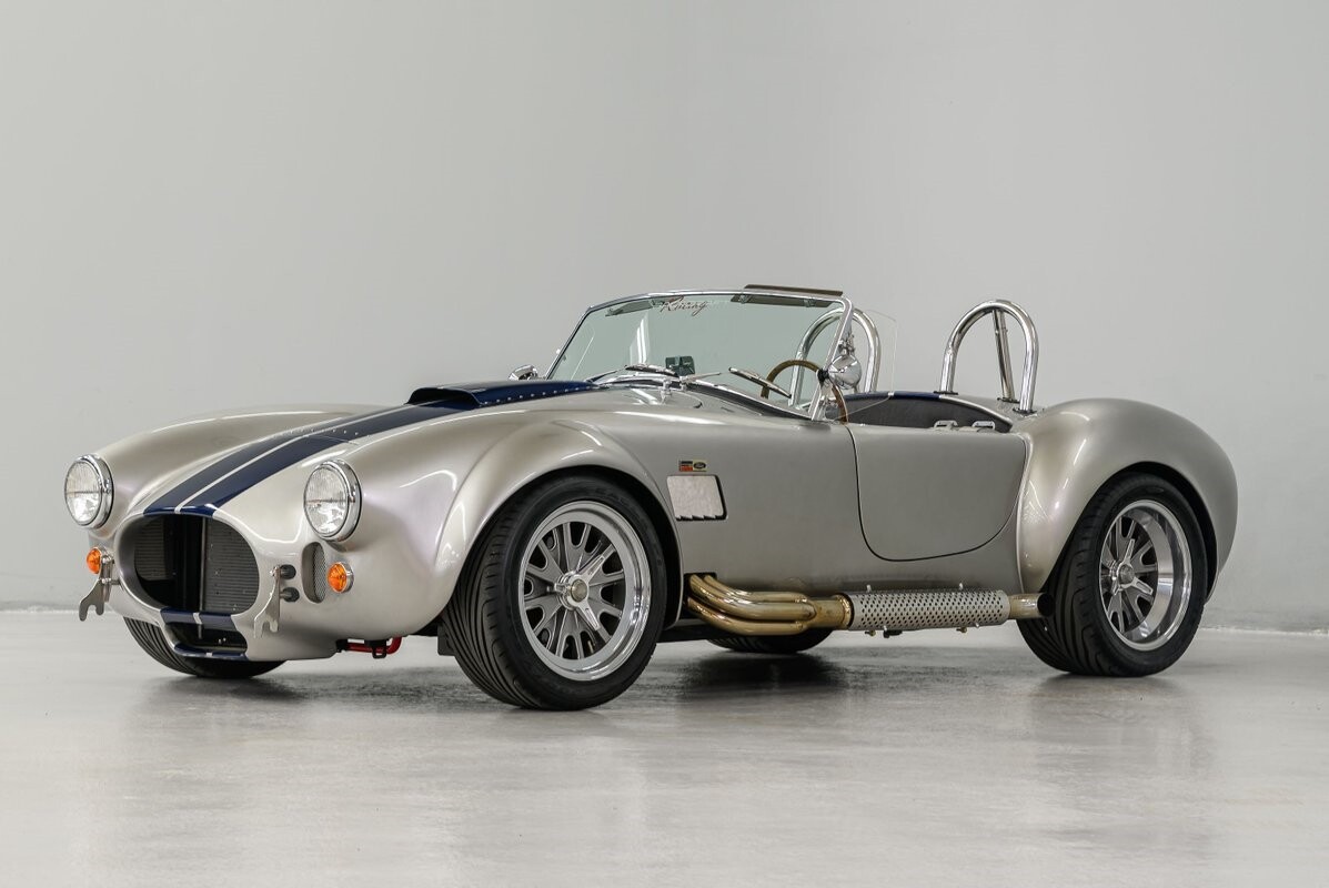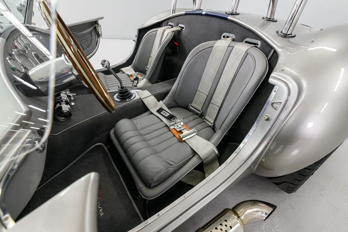 Backdraft Racing is a premier manufacturer of classic Cobra replicars. Based in the Boynton Beach, FL, BDR produces various Cobra kits and are very highly respected in the business. This beautiful 1-owner 1965 Shelby Backdraft Cobra is a prime example of what a replicar should be. The BDR Roadster is a serious Cobra that is built to race. That said, this particular Cobra has never been to a track. The BDR Cobra Roadster was originally built as a show car for the BDR sales team and was purchased as a rolling chassis by our owner in 2007. This gentleman, a valued leader of one of NASCAR's best race teams, completed the build - with a little help from his NASCAR friends, and his son. The SC-style body was professionally finished in Titanium Silver w/Indigo strips and it is in outstanding condition. Accents include stainless side-pipes, clear window wings and Shelby-style alloy wheels that are true 'knock-offs' wrapped in Goodyear Eagle performance radials. The high grade vinyl interior looks as good as the day it was installed. A full complement of VDO gauges is perfectly positioned in the functional dash, there is a handsome wooden wheel and each bucket seat is equipped with lap/shoulder harness along with dual roll bars. One of the best features of this Cobra Roadster is a 2-1/2" lengthened foot box to accept tall drivers.