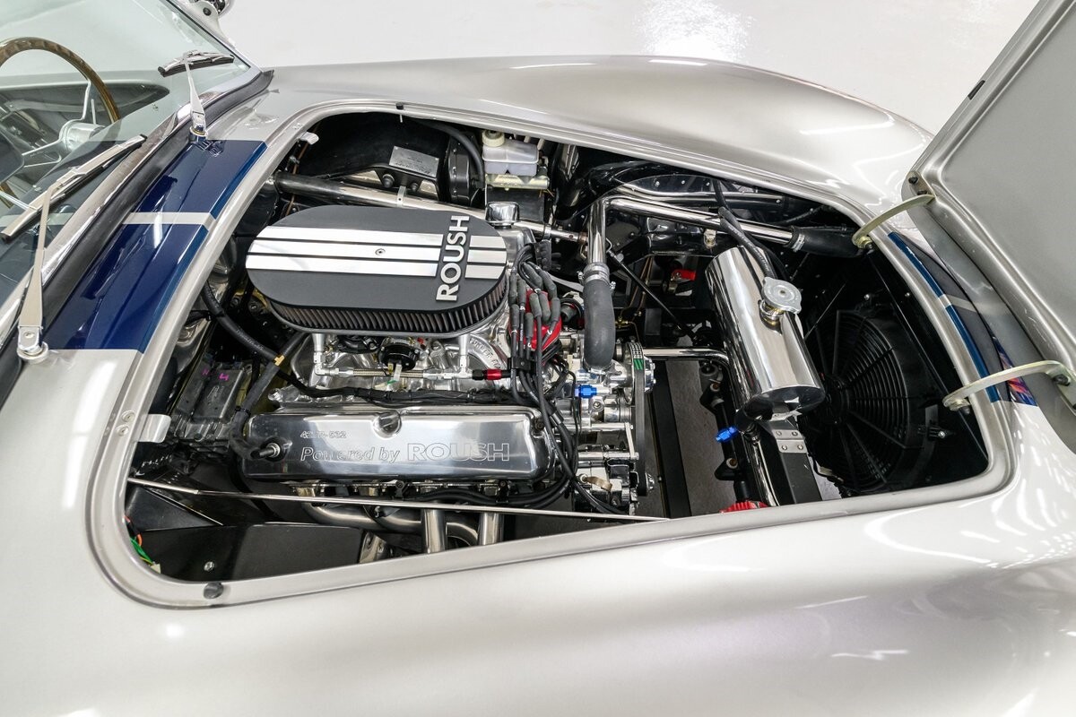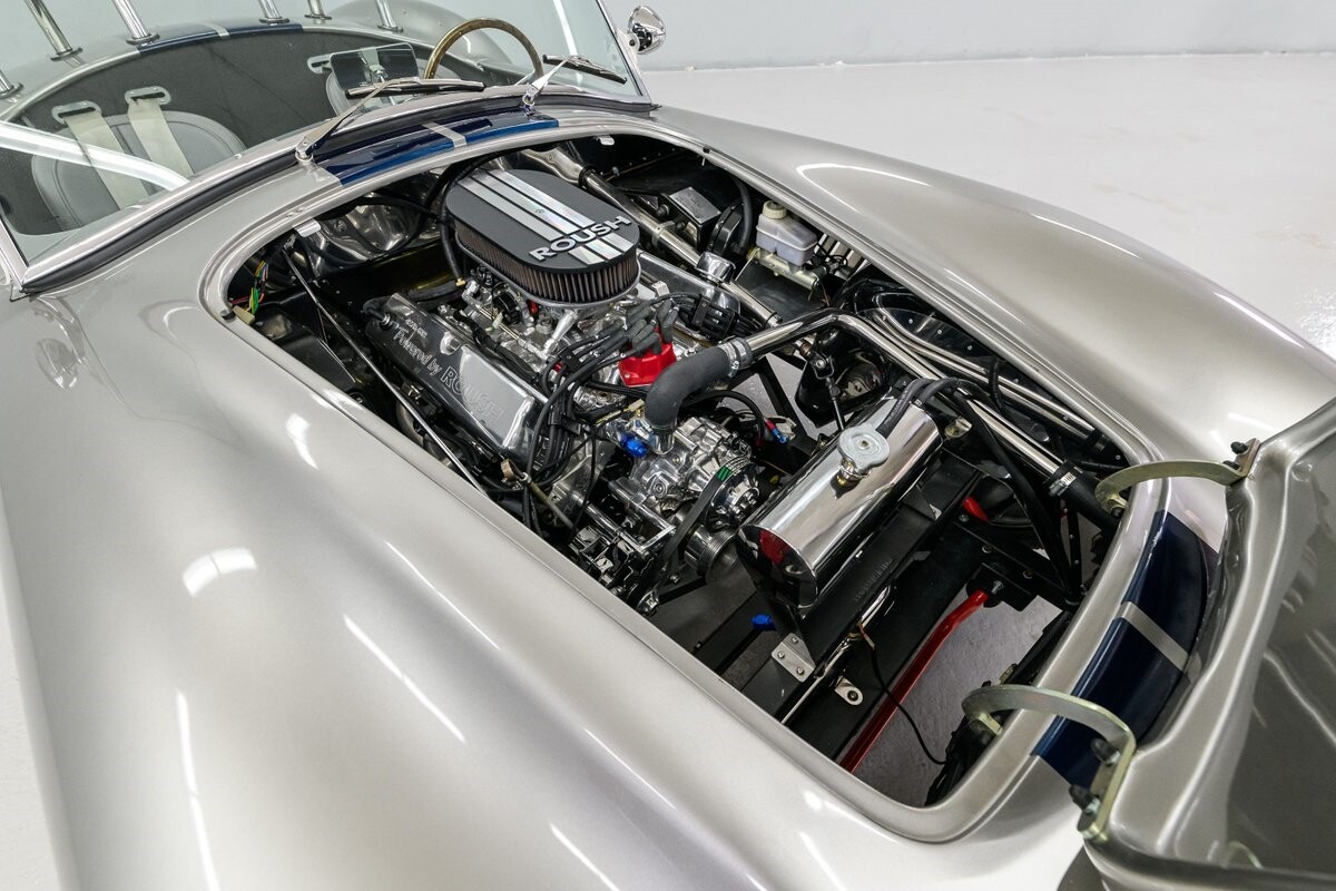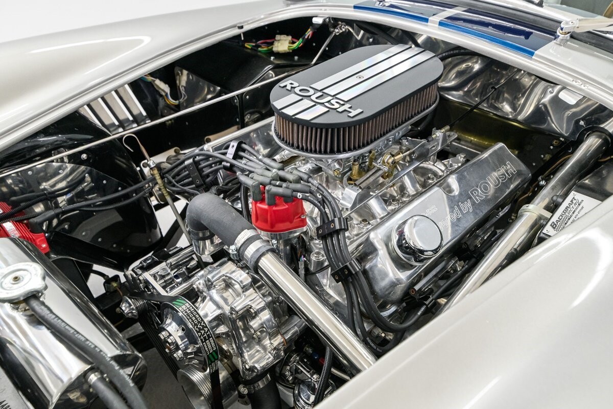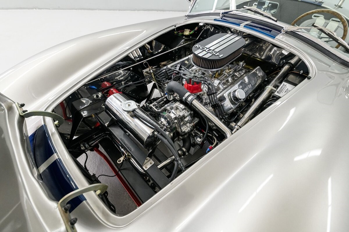 Horsepower is furnished by a built 427R-532 polished Windsor from the shop of the owner's friend, 'The Cat in the Hat' Jack Roush. The engine was dyno-ed by Roush Industries at 469bhp/481lb/ft. The intake mounts a Holley 670cfm double-pumper and the rumble from the side-pipe leaves no mistake - this Roush motor is all business. It is backed by a Tremec TKO-600 5-speed manual gearbox w/HD clutch and pressure plate. The chassis is equipped with fully independent suspension that utilizes BMW 3-Series components with adjustable coil-over shocks in the front and adjustable coil springs in the rear. Slow-down is provided by power-assisted 4-wheel disc brakes. The owner/builder has taken exceptional care of this handsome Cobra and is now ready to pass it on to the next caretaker. If you want a top-shelf Shelby Cobra replicar to drive and enjoy, or race, this is your machine. ALL VEHICLES SOLD "AS IS".