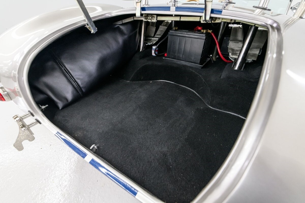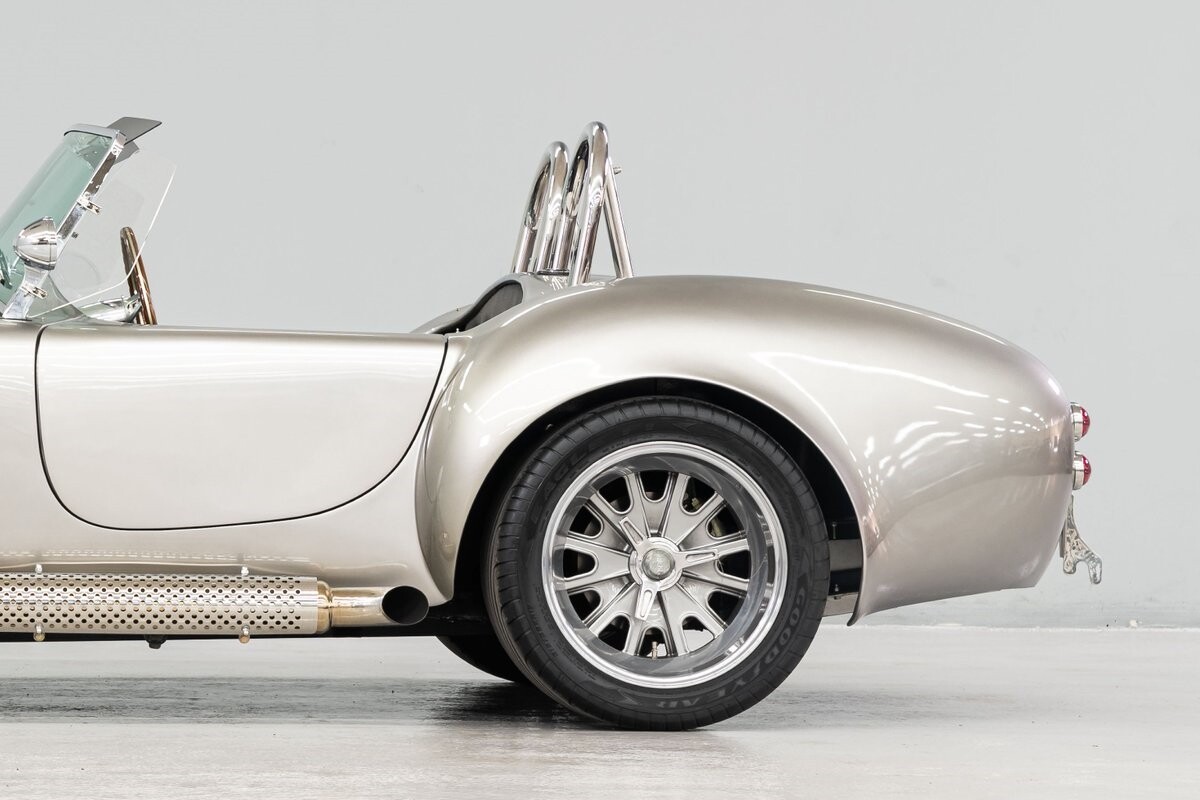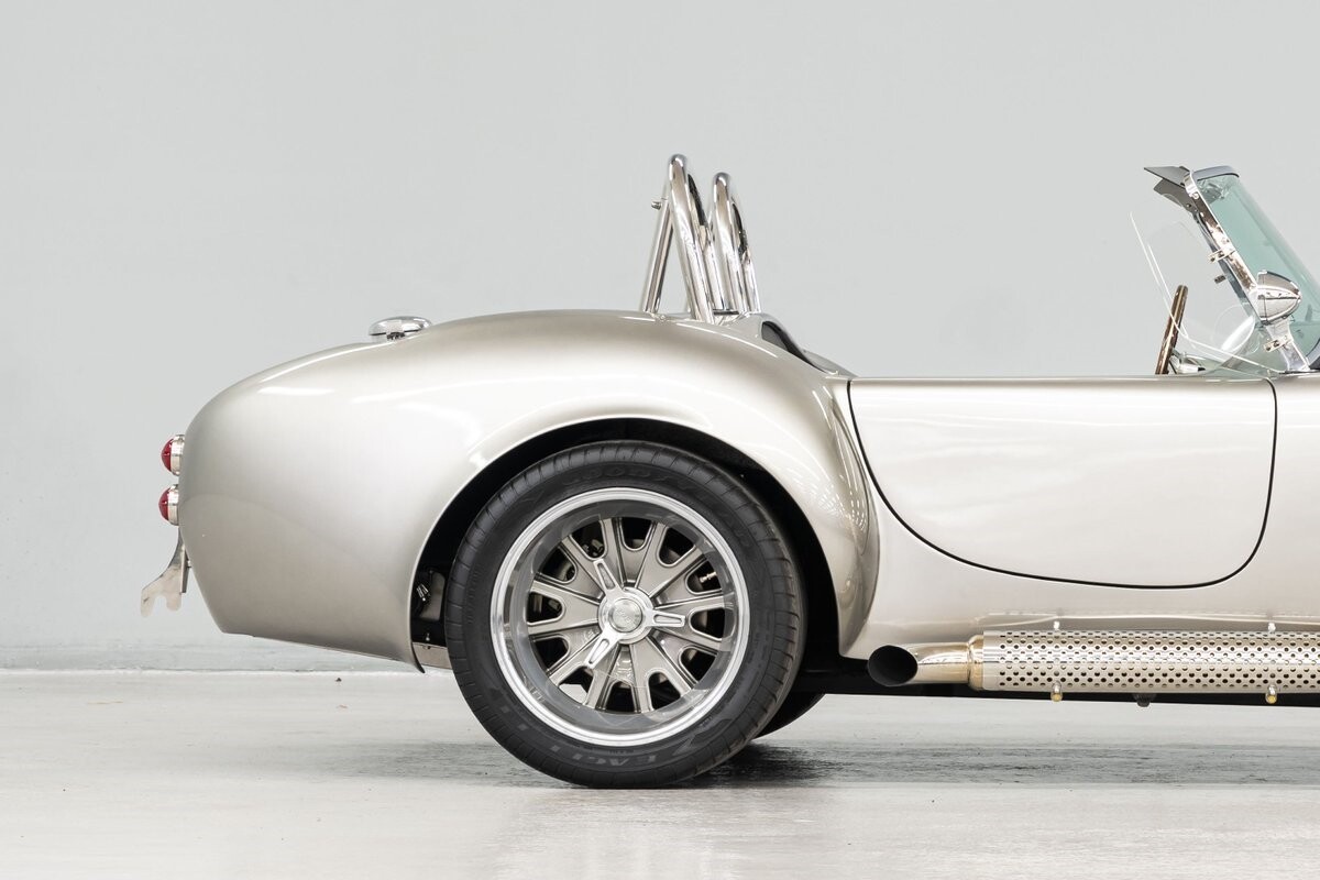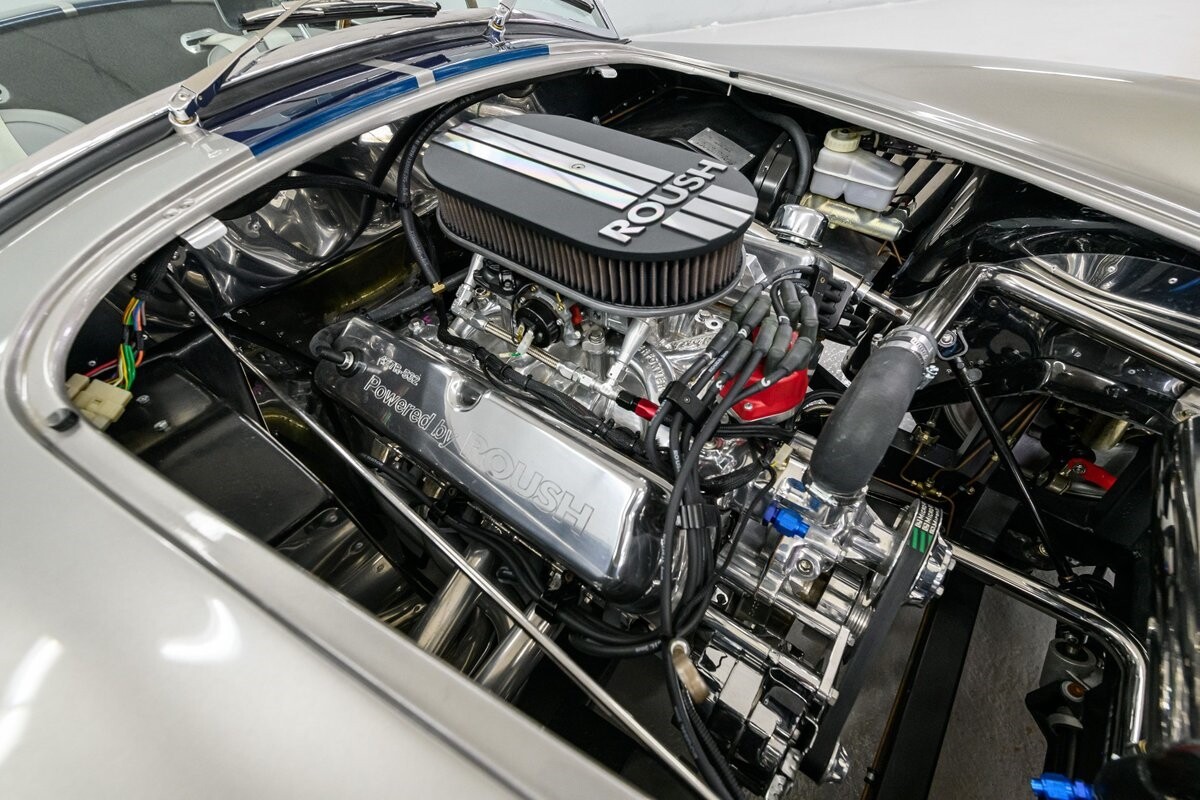 Horsepower is furnished by a built 427R-532 polished Windsor from the shop of the owner's friend, 'The Cat in the Hat' Jack Roush. The engine was dyno-ed by Roush Industries at 469bhp/481lb/ft. The intake mounts a Holley 670cfm double-pumper and the rumble from the side-pipe leaves no mistake - this Roush motor is all business. It is backed by a Tremec TKO-600 5-speed manual gearbox w/HD clutch and pressure plate. The chassis is equipped with fully independent suspension that utilizes BMW 3-Series components with adjustable coil-over shocks in the front and adjustable coil springs in the rear. Slow-down is provided by power-assisted 4-wheel disc brakes. The owner/builder has taken exceptional care of this handsome Cobra and is now ready to pass it on to the next caretaker. If you want a top-shelf Shelby Cobra replicar to drive and enjoy, or race, this is your machine. ALL VEHICLES SOLD "AS IS".
