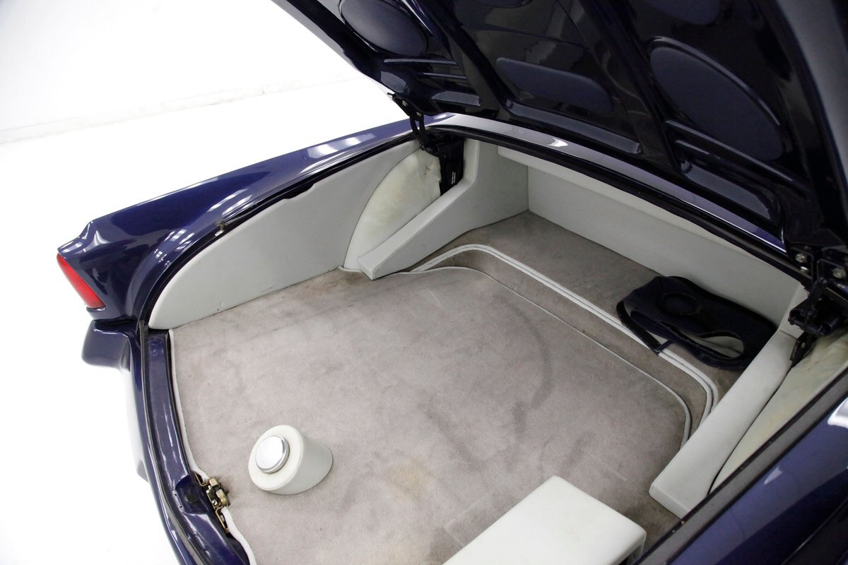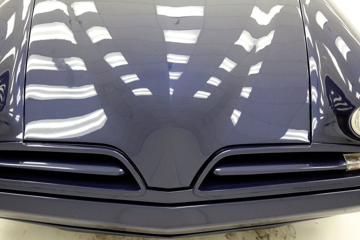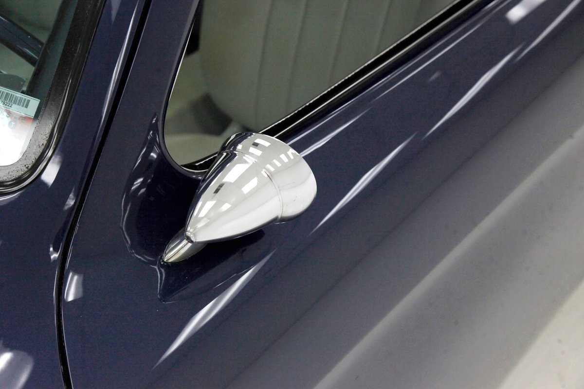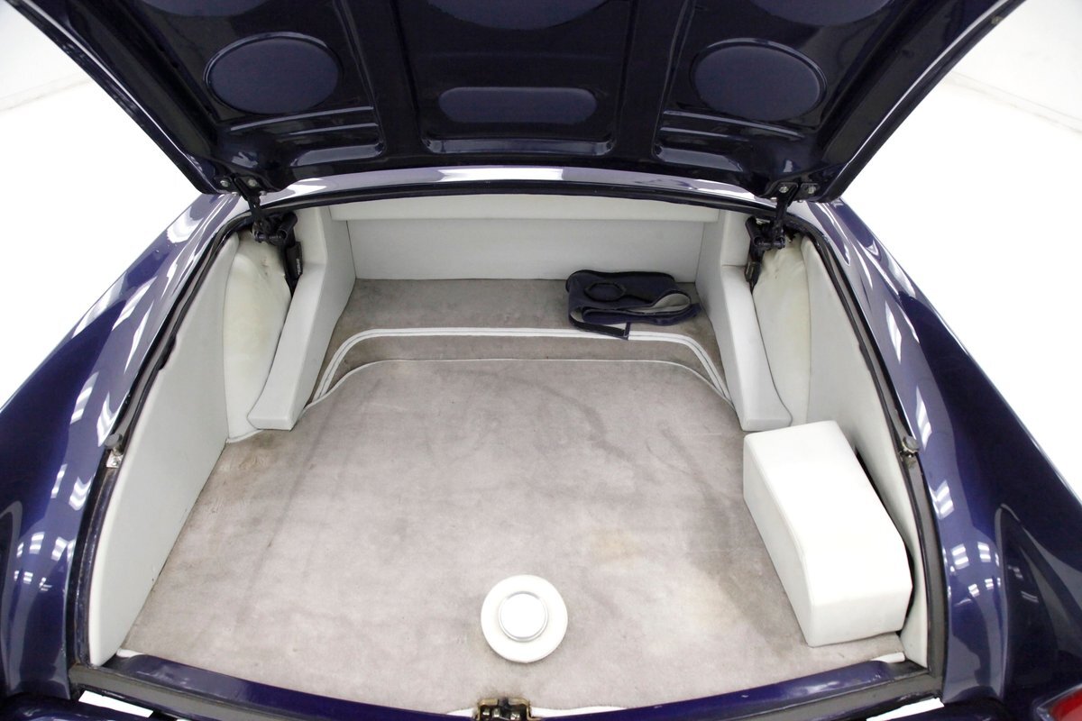 This midnight blue metallic eye catcher started out as a humble Studebaker Champion and now has been transformed into an award winning, great running, reliable and comfy inside kewl skate. A 3-inch chopping of the top, all steel which is rust free, some shaving of the trimmings and handles for simplification, flush mount front and rear glass, and lightly smoked windows all work together to give us a modern looking 1953 street Stude. Wonderful flowing lines courtesy Raymond Loewy show from the side that the hood and trunk deck are virtually the same length with the now lowered roof with sloped back glass. The bumpers have been painted to match the exterior and all trimmings have been shaved for a surgically clean look. The back of the car has also been simplified with frenched tail lights to match the frenched headlights. Below, in front of the rear wheels are the oval tipped side exit exhaust and highly polished Budnik Formosa 15-inch wheels are on all 4 corners and are wrapped with staggered width black wall rubber from the 29th week of 2022. The finish is in the deep end of the pool and few small chips and scratches are the only flaw to be noted in the body.