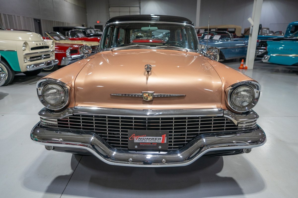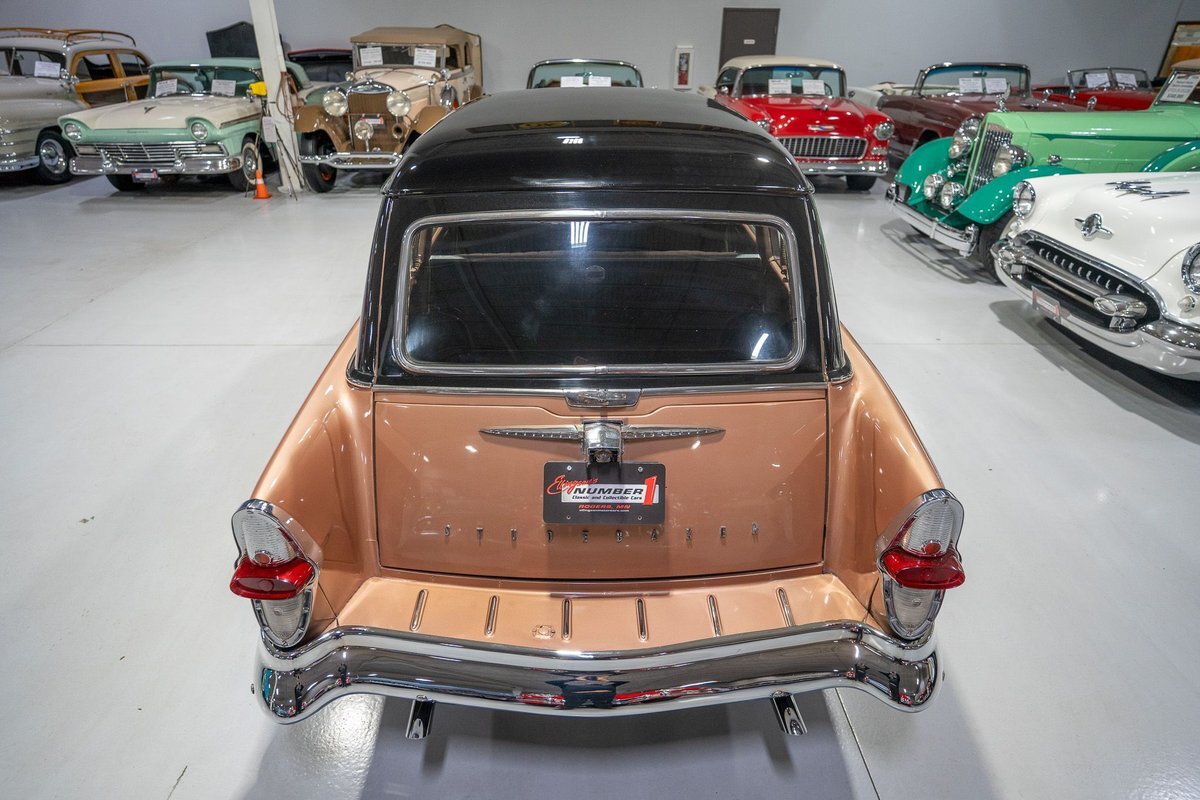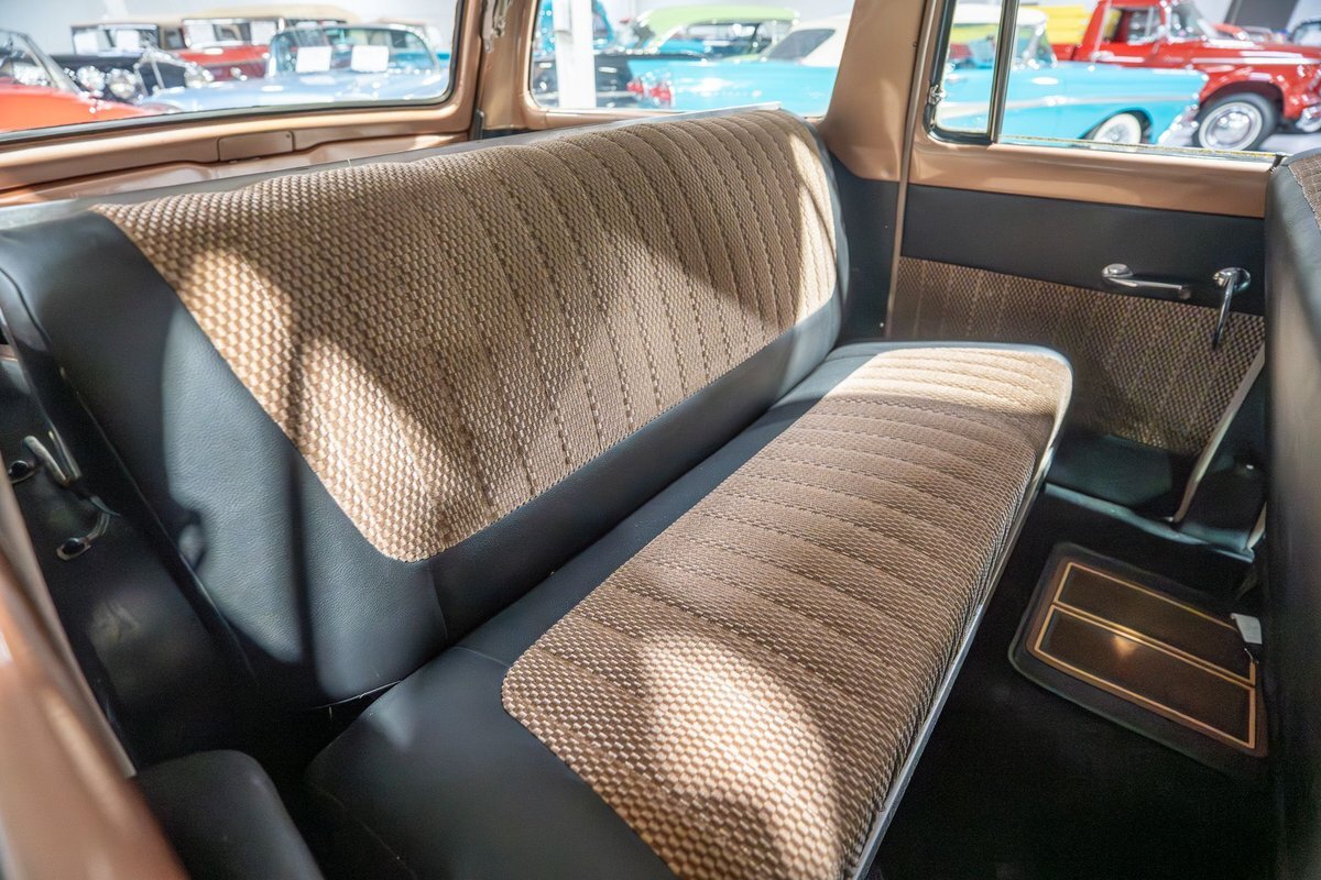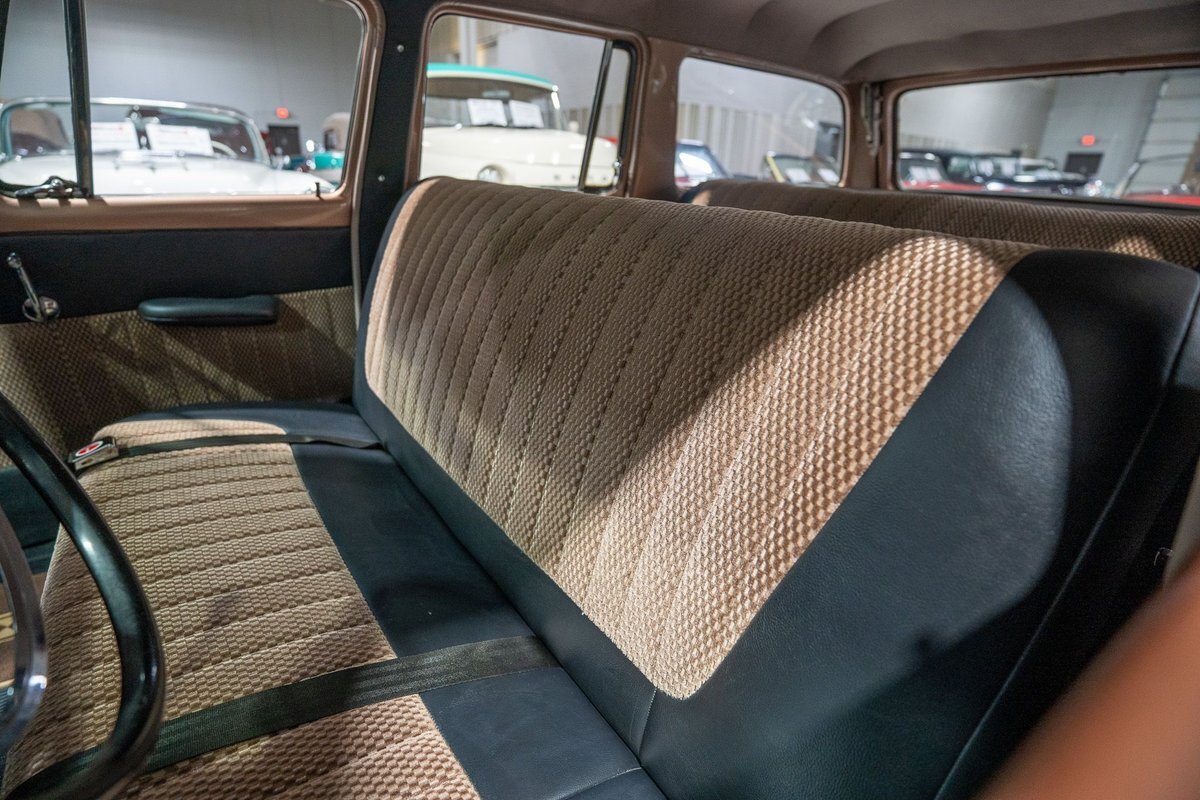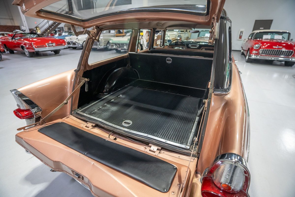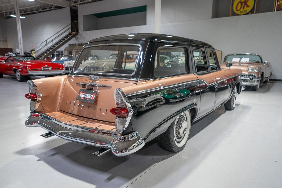 This 1957 Studebaker Commander Provincial Station Wagon is a beautifully restored, 50s wagon with quintessential 50s flair! 1957 was a significant year for the Studebaker-Packard Corporation in that it marked the first time that the company, which was the result of a merger of the namesake American independent automakers, produced vehicles using the same body shell. In other words, besides just badging and minor trim differences, a Studebaker and a Packard was essentially the same car. On the Studebaker side, little changed on Studebaker's passenger cars from 1956 into 1957. The most notable change on the Studebakers was a redesigned front grille that now wrapped around the front end into the sides. The other major stylistic update was that the '57 Studebakers also sported larger taillights from the previous year design. Perhaps most relevant here was that 1957 also marked the the first time since World War II that Studebaker offered a 4-door wagon design with the addition of the Provincial Station Wagon to Studebaker's passenger car lineup. Nonetheless, 1957 was just a so-so sales year for the Studebaker-Packard Corporation with total production sitting just over 63,000 units and placing Studebaker-Packard in 13th place among American automaker production totals. That being said, only 3,995 of the Commander Provincial Station Wagons were produced which makes this particular example quite a rare Studebaker from the 1950s. Under the hood on this '57 Studebaker Provincial Station Wagon is a 259 Cubic Inch V8 engine fed by a single 2 barrel carburetor that together were said to have created 180 horsepower when new. The 259 V8 is backed by a 3 speed manual transmission with overdrive that makes this 50s Station Wagon a truly enjoyable car to drive. Exhaust leaves the Studebaker 259 via a dual exhaust setup that generates a nice throaty sound out of the rear tailpipes. This 1957 Studebaker Station Wagon cruises down the road smoothly on a set of wide whitewall radial tires, each paired with a wire basket wheelcover, that gives this classic wagon a great look and even better ride! Squeezing into a tight parking space at the local car show or drive-in is a total breeze since this 1957 Studebaker Commander Wagon is equipped with power steering. Further helping you squeeze into that tight spot is a pair of fender-mounted outside chrome mirrors that help you see what's on either side. The exterior of this Studebaker has been refinished in a two-tone paint scheme consisting of Taupe Metallic over Midnight Black that completes the beautiful exterior appearance of this Station Wagon. The interior of this 1957 Studebaker Commander Provincial Wagon is absolutely gorgeous! The front and rear bench seats have been reupholstered in beautiful black vinyl with taupe cloth inserts that complement the exterior look of this wagon. The matching upholstered door panels, black carpeting, painted dash, rubber lined rear compartment, and steering wheel are all in wonderful condition as well and appear to be in their stock configuration. The instrument cluster is equipped with a 115 MPH rotary-style Speedometer, along with indicators for amps, engine temperature, oil pressure and fuel. The dash is finished off with a push-button AM radio, clock, ashtray, and locking glovebox. Whether you're buying your first classic station wagon or you're adding to an existing collection of classic wagons, this 1957 Studebaker Commander Provincial Station Wagon would make an excellent addition. Give Ellingson's a call today at763-428-7337!