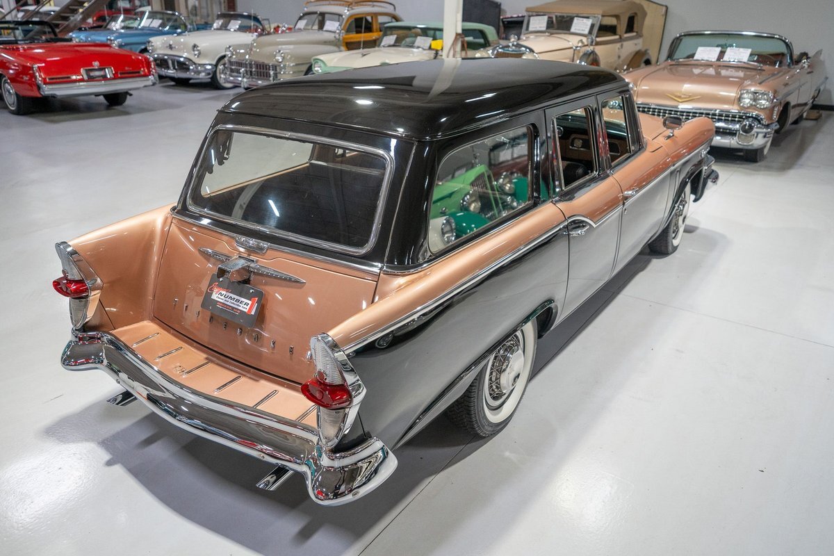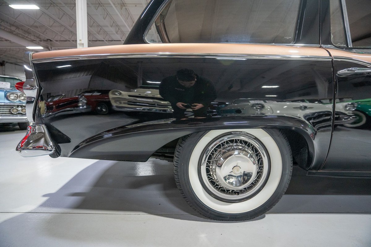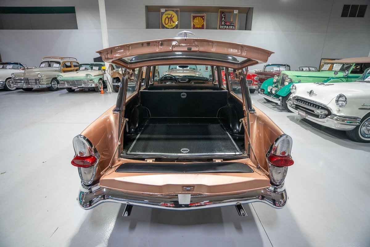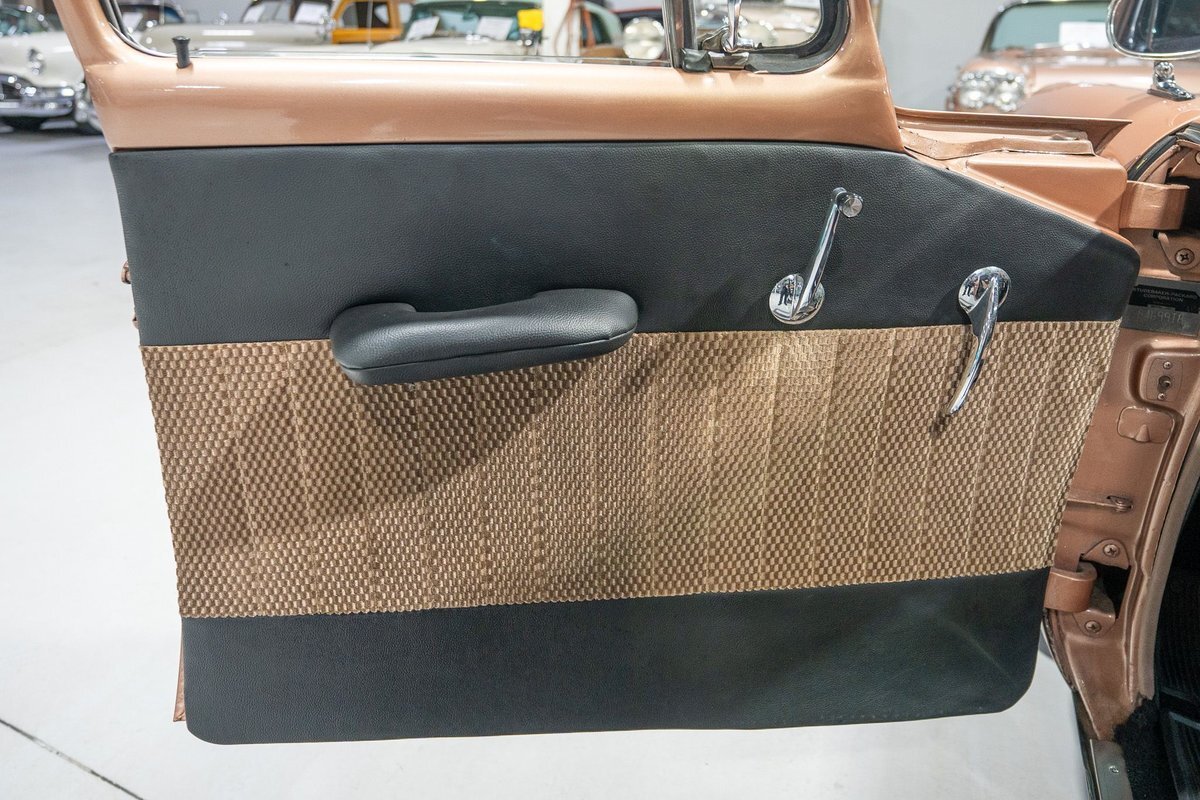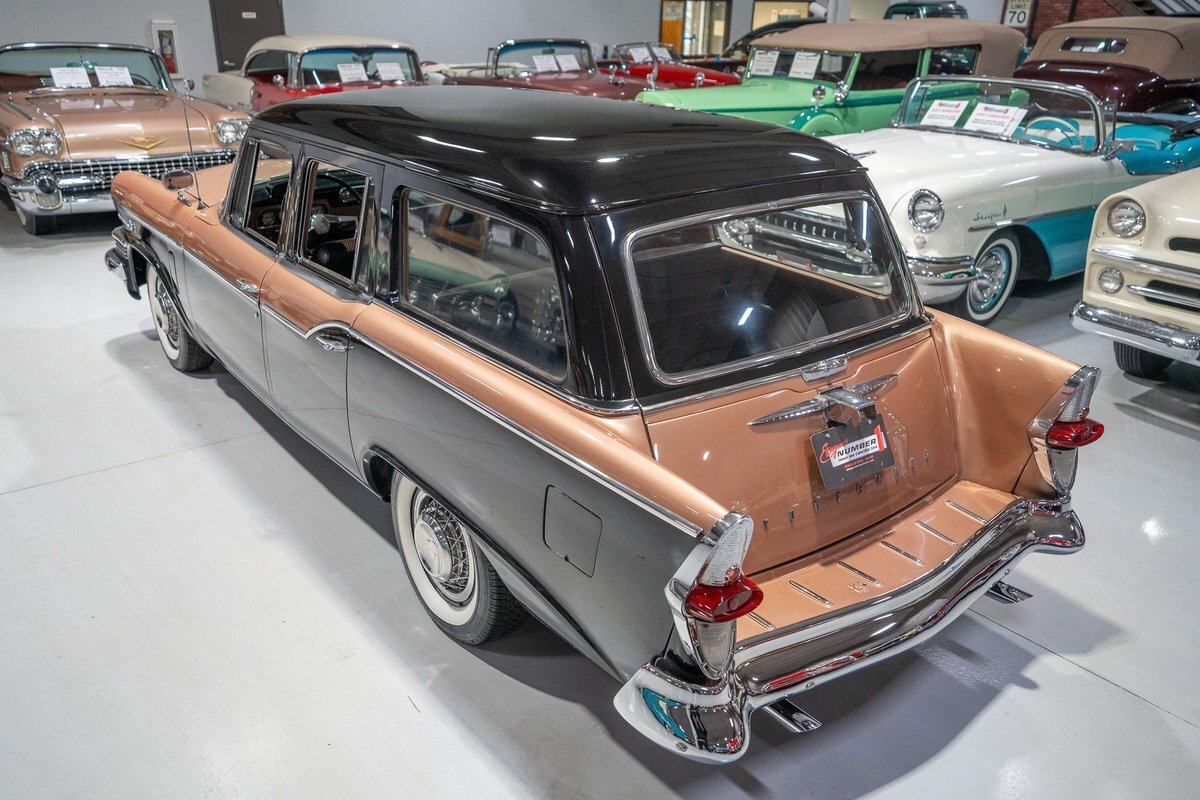 This 1957 Studebaker Commander Provincial Station Wagon is a beautifully restored, 50s wagon with quintessential 50s flair! 1957 was a significant year for the Studebaker-Packard Corporation in that it marked the first time that the company, which was the result of a merger of the namesake American independent automakers, produced vehicles using the same body shell. In other words, besides just badging and minor trim differences, a Studebaker and a Packard was essentially the same car. On the Studebaker side, little changed on Studebaker's passenger cars from 1956 into 1957. The most notable change on the Studebakers was a redesigned front grille that now wrapped around the front end into the sides. The other major stylistic update was that the '57 Studebakers also sported larger taillights from the previous year design. Perhaps most relevant here was that 1957 also marked the the first time since World War II that Studebaker offered a 4-door wagon design with the addition of the Provincial Station Wagon to Studebaker's passenger car lineup. Nonetheless, 1957 was just a so-so sales year for the Studebaker-Packard Corporation with total production sitting just over 63,000 units and placing Studebaker-Packard in 13th place among American automaker production totals. That being said, only 3,995 of the Commander Provincial Station Wagons were produced which makes this particular example quite a rare Studebaker from the 1950s. Under the hood on this '57 Studebaker Provincial Station Wagon is a 259 Cubic Inch V8 engine fed by a single 2 barrel carburetor that together were said to have created 180 horsepower when new. The 259 V8 is backed by a 3 speed manual transmission with overdrive that makes this 50s Station Wagon a truly enjoyable car to drive. Exhaust leaves the Studebaker 259 via a dual exhaust setup that generates a nice throaty sound out of the rear tailpipes. This 1957 Studebaker Station Wagon cruises down the road smoothly on a set of wide whitewall radial tires, each paired with a wire basket wheelcover, that gives this classic wagon a great look and even better ride! Squeezing into a tight parking space at the local car show or drive-in is a total breeze since this 1957 Studebaker Commander Wagon is equipped with power steering. Further helping you squeeze into that tight spot is a pair of fender-mounted outside chrome mirrors that help you see what's on either side. The exterior of this Studebaker has been refinished in a two-tone paint scheme consisting of Taupe Metallic over Midnight Black that completes the beautiful exterior appearance of this Station Wagon. The interior of this 1957 Studebaker Commander Provincial Wagon is absolutely gorgeous! The front and rear bench seats have been reupholstered in beautiful black vinyl with taupe cloth inserts that complement the exterior look of this wagon. The matching upholstered door panels, black carpeting, painted dash, rubber lined rear compartment, and steering wheel are all in wonderful condition as well and appear to be in their stock configuration. The instrument cluster is equipped with a 115 MPH rotary-style Speedometer, along with indicators for amps, engine temperature, oil pressure and fuel. The dash is finished off with a push-button AM radio, clock, ashtray, and locking glovebox. Whether you're buying your first classic station wagon or you're adding to an existing collection of classic wagons, this 1957 Studebaker Commander Provincial Station Wagon would make an excellent addition. Give Ellingson's a call today at763-428-7337!