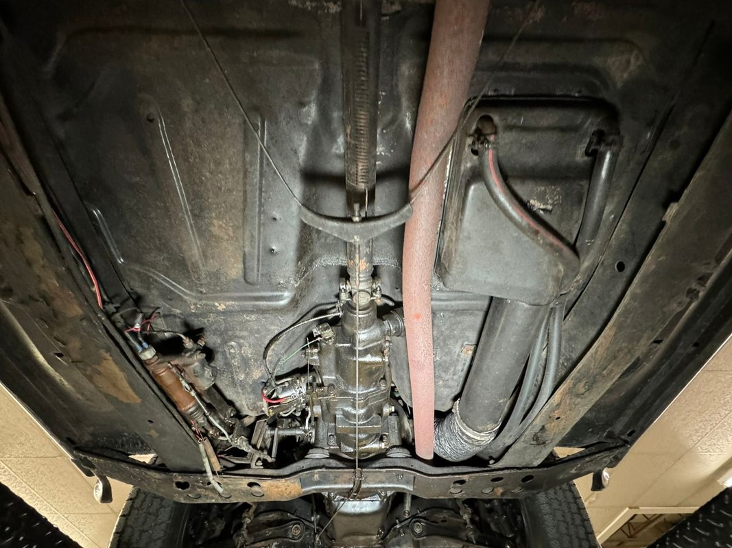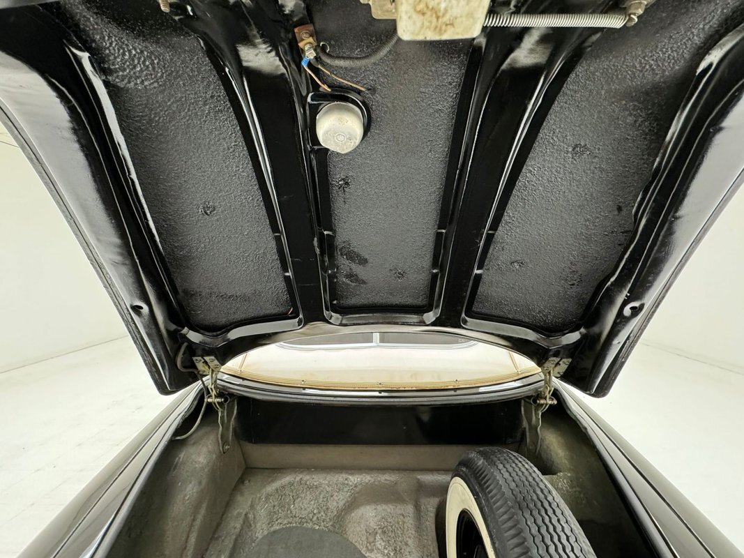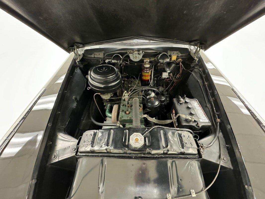 The car is equipped with a 226ci L-head inline 6 cylinder engine rated at 94 horsepower and mated to a Borg Warner T86E 3-speed manual transmission with overdrive which our consignor states works! Power is transferred to the rear wheels where 4.55 gears make the spin work. Drum brakes are found at each corner. The engine bay appears very original, and the block is painted the original olive green. The glass jar of white lubricant for the working automatic lubricator is a fascinating throwback and rare to find intact.