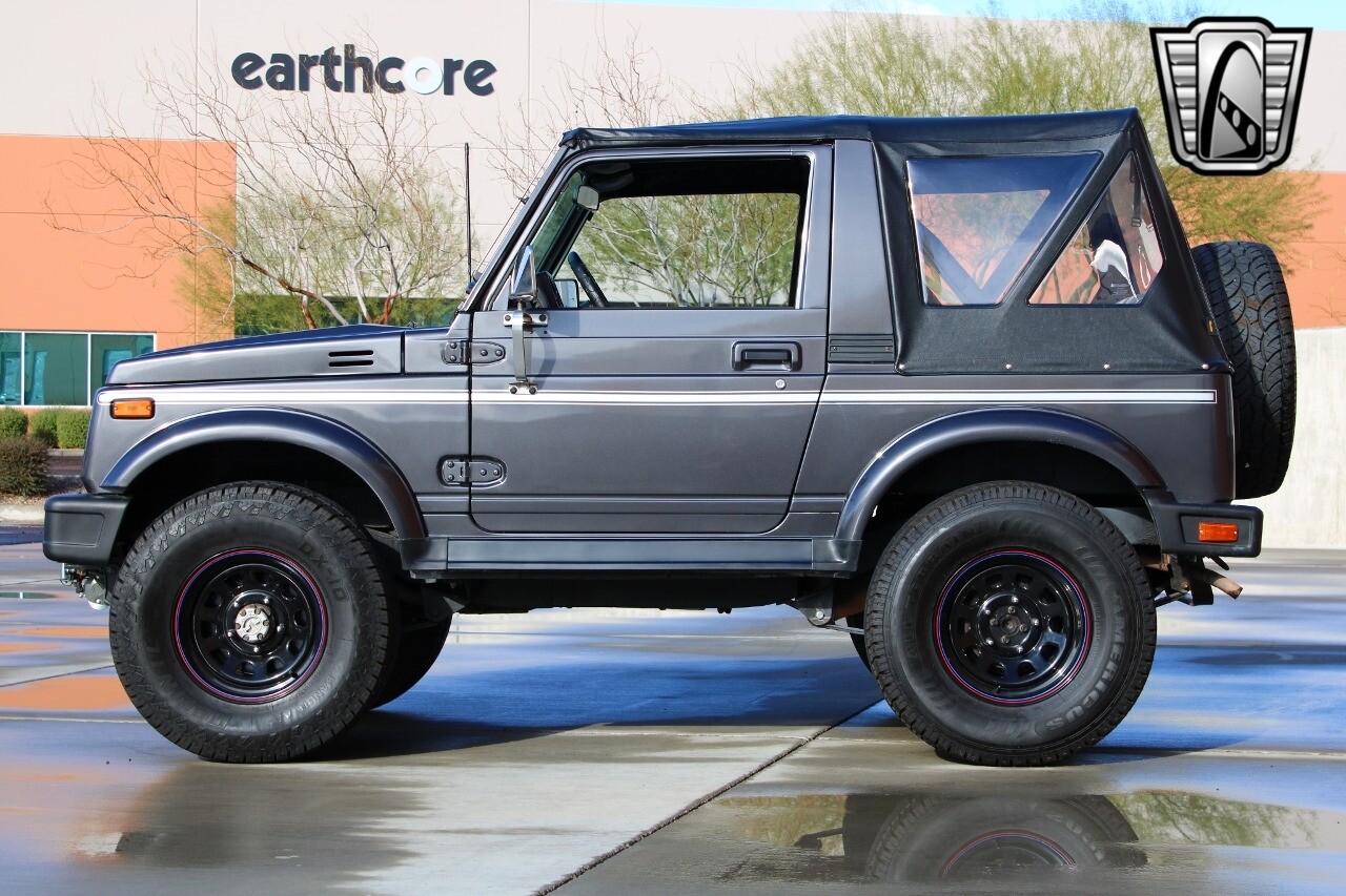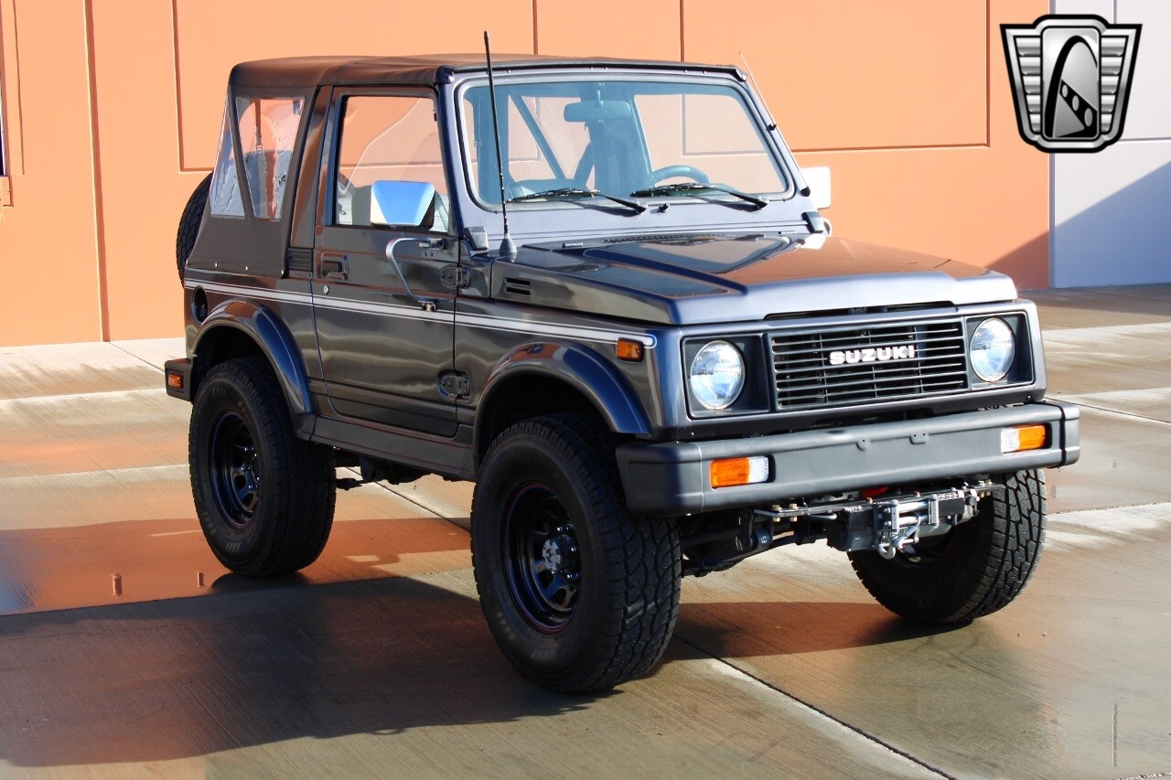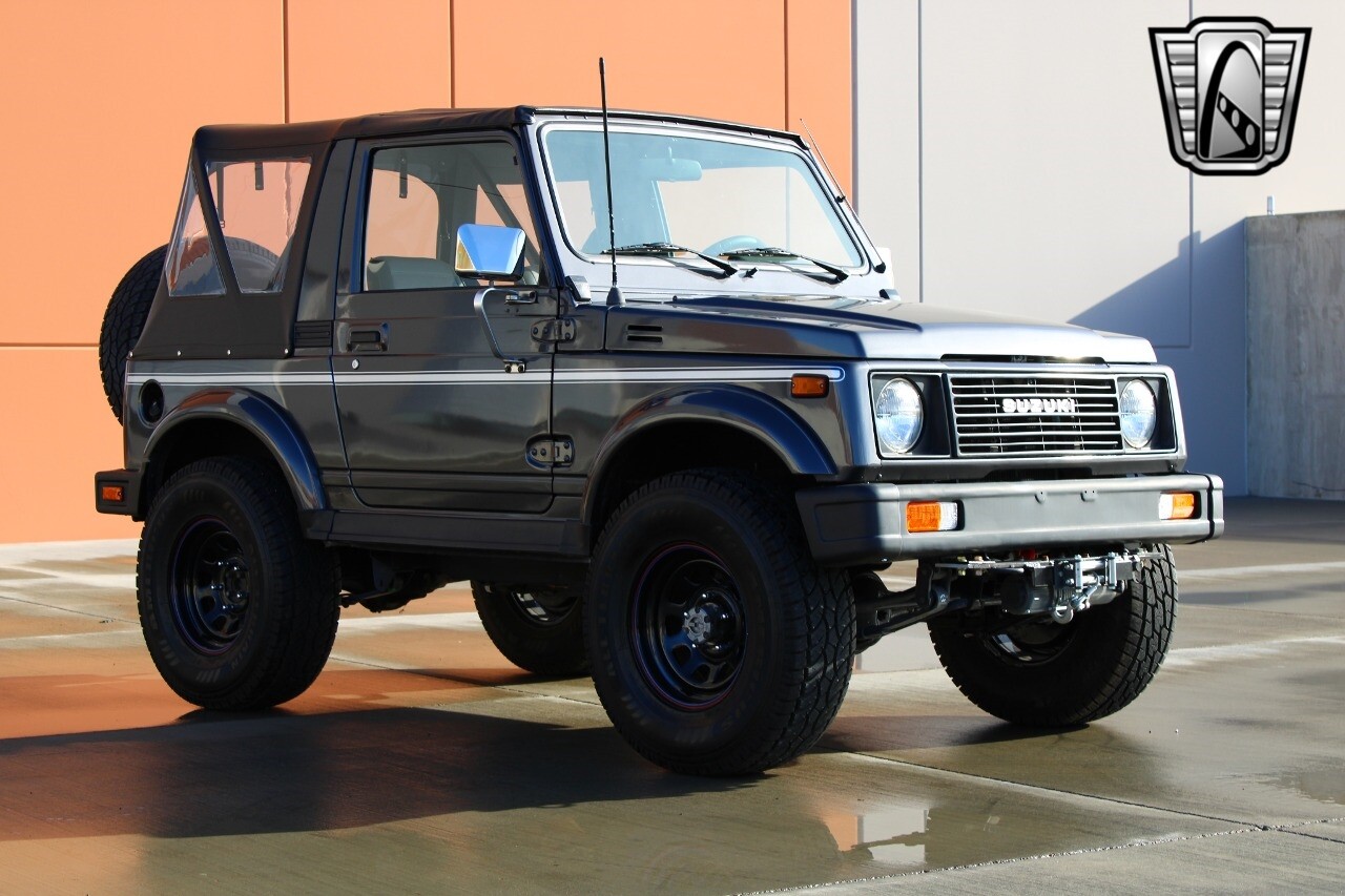 This 1987 example comes with a clean CarFax with no accident history. A fresh coat of gray paint was laid down to go along with the gray interior. Recent work, according to the owner includes all new suspension, new soft top, new bimini top, and new tires and wheels. The 1.3 liter 4 cylinder engine and manual transmissoin may not win you any land speed records but this little 4x4 shines in the wilderness thanks to a short wheelbase, manual locking front hubs and low gearing. Other features and options include a CB Radio, Winch with controls both in the cabin and under the hood, Roll Bar, Manual Convertible Top, Seatbelts and Vinyl Interior.