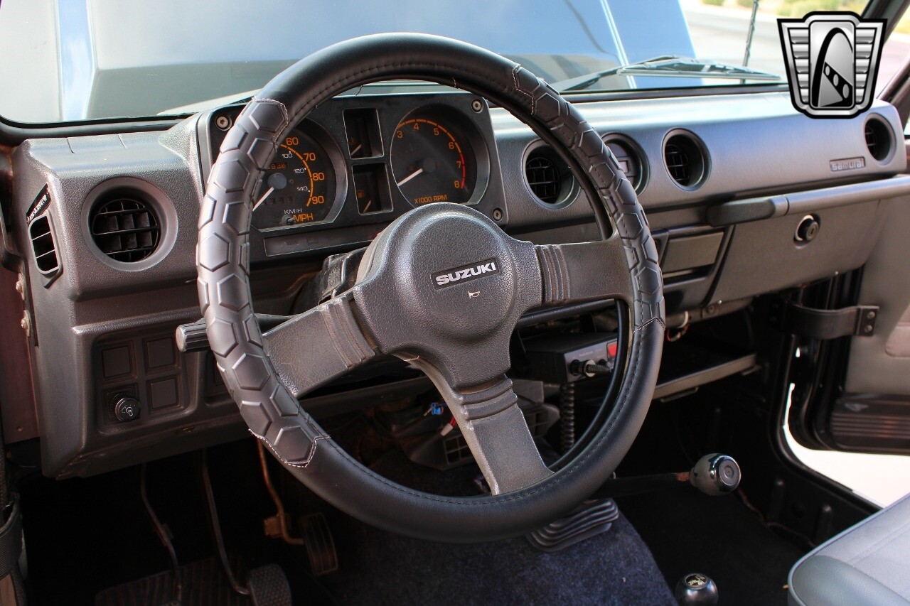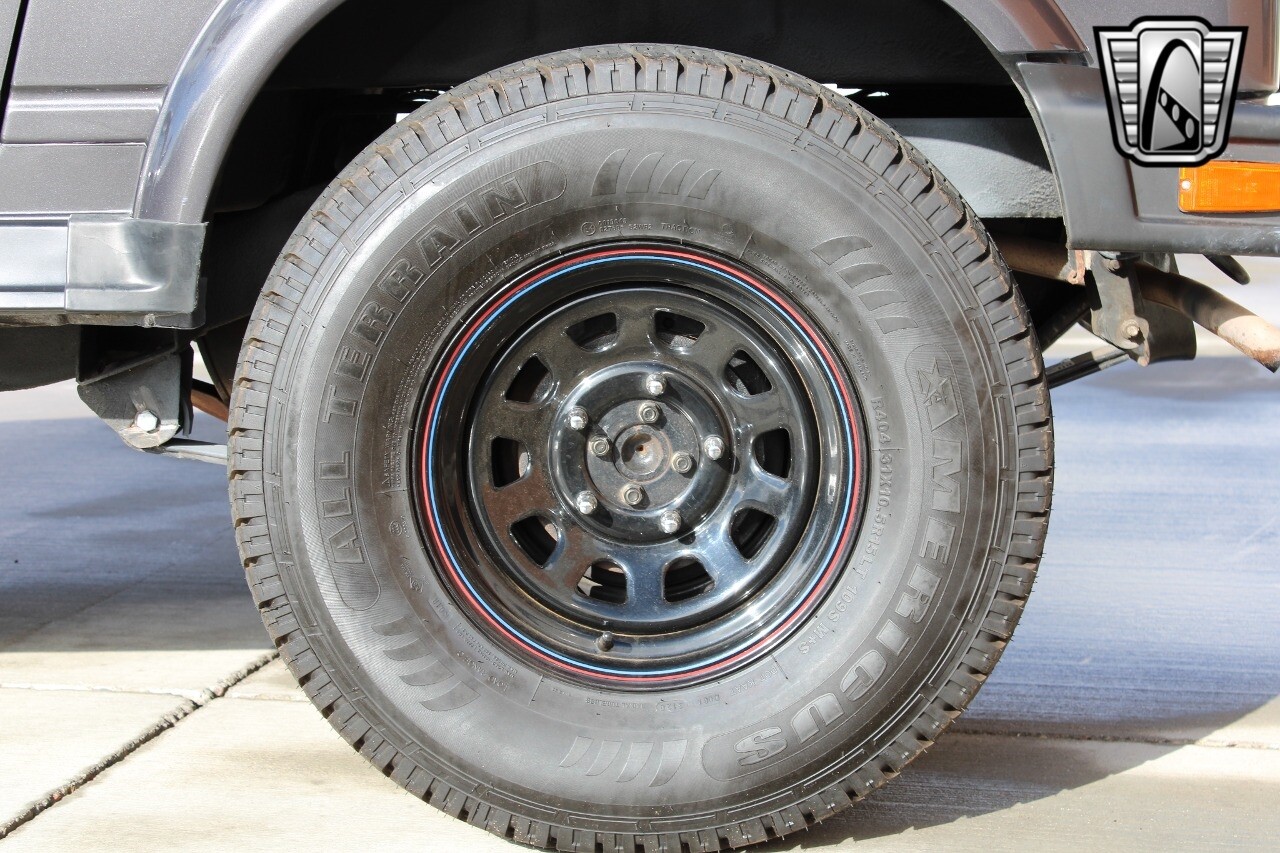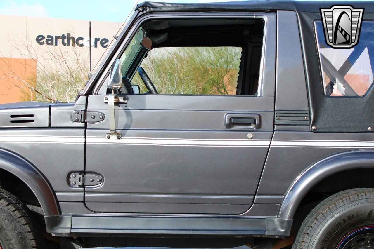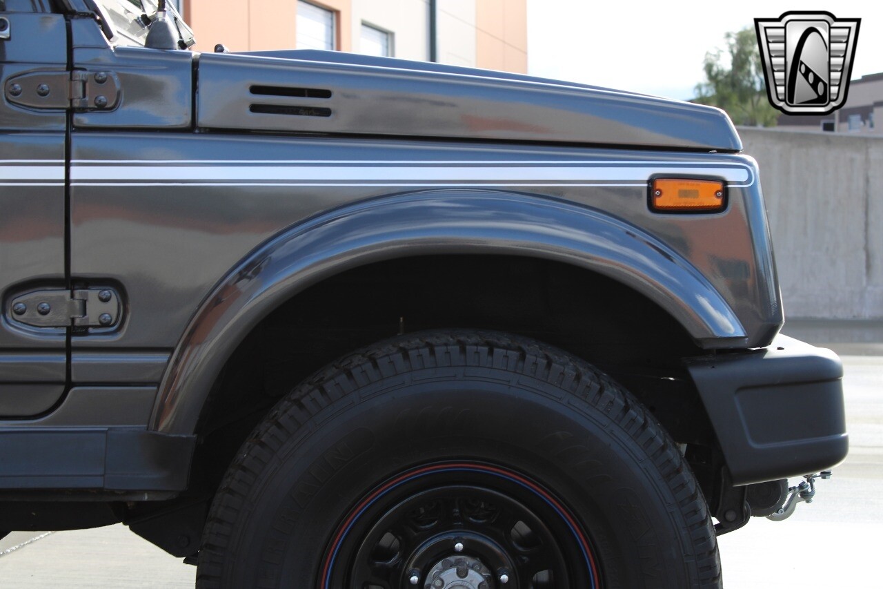 This 1987 example comes with a clean CarFax with no accident history. A fresh coat of gray paint was laid down to go along with the gray interior. Recent work, according to the owner includes all new suspension, new soft top, new bimini top, and new tires and wheels. The 1.3 liter 4 cylinder engine and manual transmissoin may not win you any land speed records but this little 4x4 shines in the wilderness thanks to a short wheelbase, manual locking front hubs and low gearing. Other features and options include a CB Radio, Winch with controls both in the cabin and under the hood, Roll Bar, Manual Convertible Top, Seatbelts and Vinyl Interior.