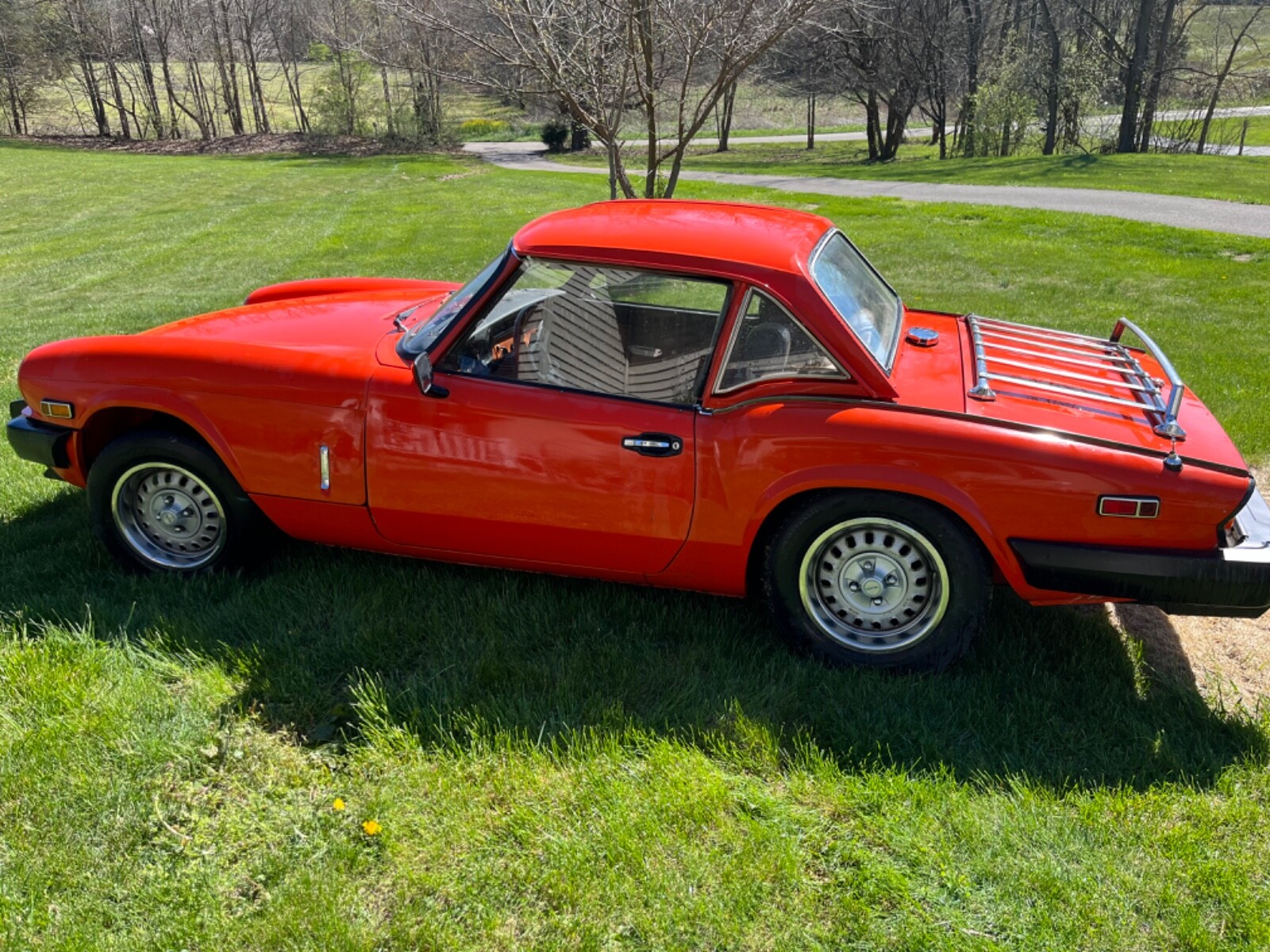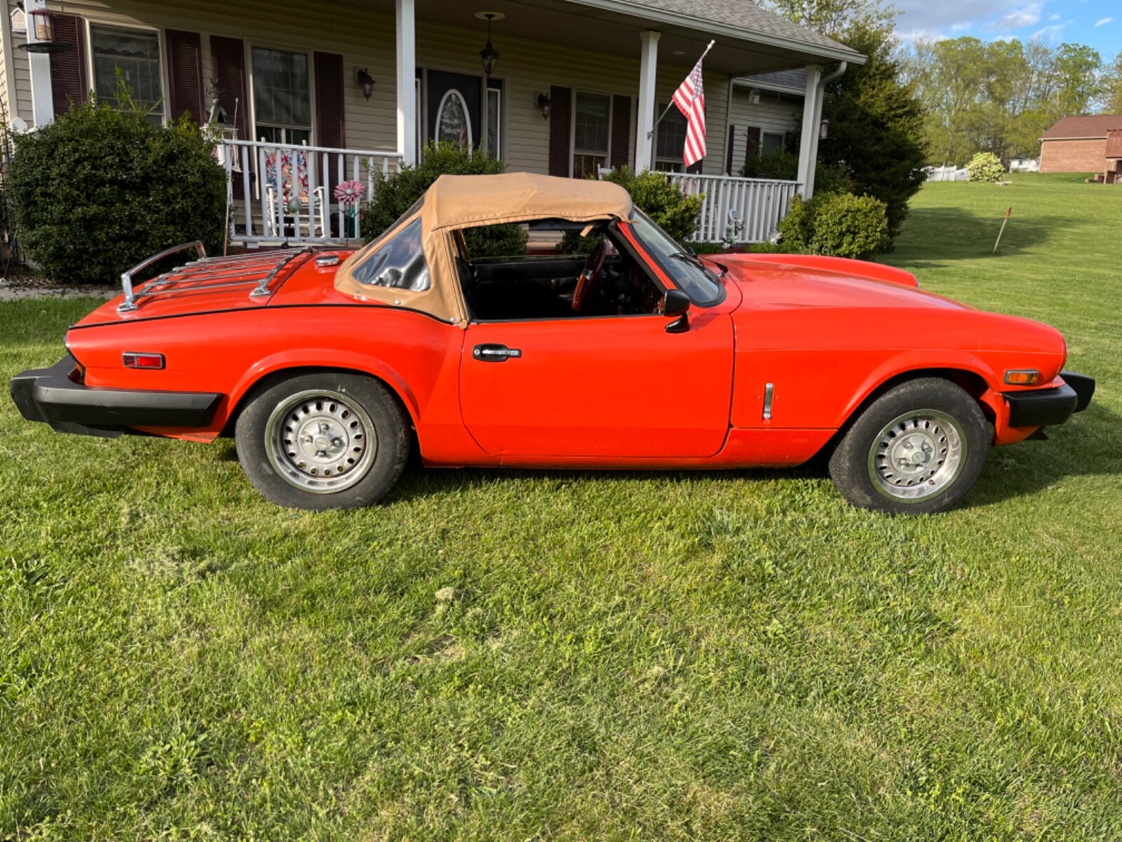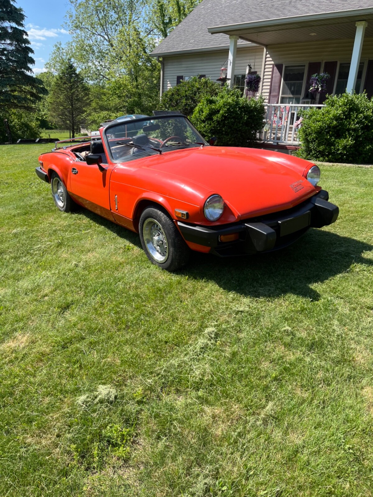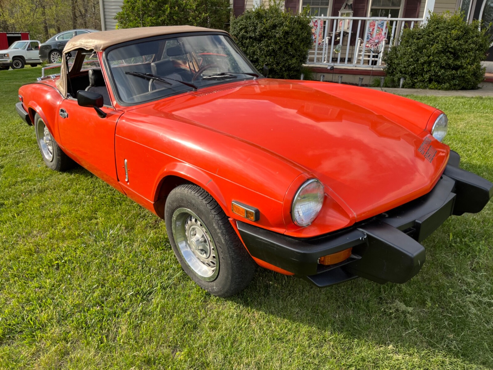 1980 Triumph Spitfire. New convertible top, factory steel hardtop. New interior, fiberglass transmission tunnel, new Jensen Stereo. New clutch and pressure plate, new Weber downdraft 32/36 DGV carb. New electronic ignition distributor, coil, wires and plugs. Valves adjusted, 120 psi compression. This car is as ready to go as I can make it. Paint shows its age but looks good.