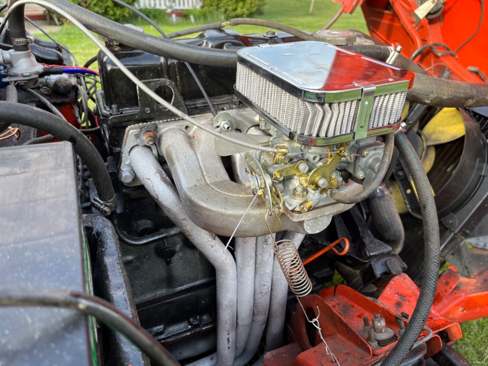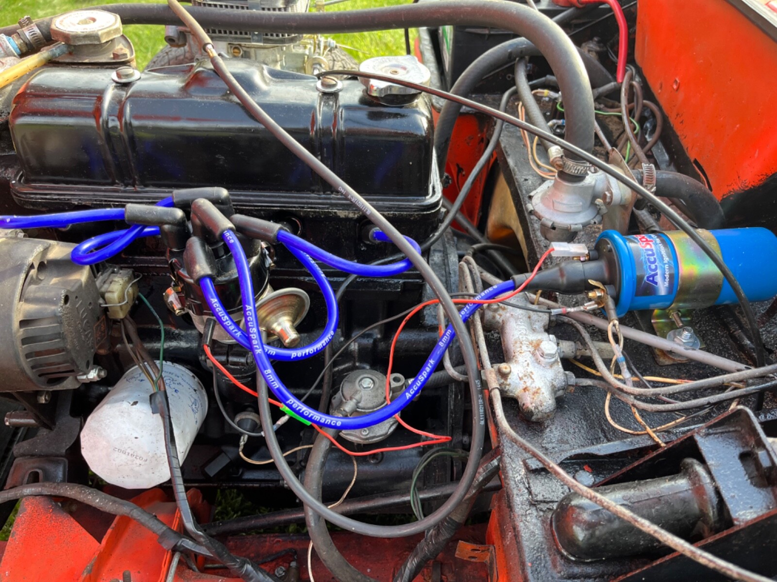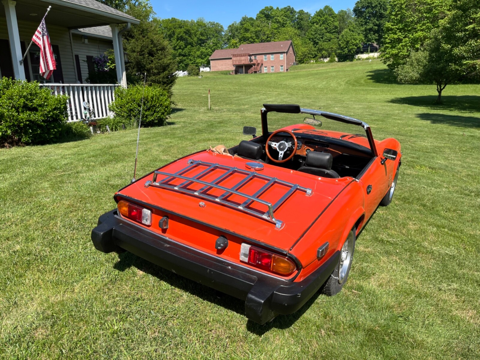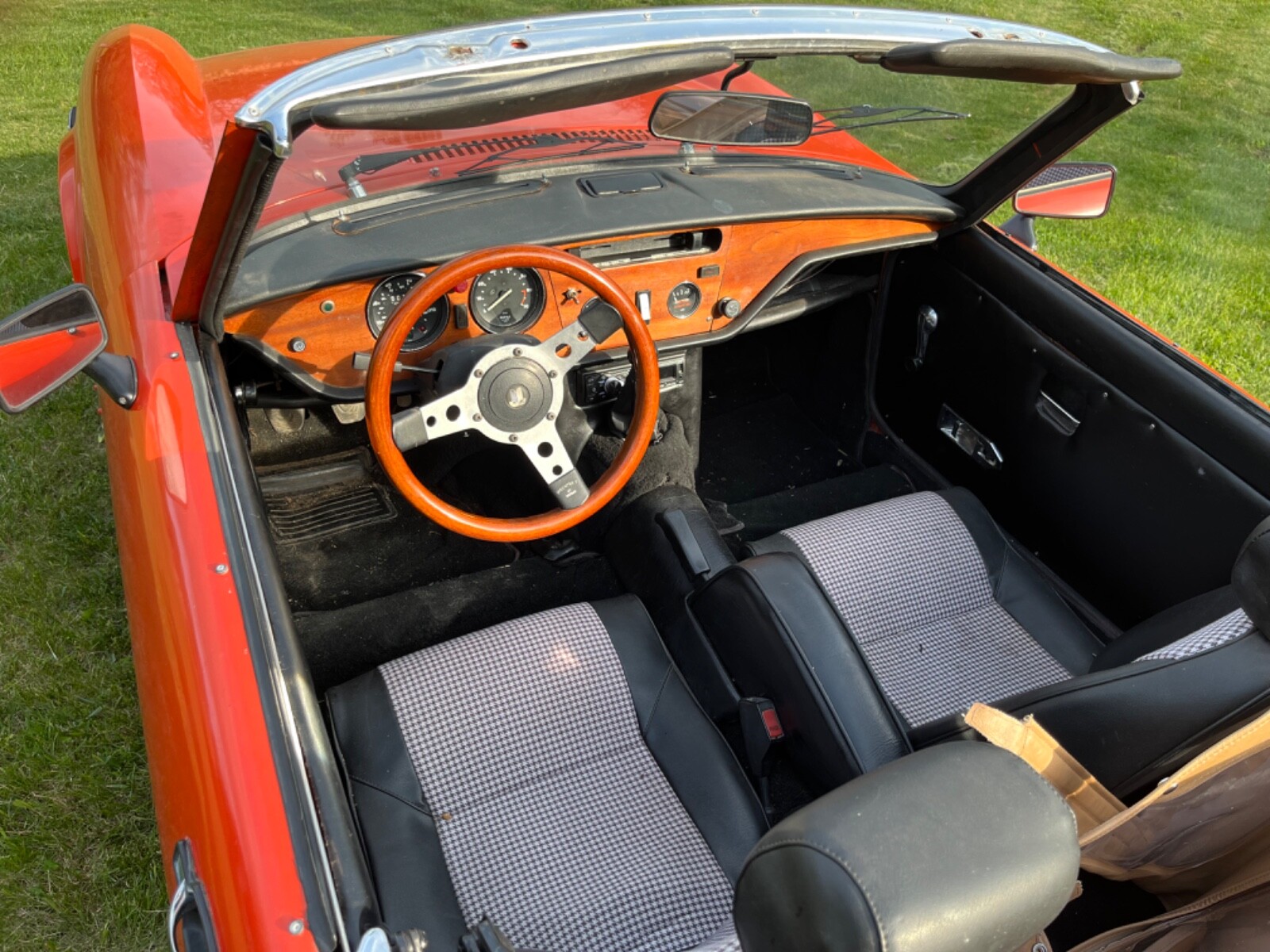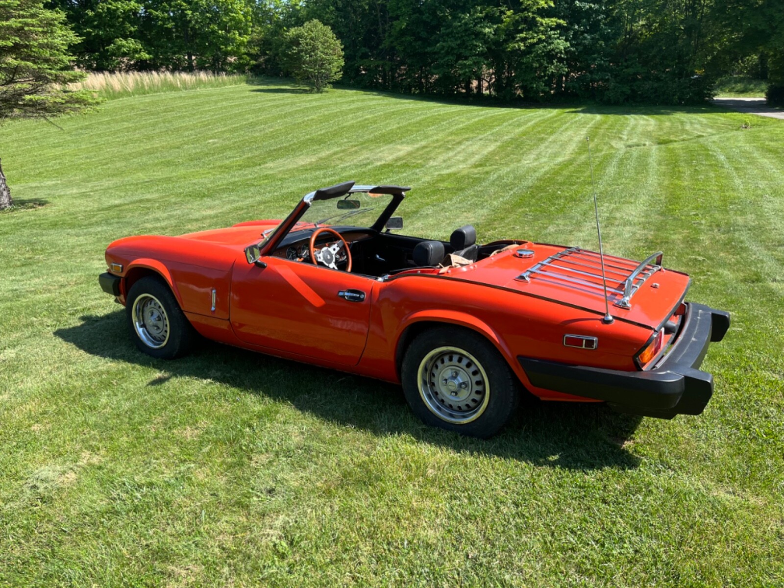 1980 Triumph Spitfire. New convertible top, factory steel hardtop. New interior, fiberglass transmission tunnel, new Jensen Stereo. New clutch and pressure plate, new Weber downdraft 32/36 DGV carb. New electronic ignition distributor, coil, wires and plugs. Valves adjusted, 120 psi compression. This car is as ready to go as I can make it. Paint shows its age but looks good.