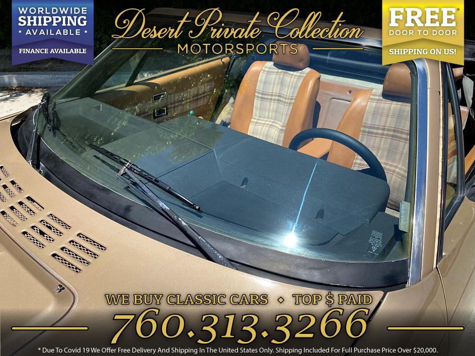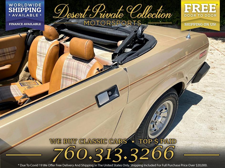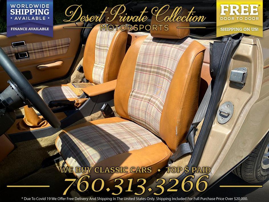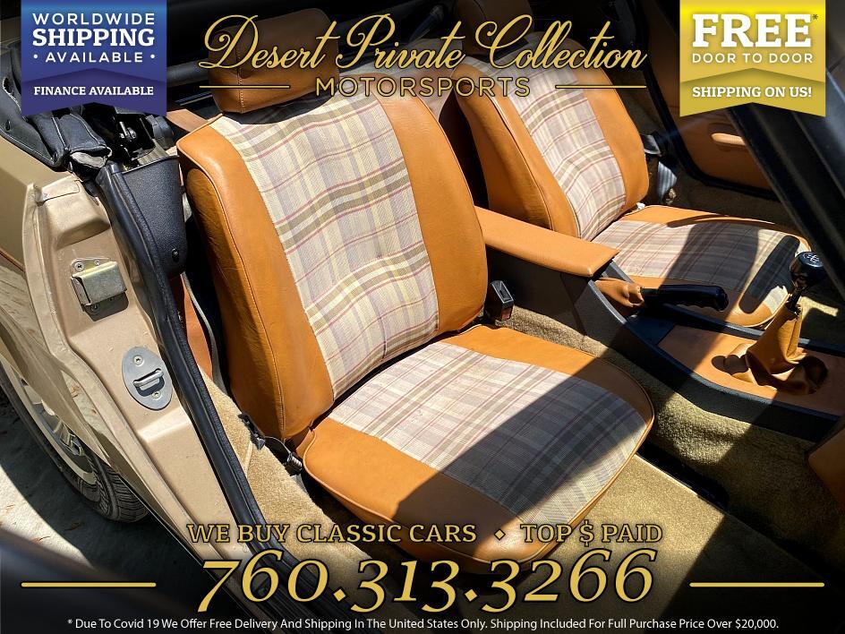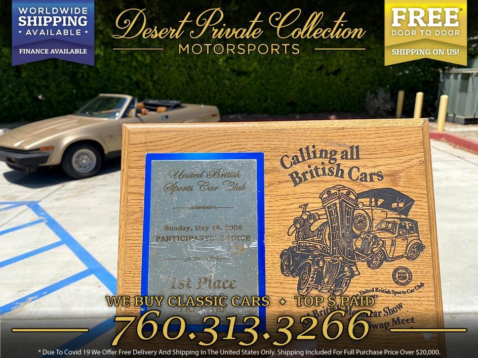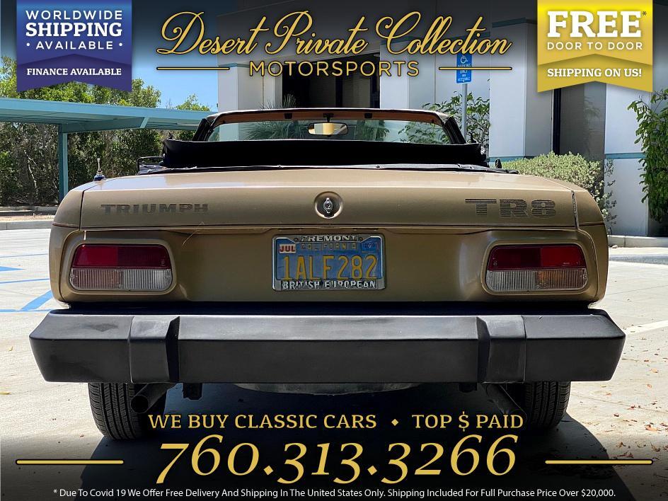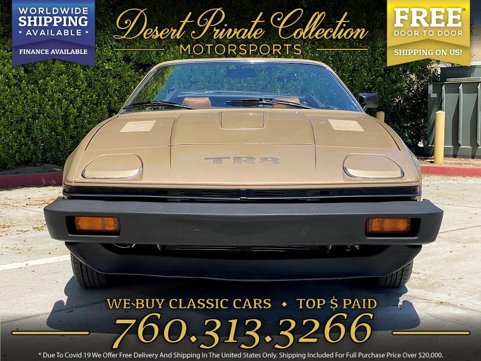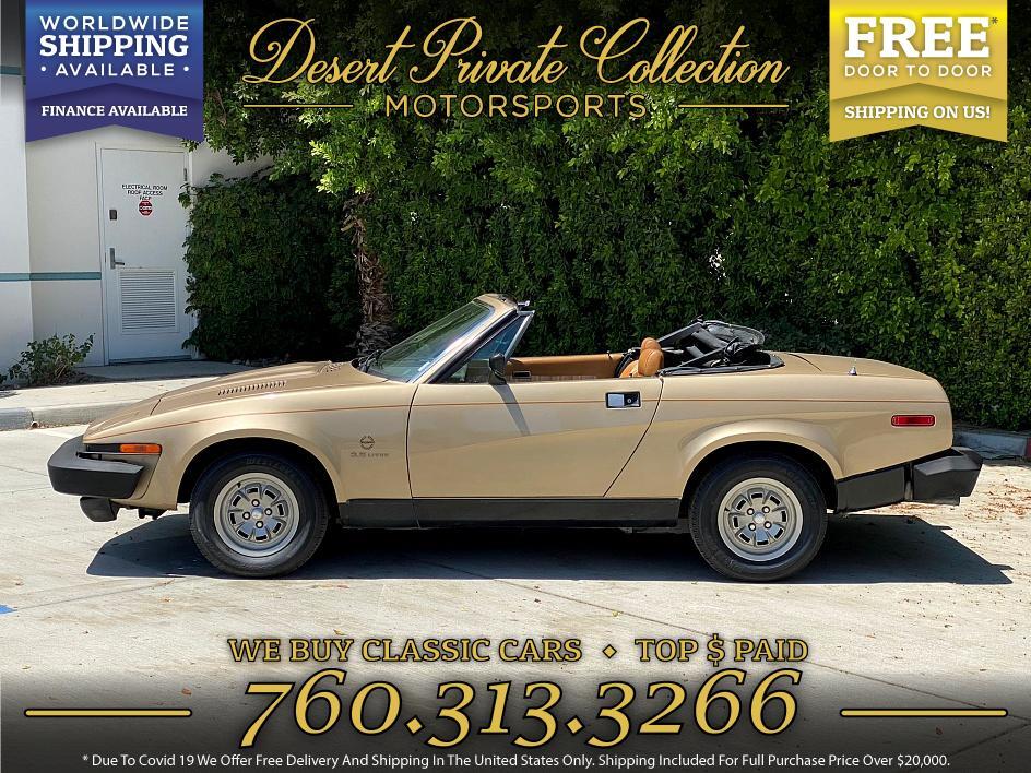 This very presentable Triumph TR8 Convertible comes in gold metallic with tan and tartan interior. It comes equipped with a 5 speed manual transmission| air conditioning| 13 alloy wheels| pop out headlights| black vinyl soft top and it includes the convertible boot. Excellent original blue plate California car. Runs and drives strong. ... Read the full description on our Website at: