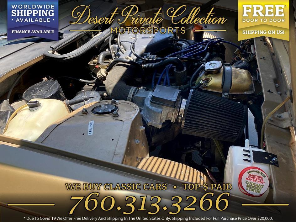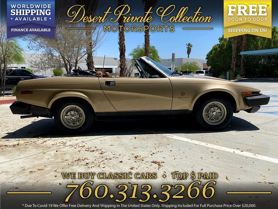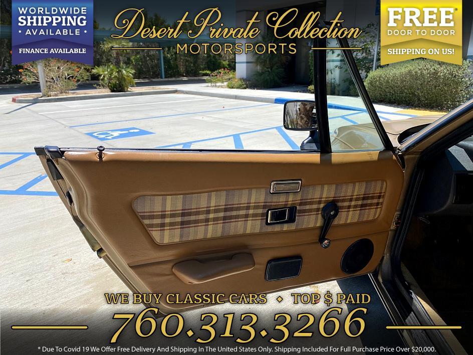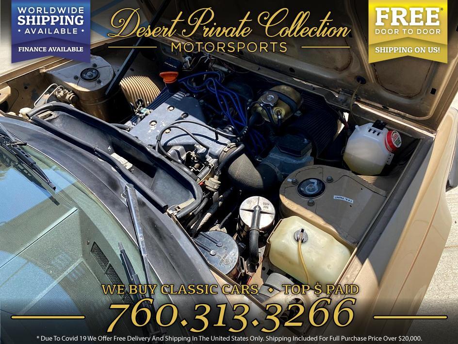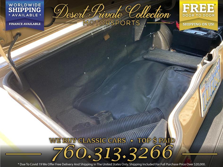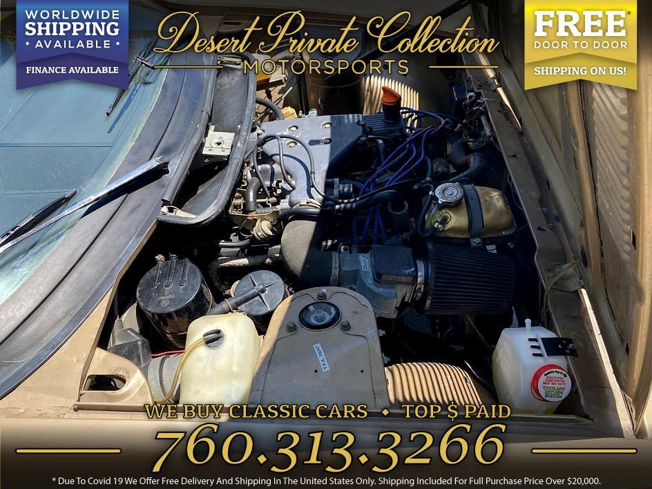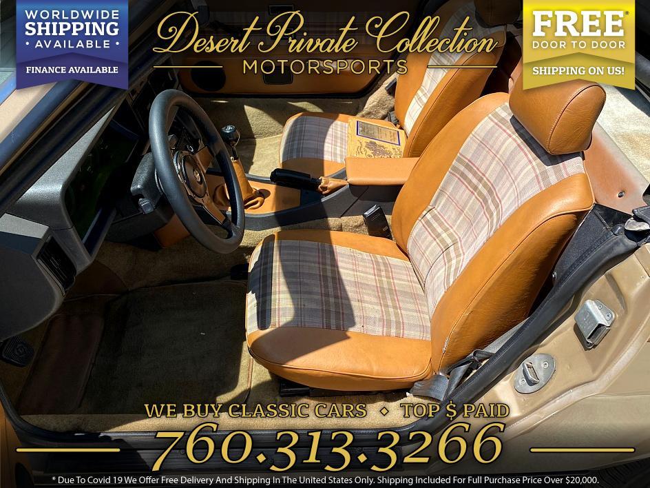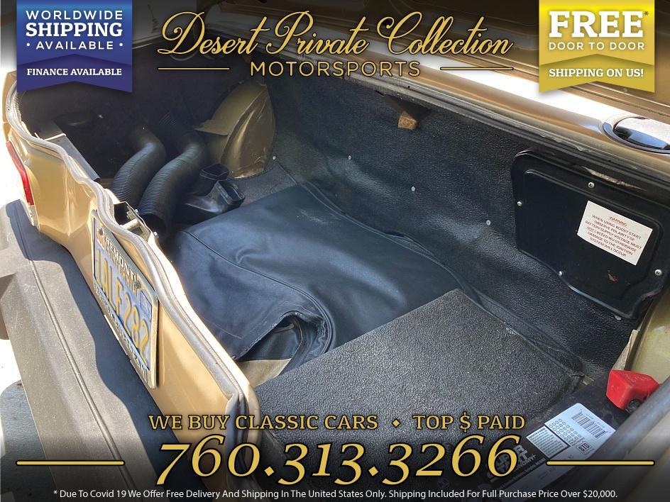 This very presentable Triumph TR8 Convertible comes in gold metallic with tan and tartan interior. It comes equipped with a 5 speed manual transmission| air conditioning| 13 alloy wheels| pop out headlights| black vinyl soft top and it includes the convertible boot. Excellent original blue plate California car. Runs and drives strong. ... Read the full description on our Website at: