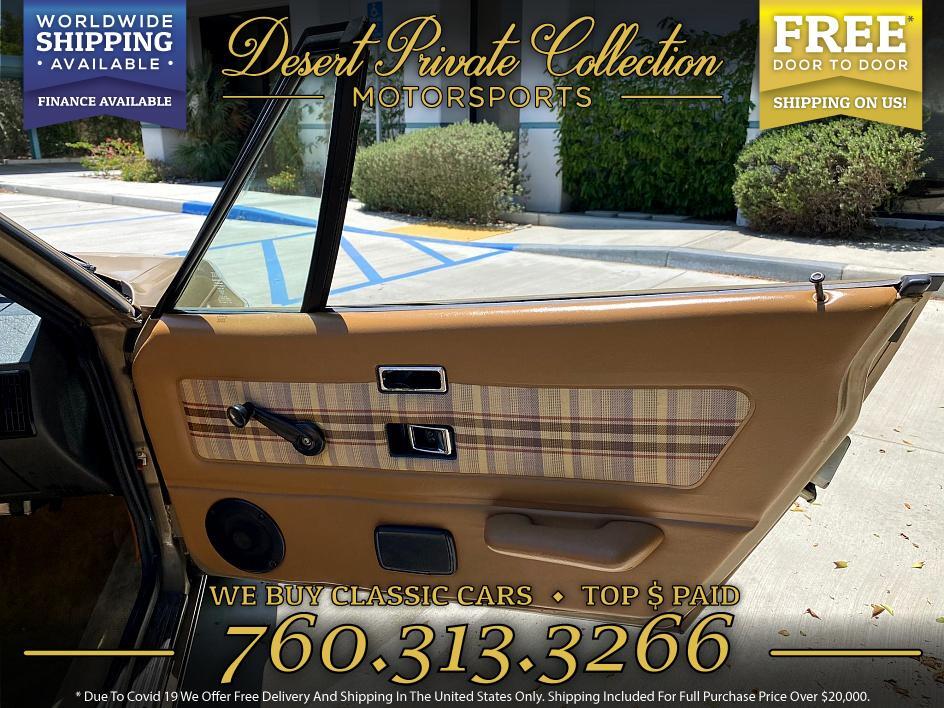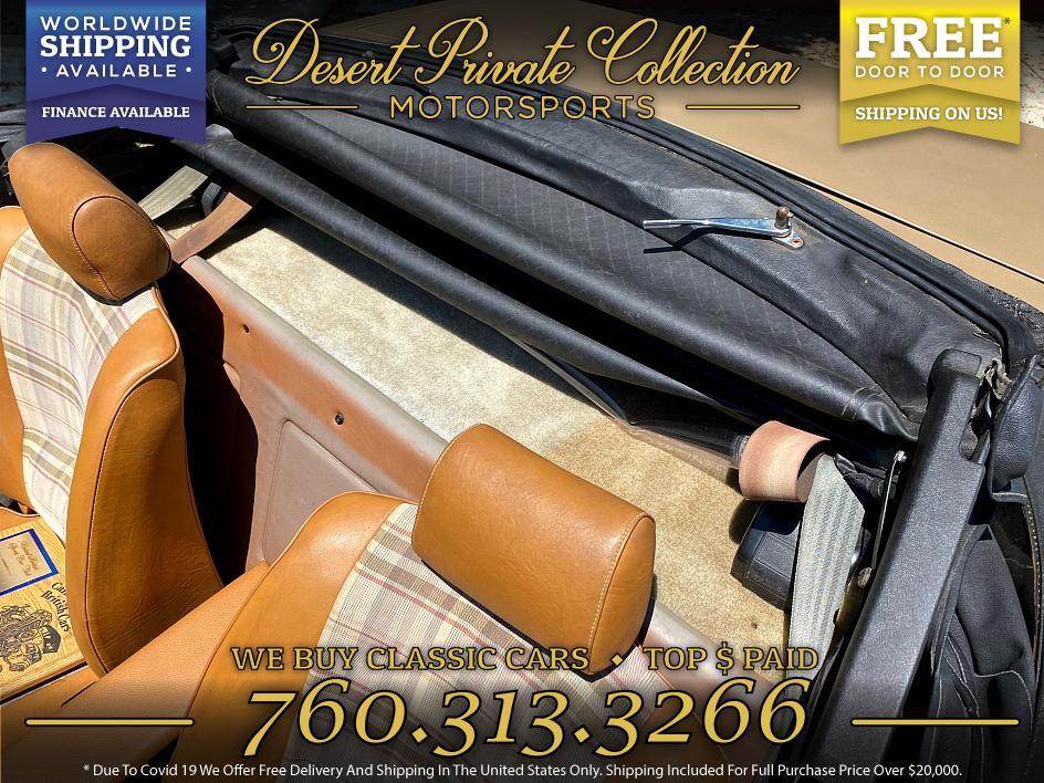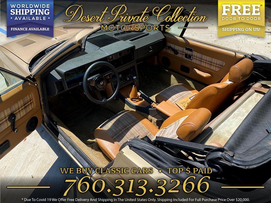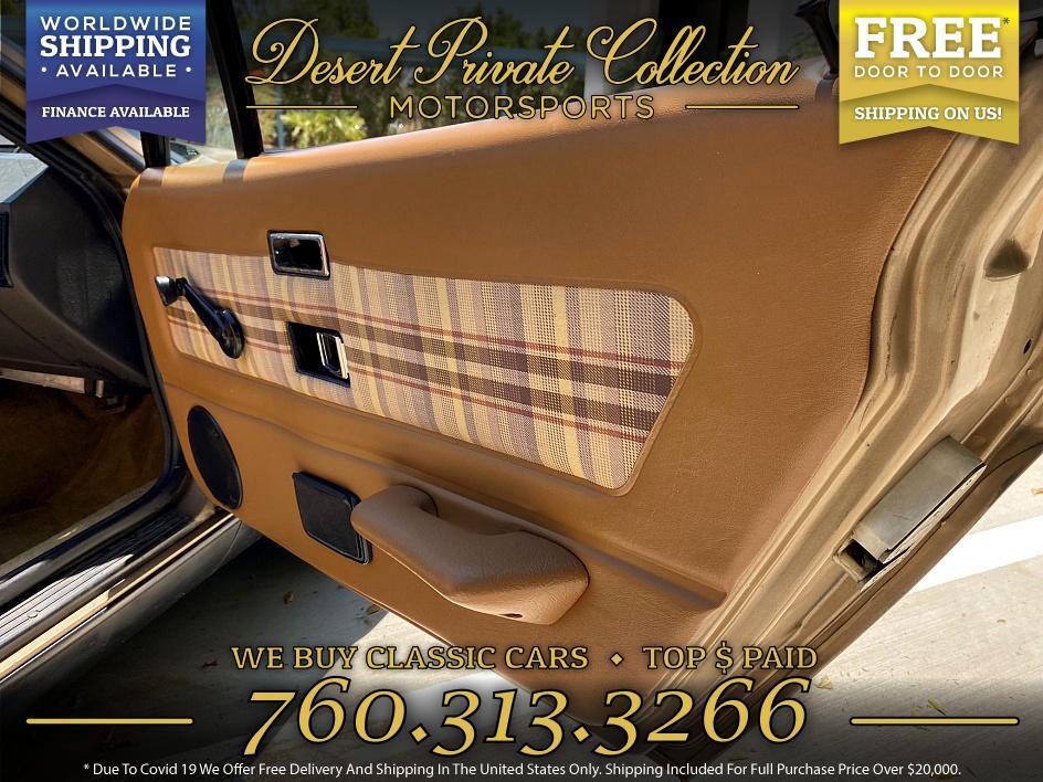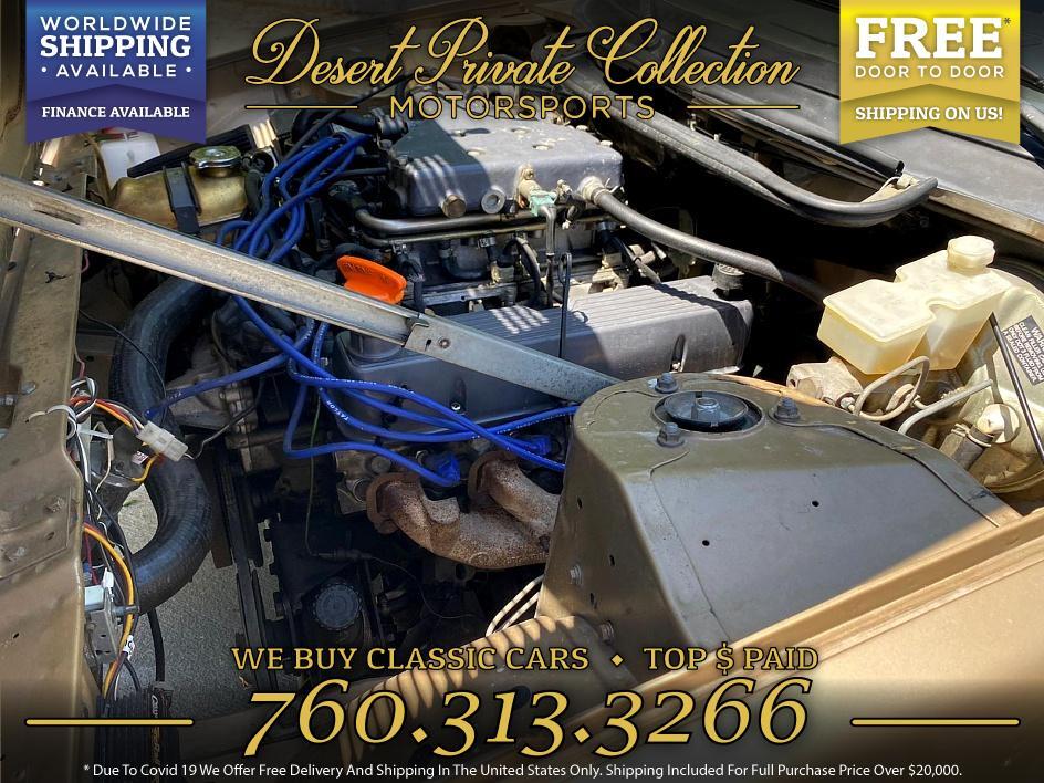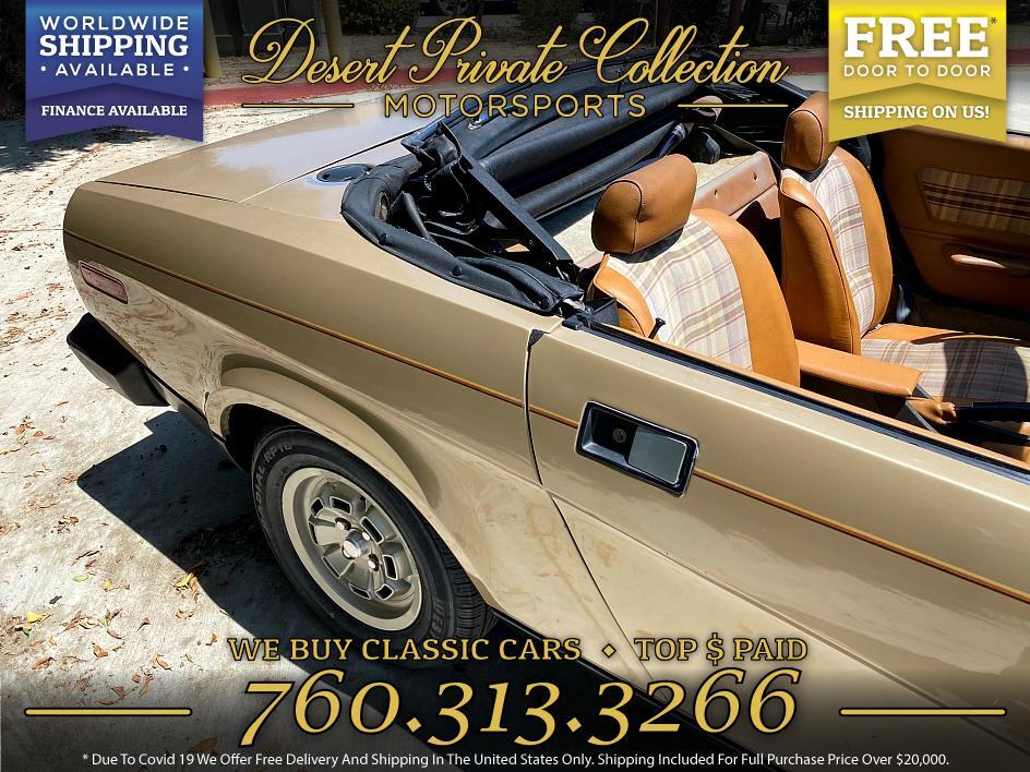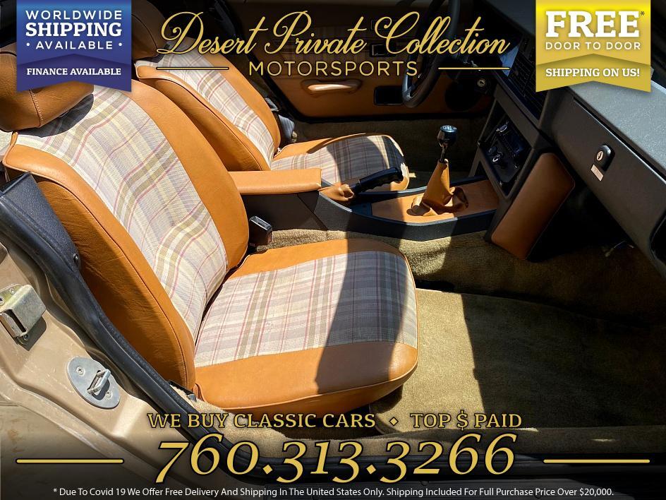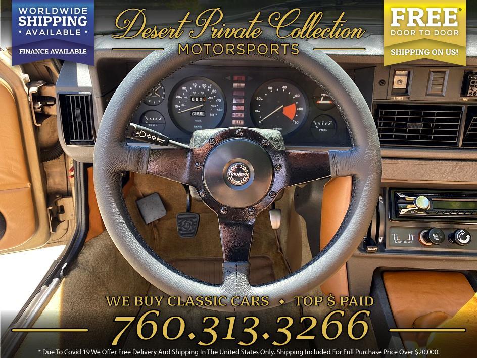 This very presentable Triumph TR8 Convertible comes in gold metallic with tan and tartan interior. It comes equipped with a 5 speed manual transmission| air conditioning| 13 alloy wheels| pop out headlights| black vinyl soft top and it includes the convertible boot. Excellent original blue plate California car. Runs and drives strong. ... Read the full description on our Website at: