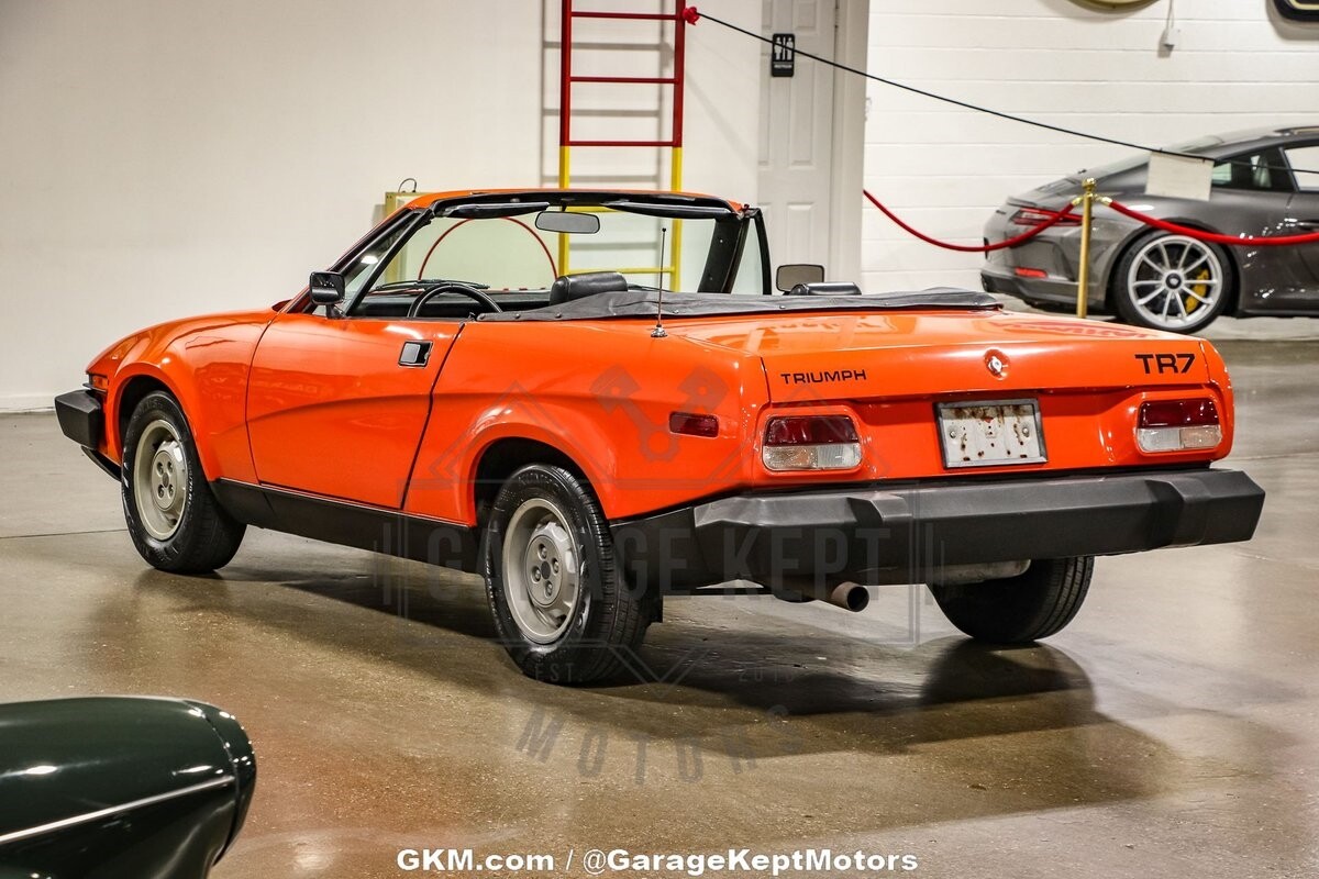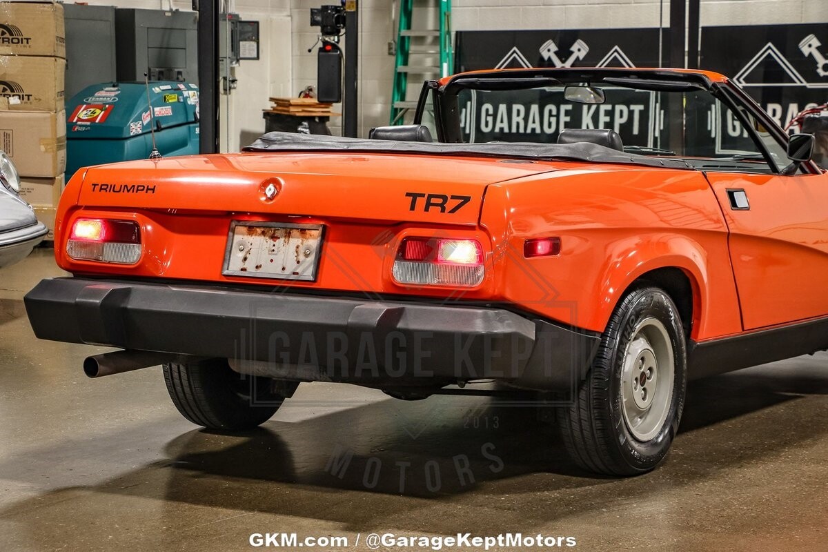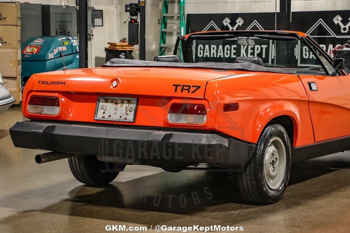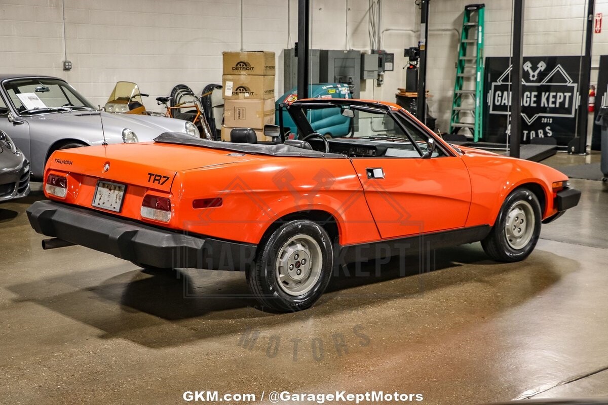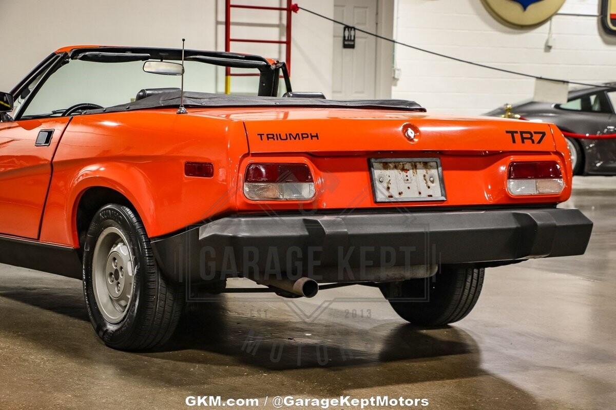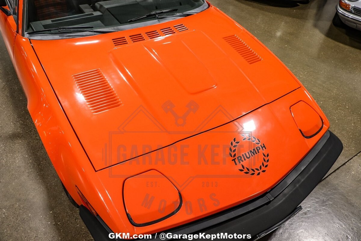 With a mere 24,000 miles on the odometer, this Triumph TR7 stands as a well-preserved testament to its era. The vibrant Orange exterior captures attention wherever it goes, radiating a sense of fun and adventure inherent in open-top motoring. Complementing the striking exterior is a sleek Black convertible top, adding an element of sophistication while offering the joy of al fresco driving when the weather permits.