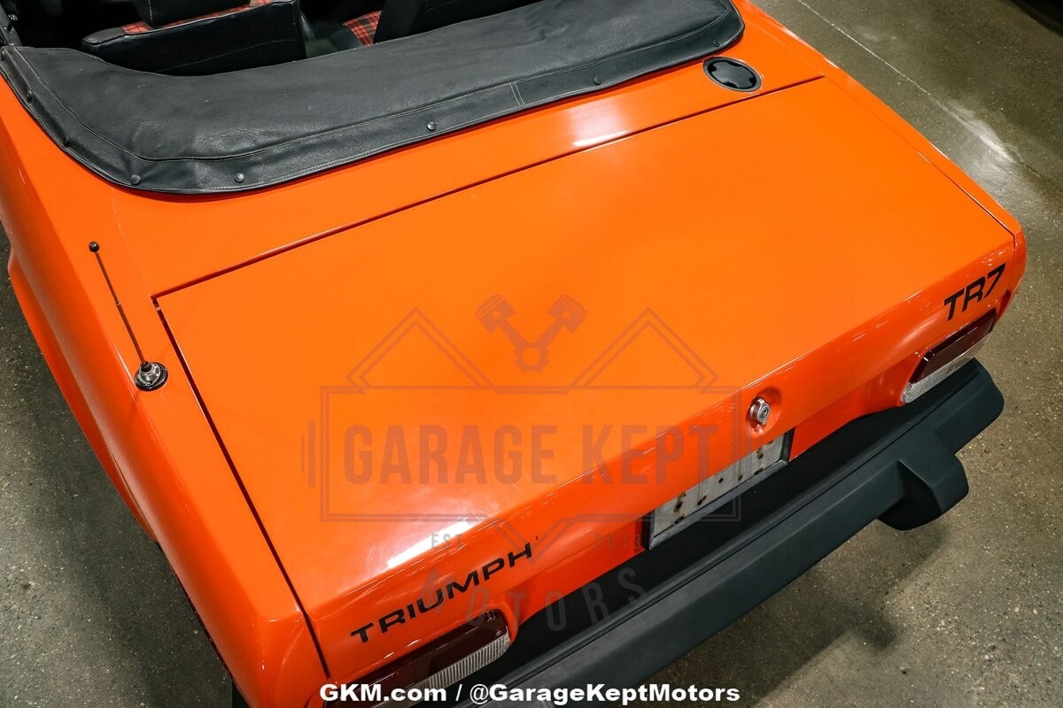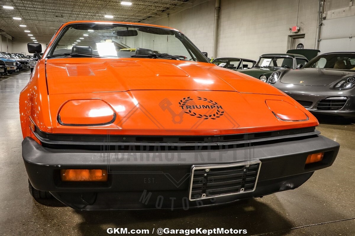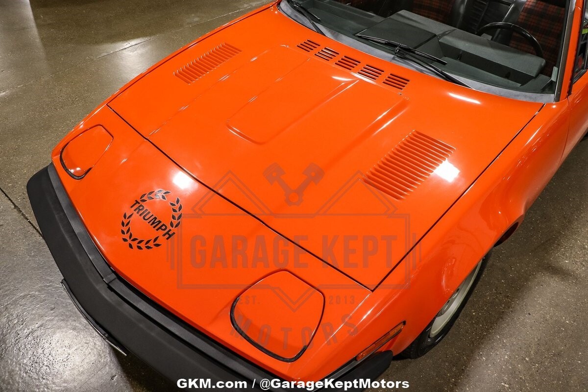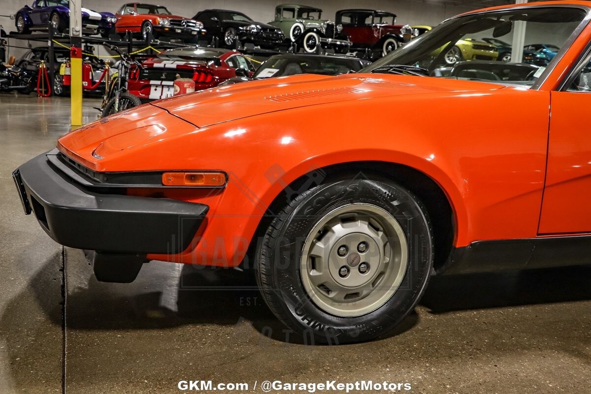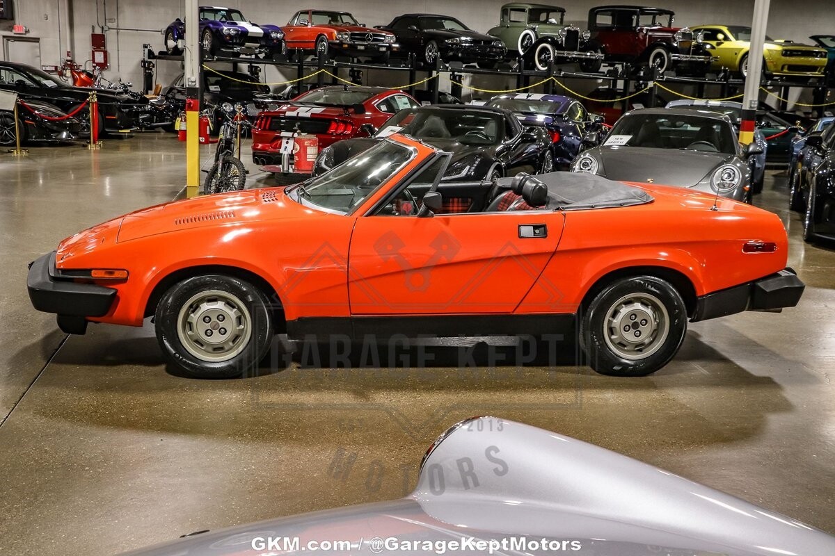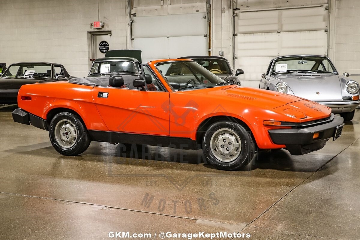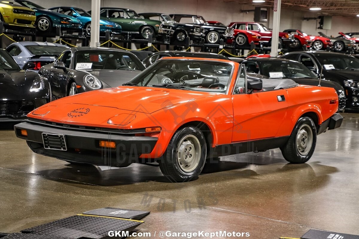 With a mere 24,000 miles on the odometer, this Triumph TR7 stands as a well-preserved testament to its era. The vibrant Orange exterior captures attention wherever it goes, radiating a sense of fun and adventure inherent in open-top motoring. Complementing the striking exterior is a sleek Black convertible top, adding an element of sophistication while offering the joy of al fresco driving when the weather permits.