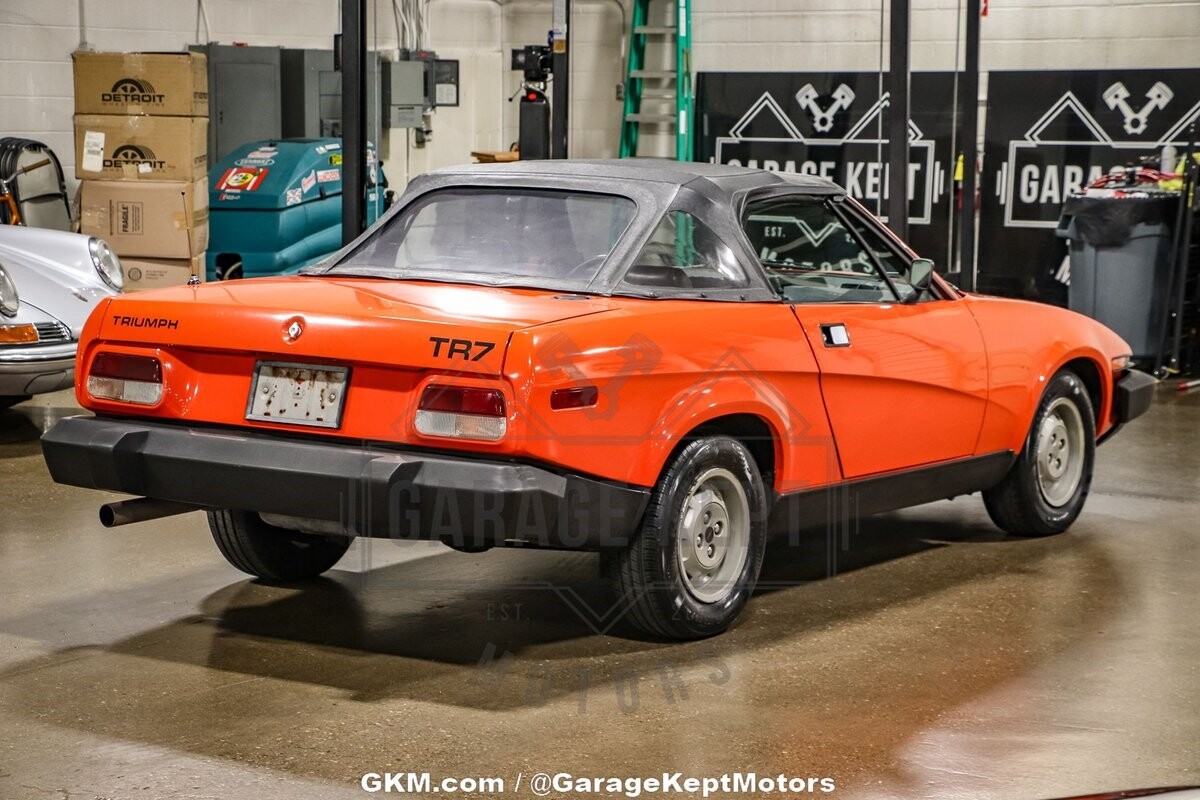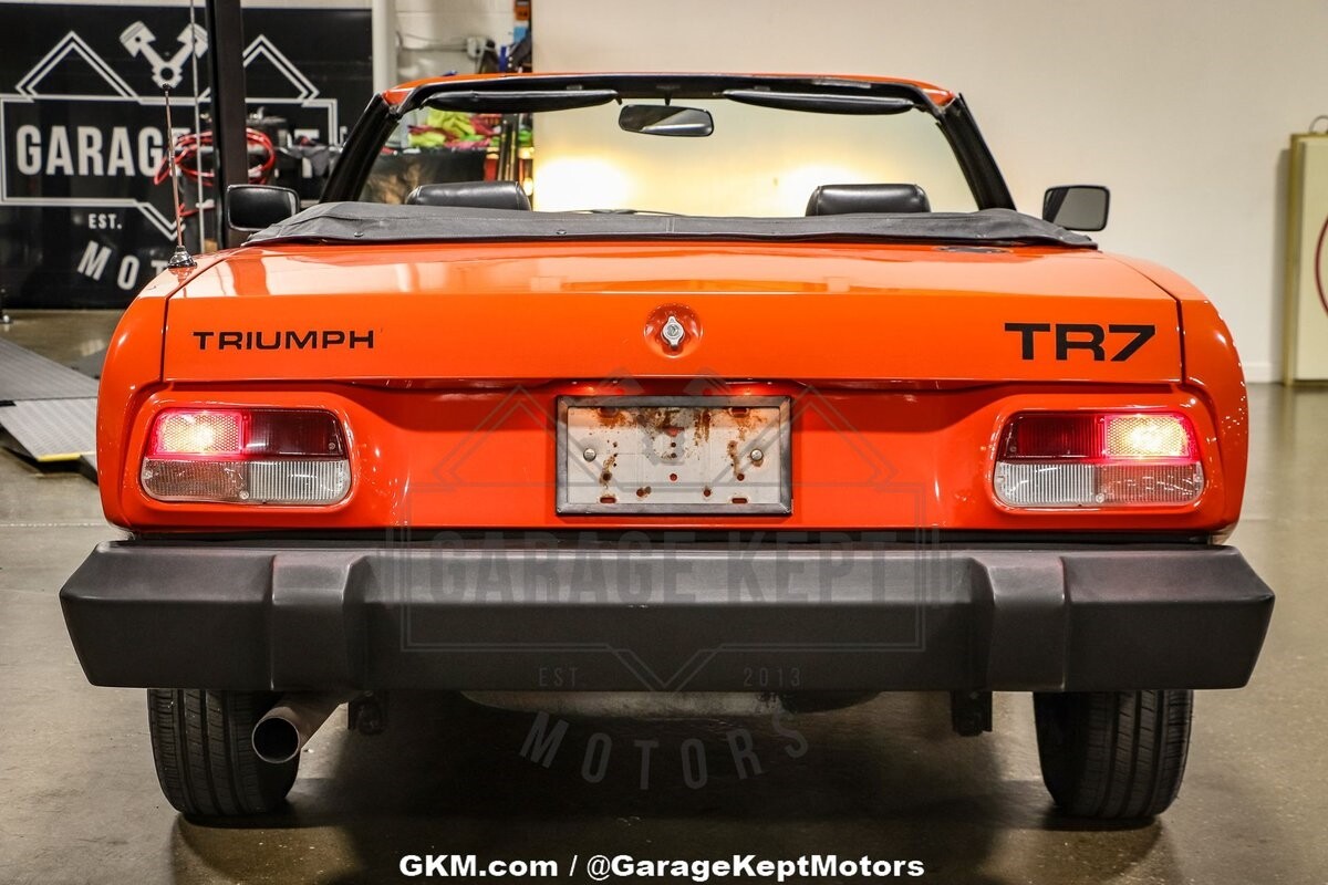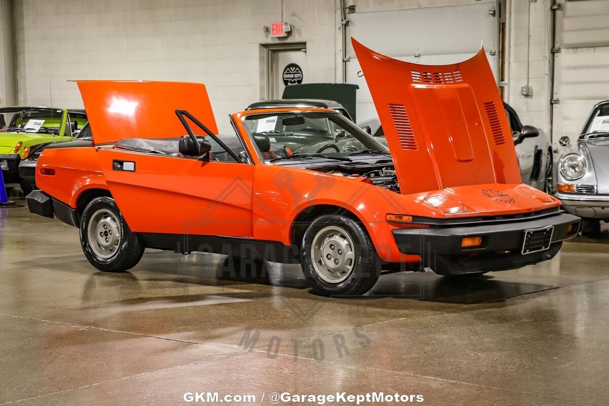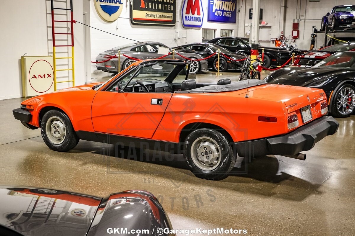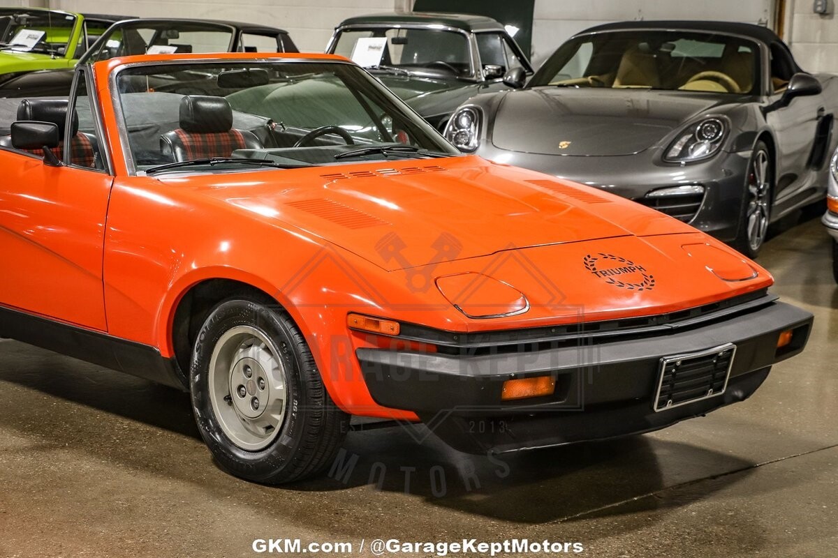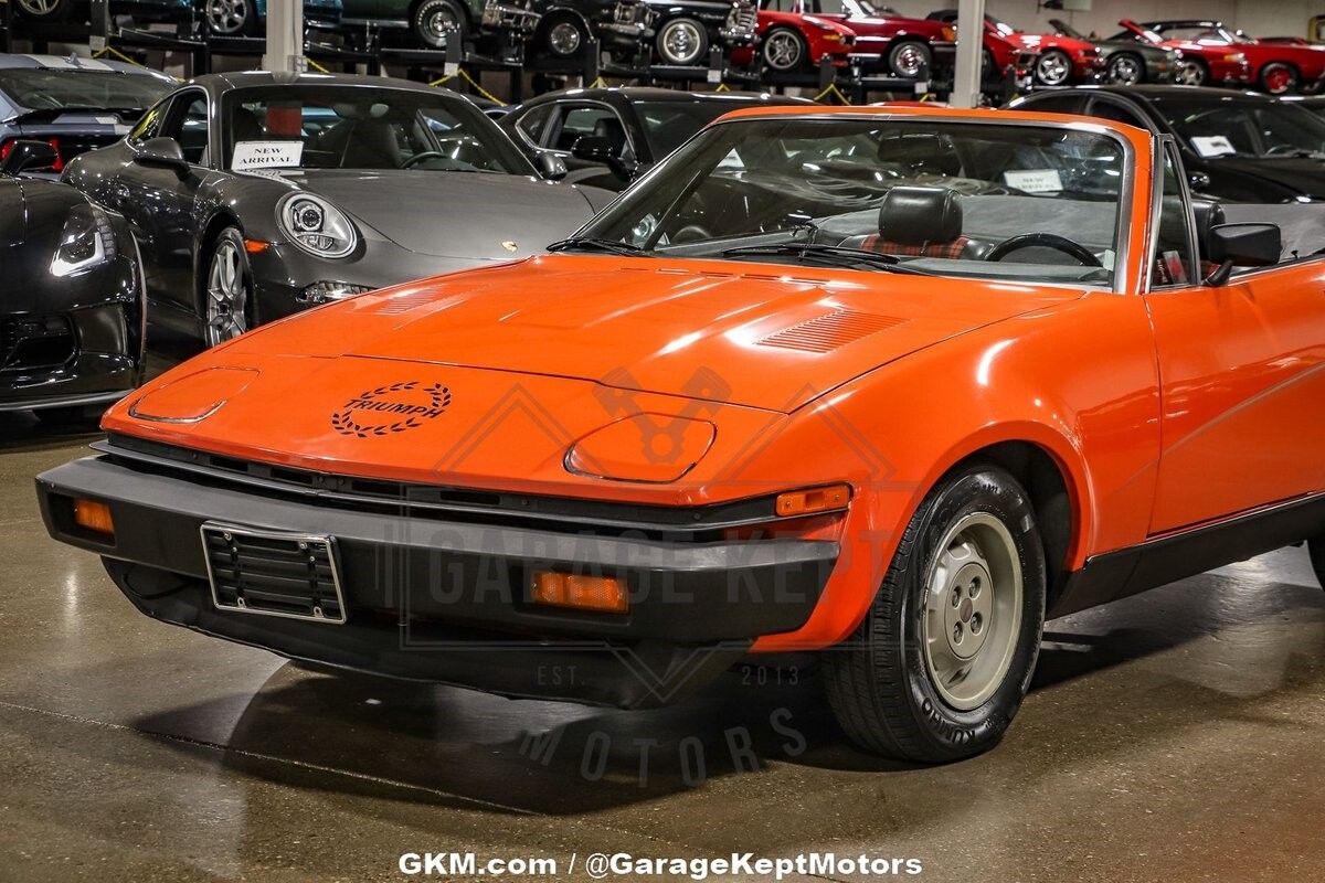 With a mere 24,000 miles on the odometer, this Triumph TR7 stands as a well-preserved testament to its era. The vibrant Orange exterior captures attention wherever it goes, radiating a sense of fun and adventure inherent in open-top motoring. Complementing the striking exterior is a sleek Black convertible top, adding an element of sophistication while offering the joy of al fresco driving when the weather permits.