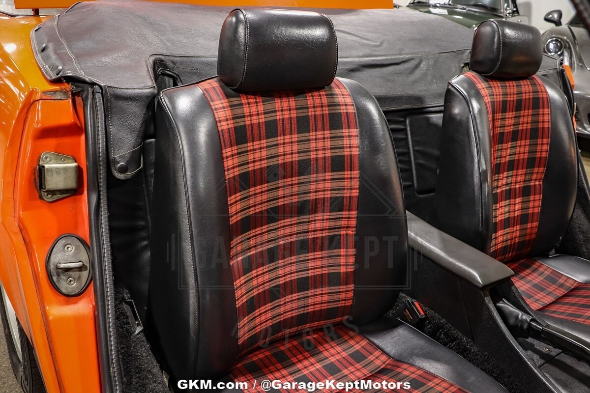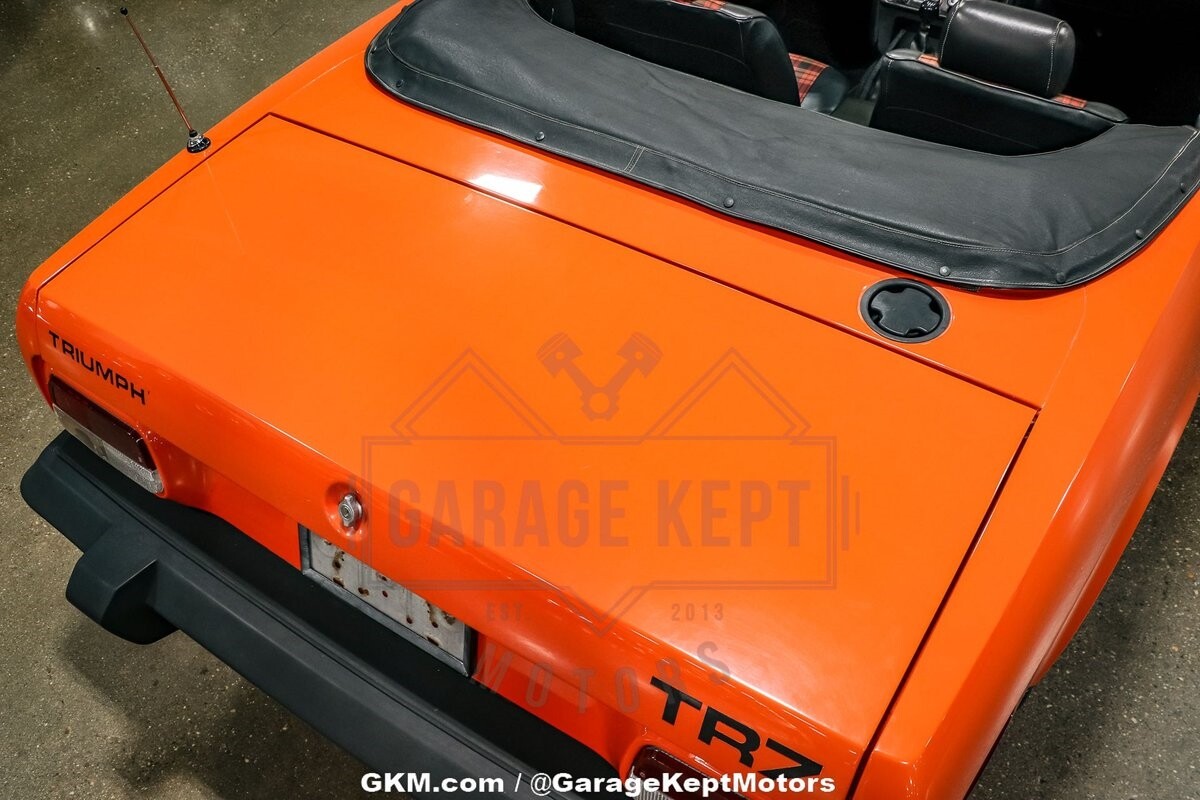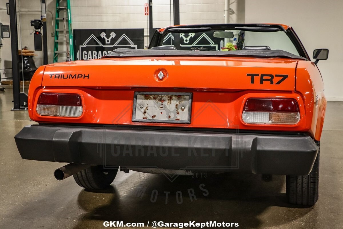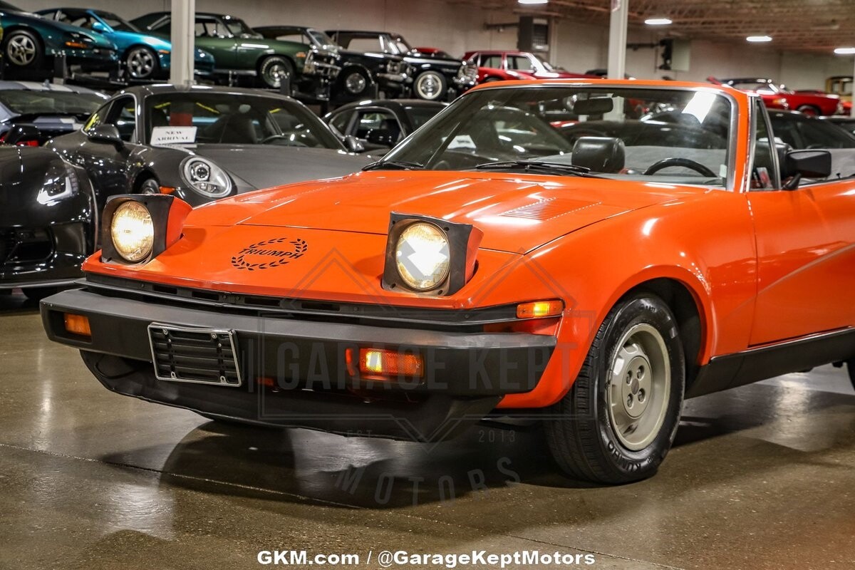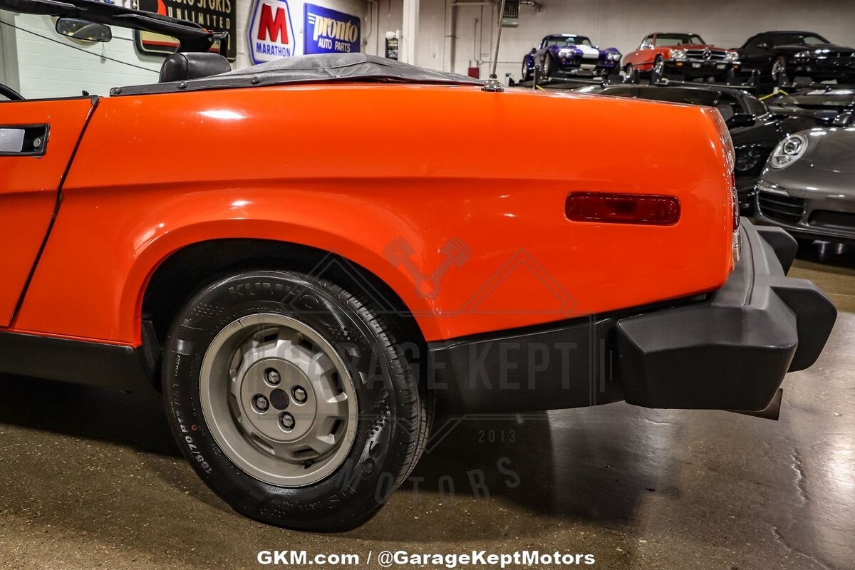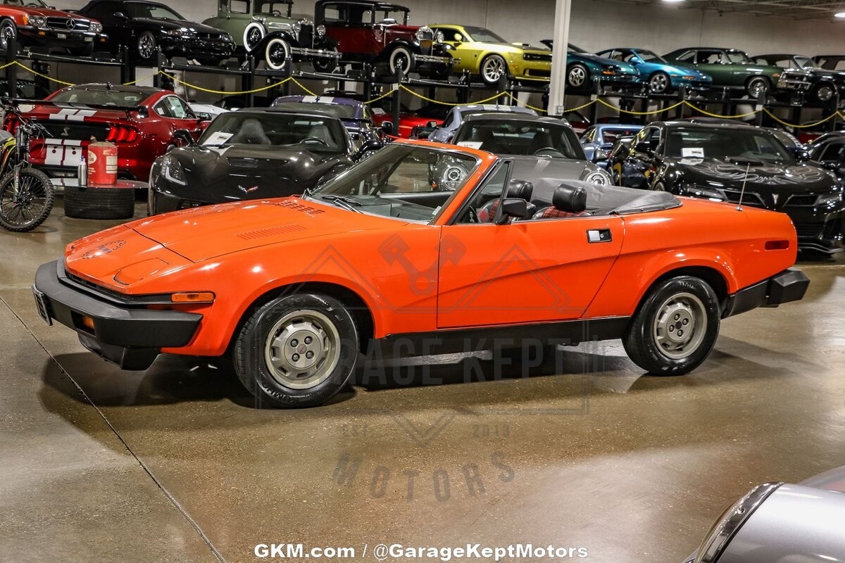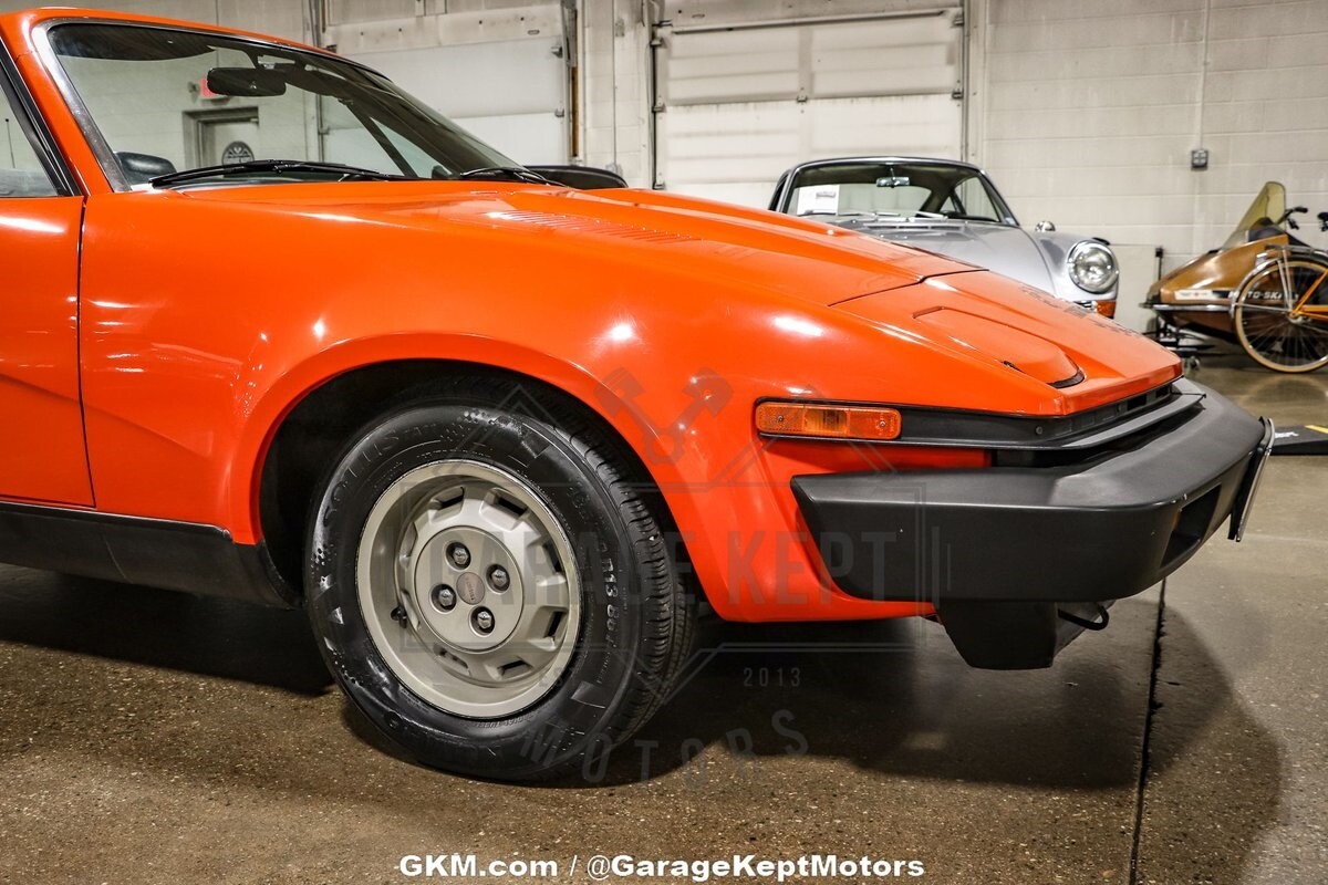 With a mere 24,000 miles on the odometer, this Triumph TR7 stands as a well-preserved testament to its era. The vibrant Orange exterior captures attention wherever it goes, radiating a sense of fun and adventure inherent in open-top motoring. Complementing the striking exterior is a sleek Black convertible top, adding an element of sophistication while offering the joy of al fresco driving when the weather permits.