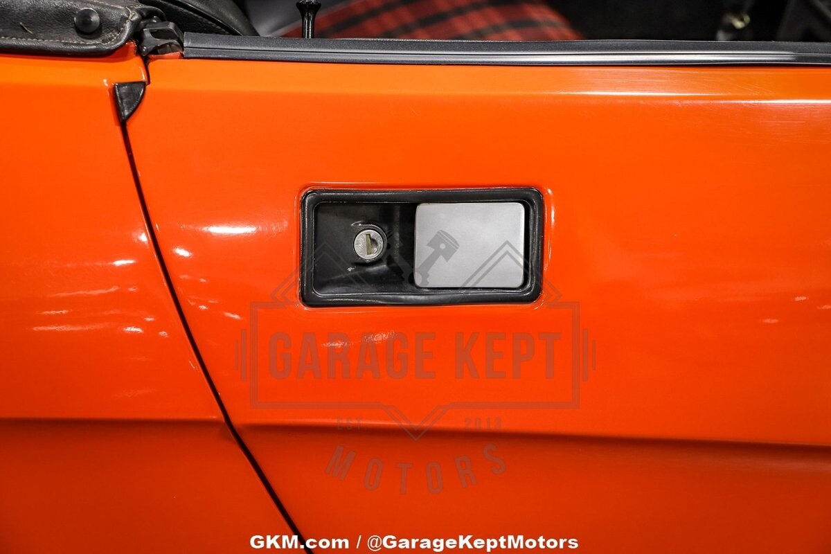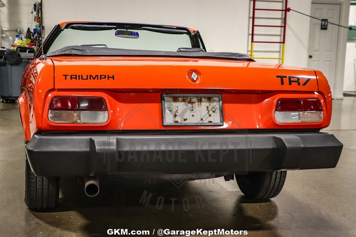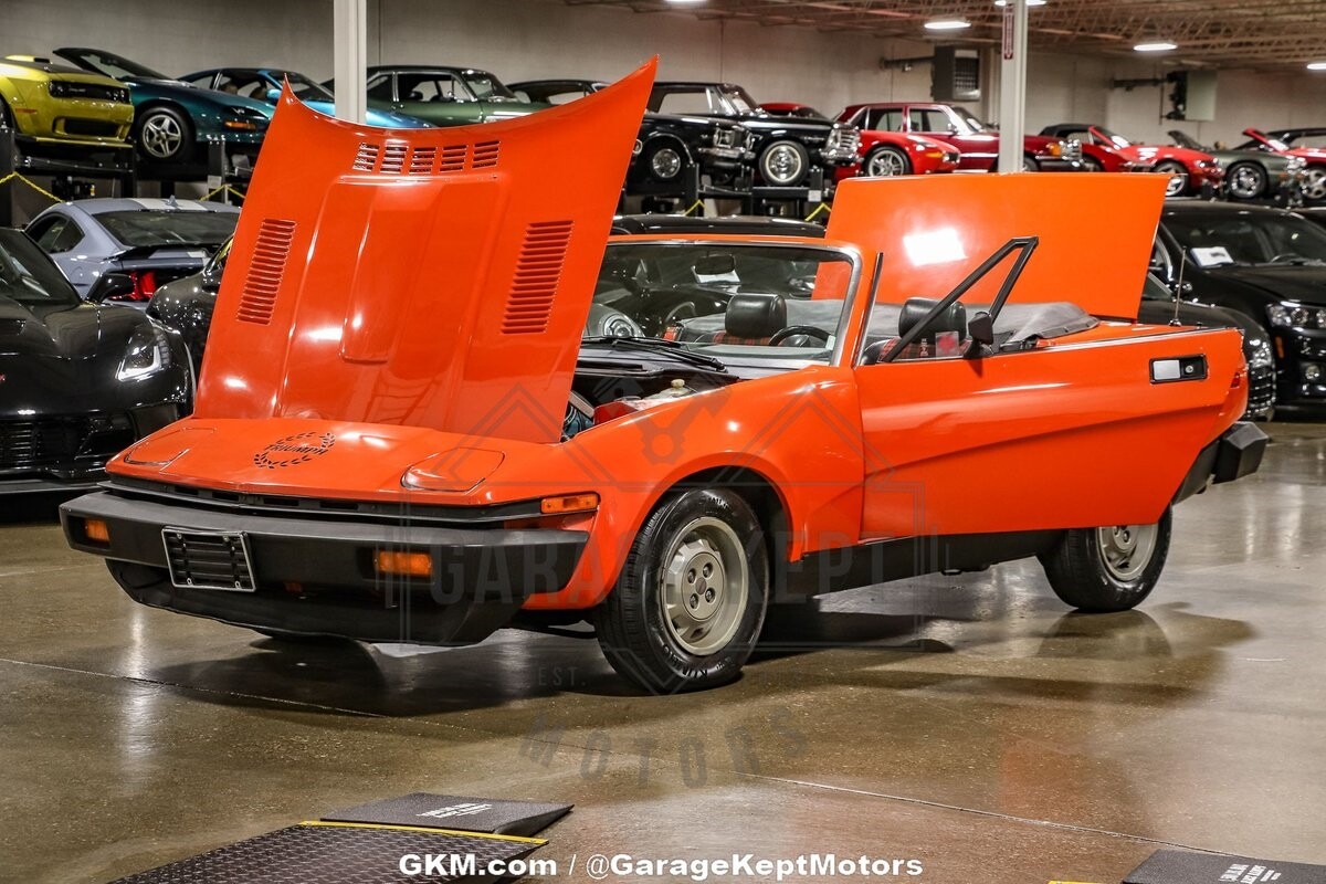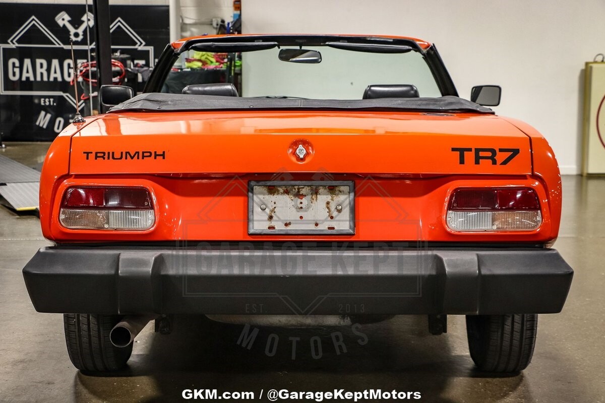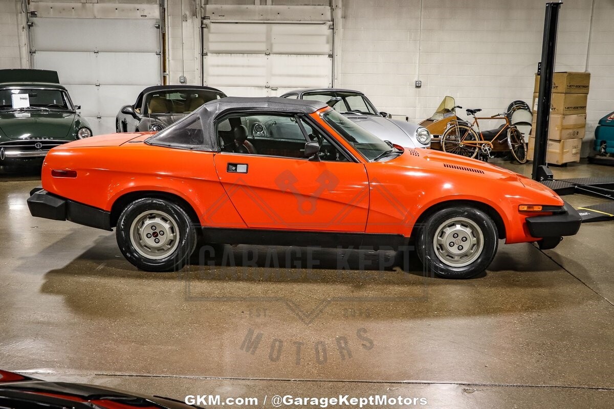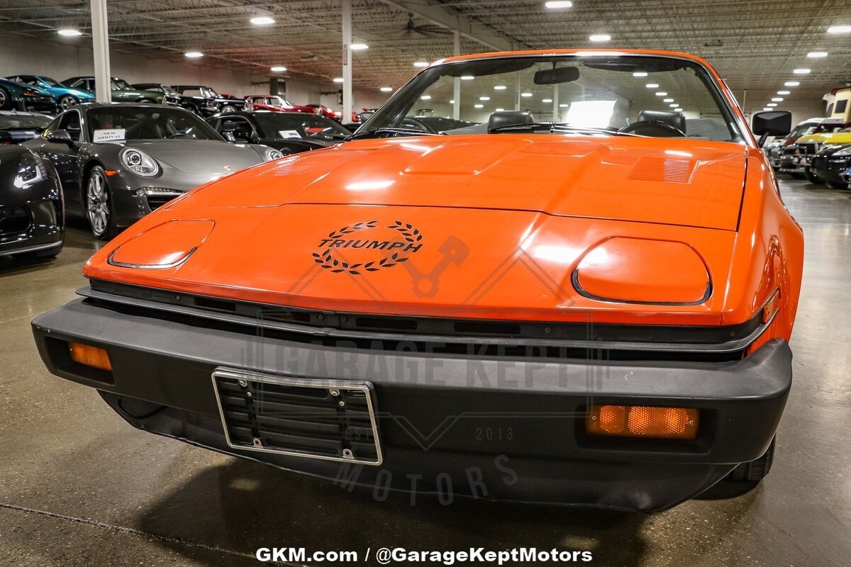 With a mere 24,000 miles on the odometer, this Triumph TR7 stands as a well-preserved testament to its era. The vibrant Orange exterior captures attention wherever it goes, radiating a sense of fun and adventure inherent in open-top motoring. Complementing the striking exterior is a sleek Black convertible top, adding an element of sophistication while offering the joy of al fresco driving when the weather permits.