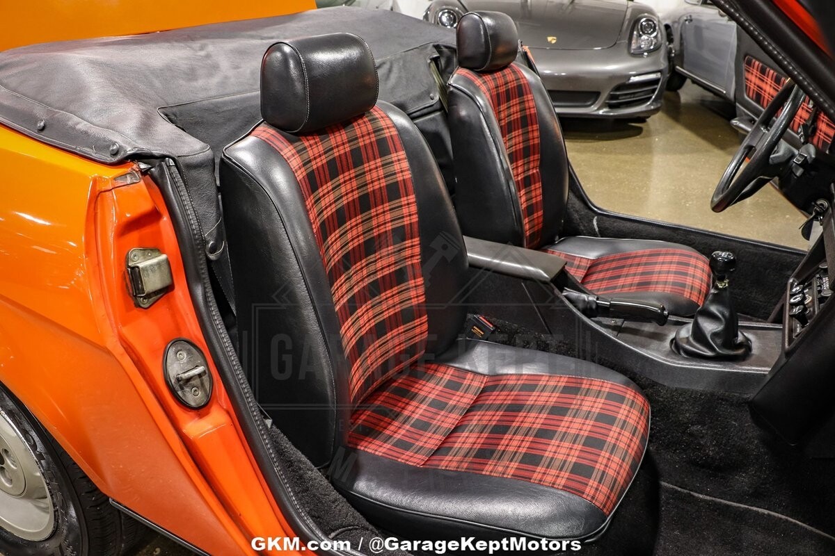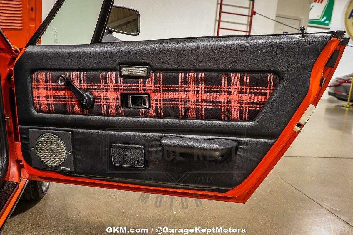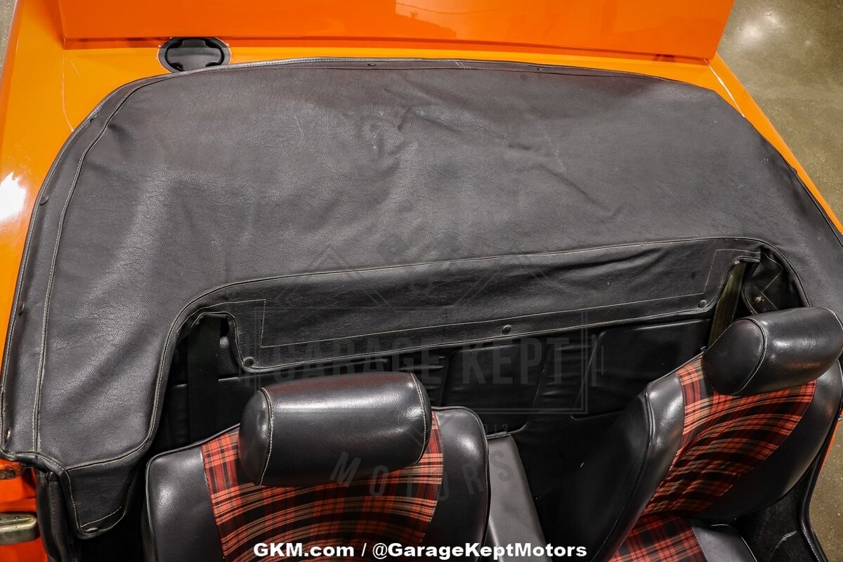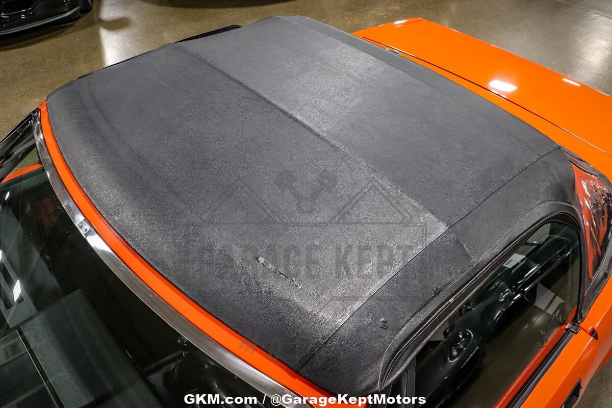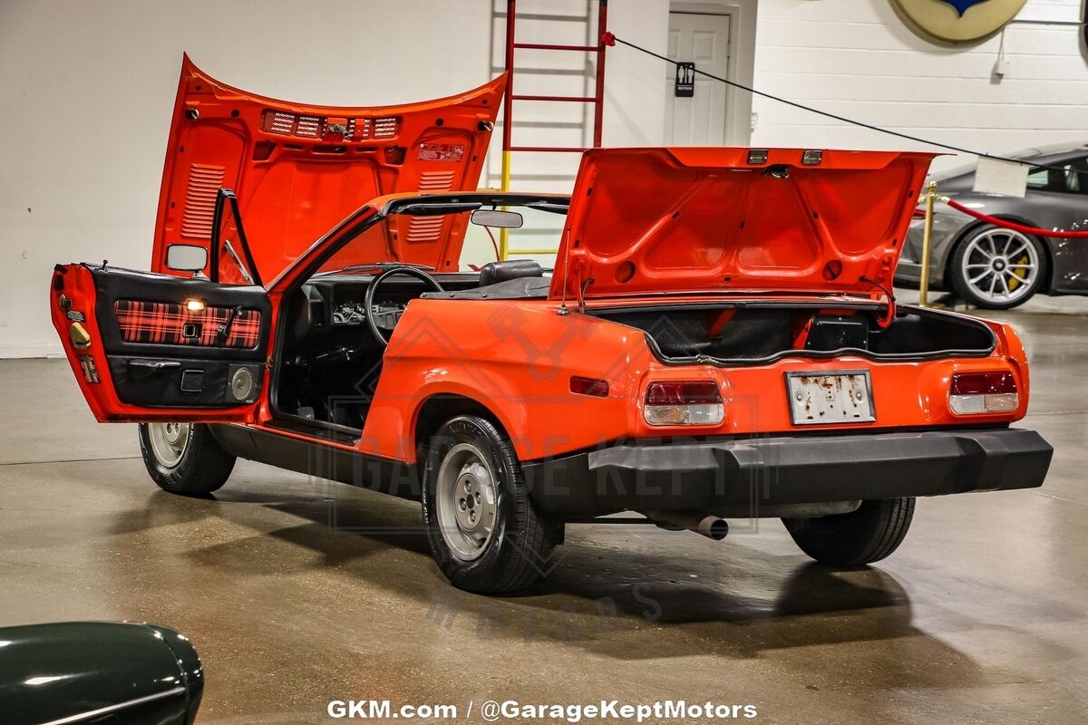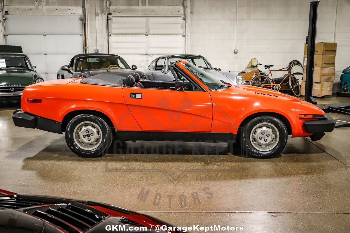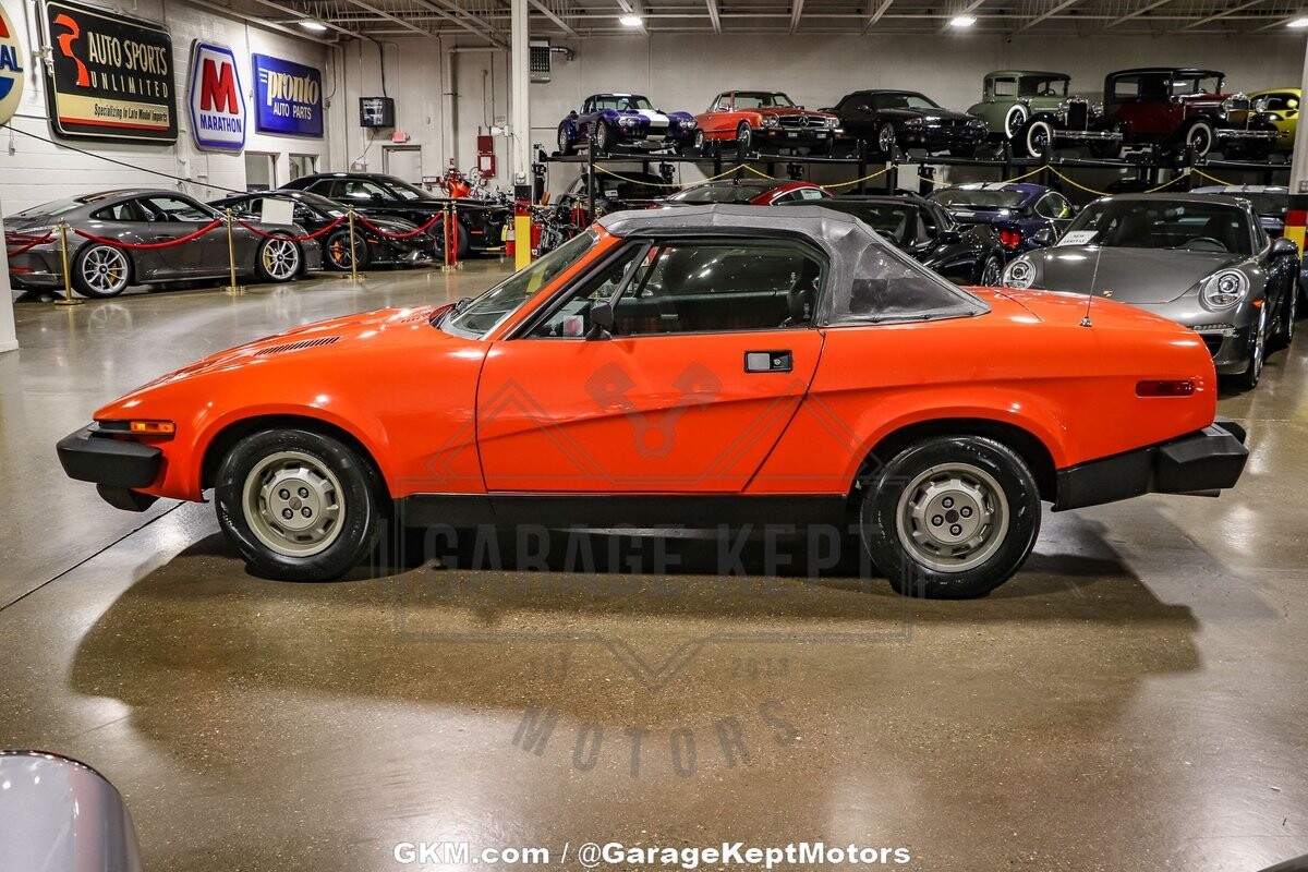 With a mere 24,000 miles on the odometer, this Triumph TR7 stands as a well-preserved testament to its era. The vibrant Orange exterior captures attention wherever it goes, radiating a sense of fun and adventure inherent in open-top motoring. Complementing the striking exterior is a sleek Black convertible top, adding an element of sophistication while offering the joy of al fresco driving when the weather permits.