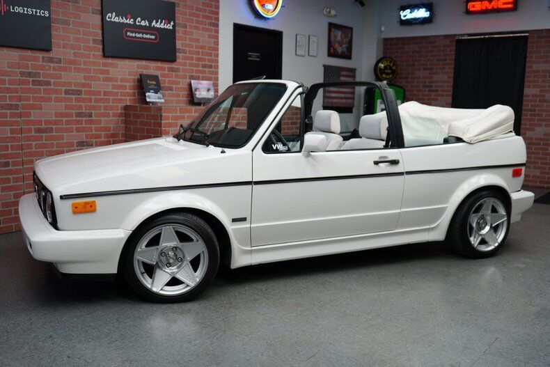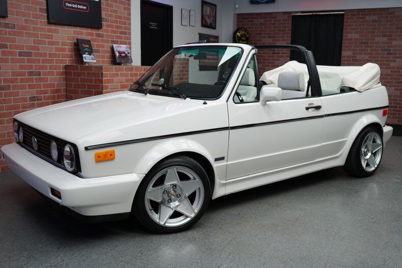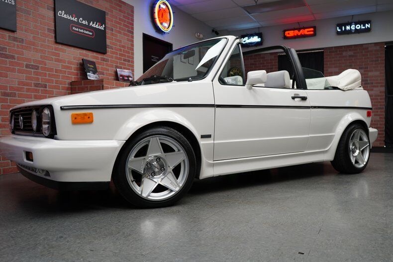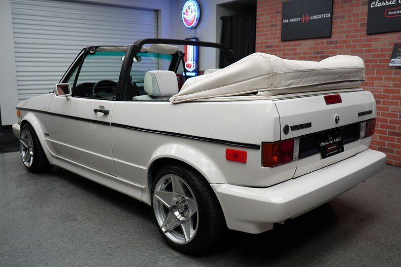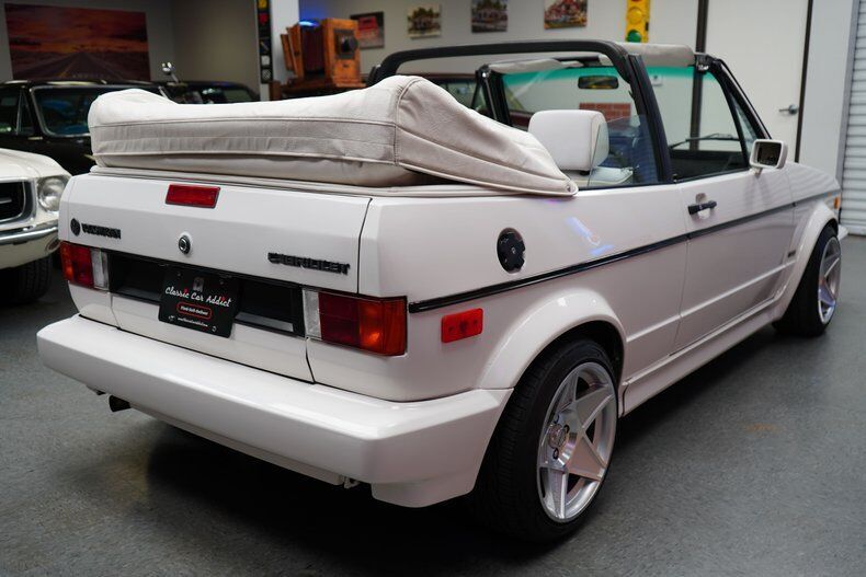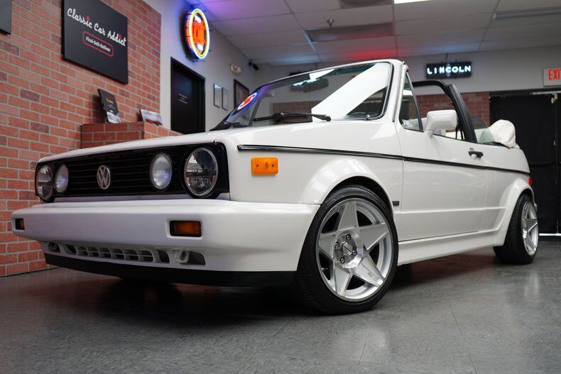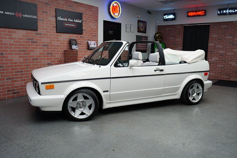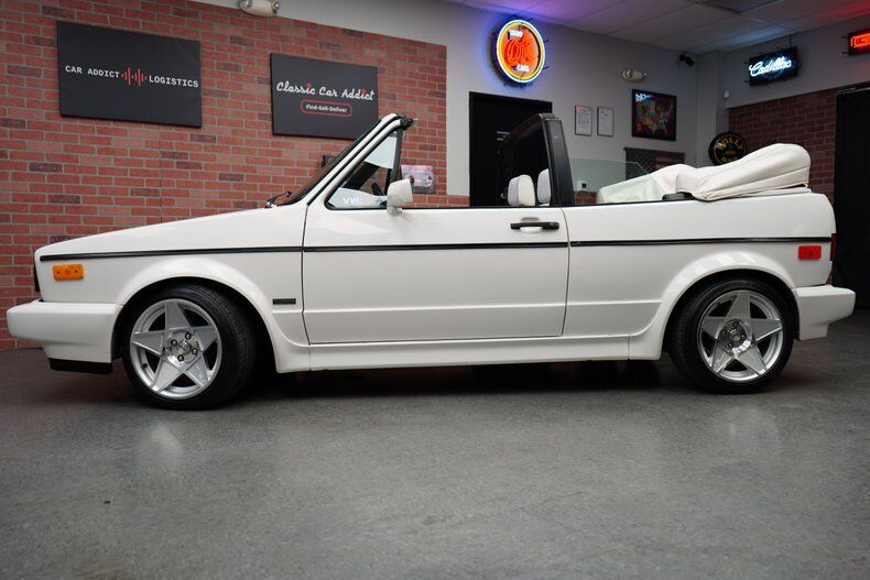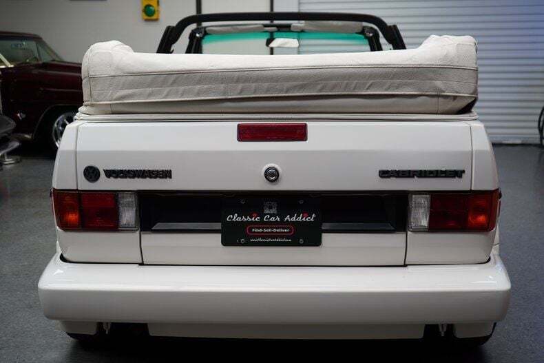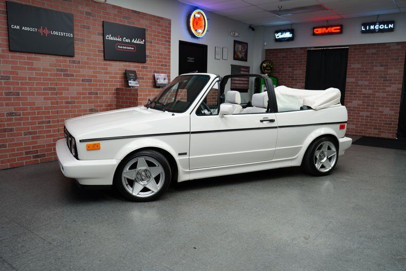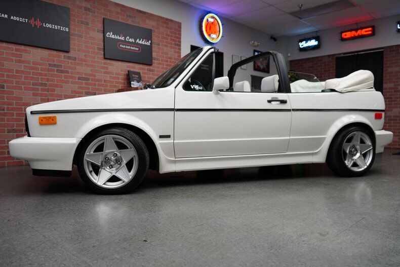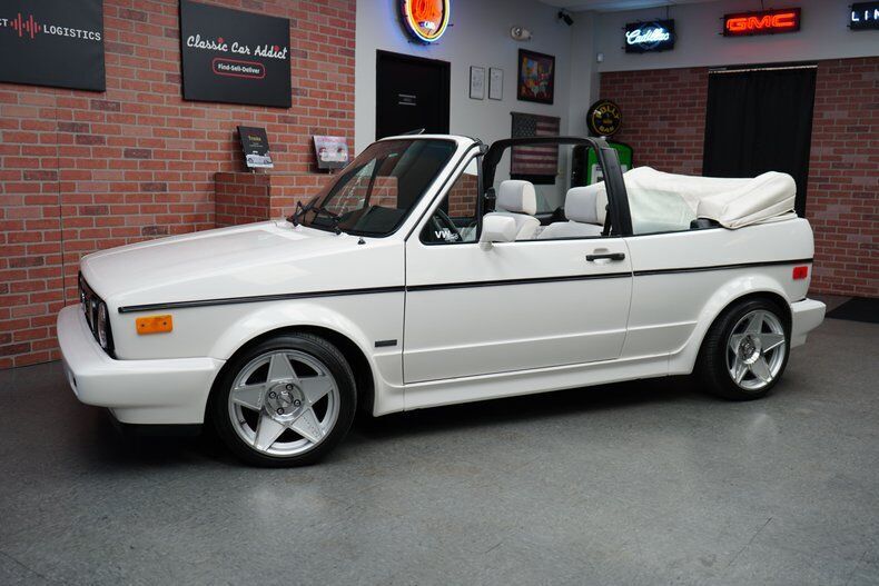 Classic Car Addict is proud to present this 1992 Volkswagen Cabriolet convertible for sale in our Mesa, Arizona showroom. The Volkswagen Golf Cabriolet is the cabriolet version of the Volkswagen Golf, introduced in 1979. The second generation was introduced in 1994, the third in 1998. The engines for the Cabriolet are almost the same as for the regular Golf. The Golf Cabriolet was discontinued in 2002 and succeeded by the Volkswagen New Beetle Cabriolet and the Volkswagen Eos. The cabin features front bucket seats and a rear bench upholstered in white cloth with patterned inserts which are accompanied by matching door panels. Amenities include front power windows, a locking glove box, and a Blaupunkt stereo. The four-spoke steering wheel frames a 120-mph speedometer and a tachometer as well as gauges for fuel level and coolant temperature. Additional auxiliary gauges are mounted in the center console. The six-digit mechanical odometer shows 168k miles (not actual), approximately 2k of which have been added under current ownership. The exterior is finished in Alpine White (L90E) and features color-matched bumper covers, side skirts, and wheel arch flares. Additional equipment includes a roll bar, Karmann badging, quad headlights, bodyside moldings, a white vinyl soft top with a heated glass rear window, and a white top cover. The car is equipped with front disc brakes, front and rear stabilizer bars, and power-assisted steering. Also, you won't have issues driving this VW at night either with the upgraded LED headlights. It rolls on Performa 20 15-inch wheels with 195/45R15 tires. Powered by a replacement 2.0-liter ABA inline-four that is mated to a five-speed manual transmission. The VW fires right up and shifts smoothly. Service in preparation for the sale is said to have included replacing the shifter bushings, transmission axle seals, and one of the front axles along with a transmission fluid change. Recent services include serpentine belt replacement, drive belts replaced, new water pump, and new water pump gasket. A/C was checked, engine checked, and shift linkage checked. Don't miss out on owning this beautiful convertible, call Classic Car Addict today at 480-256-1459. And be sure to follow us on all our socials, Facebook, Instagram, and YouTube. We welcome all buyers to have a pre-purchase inspection done as all our vehicles are sold AS IS.