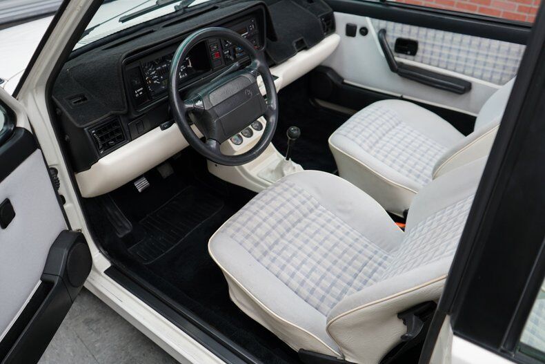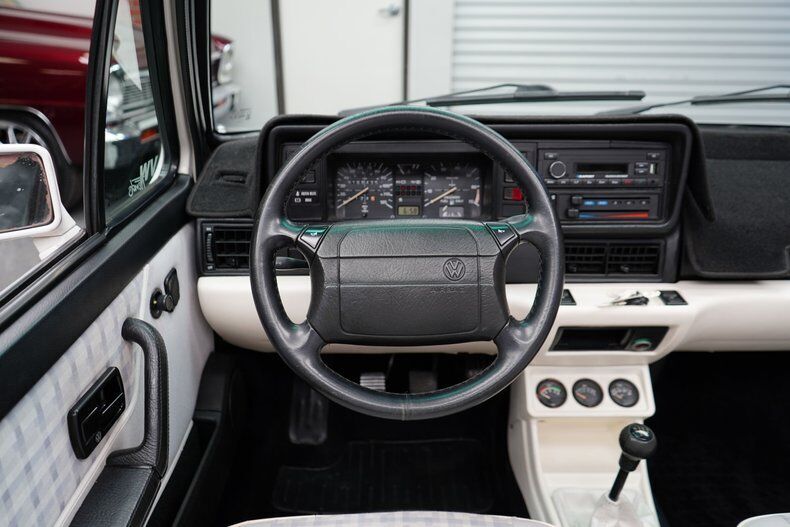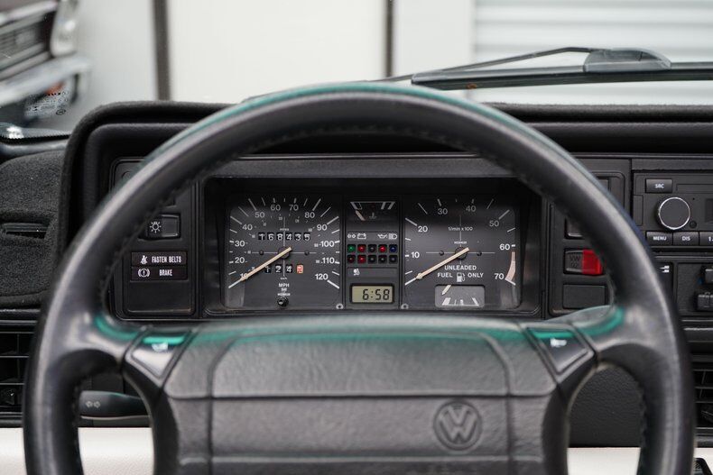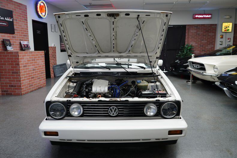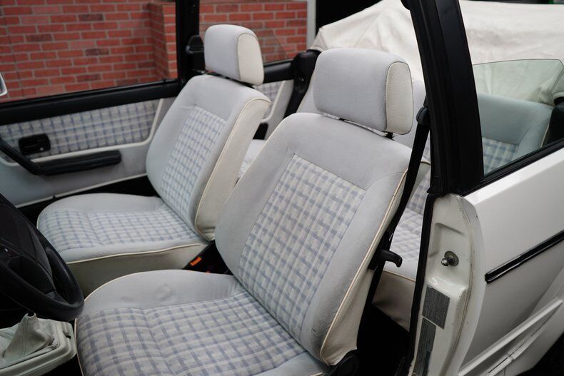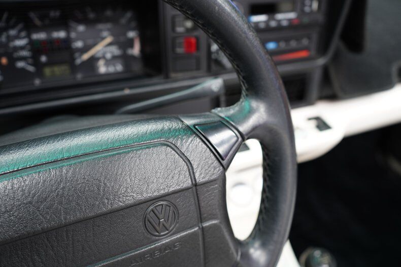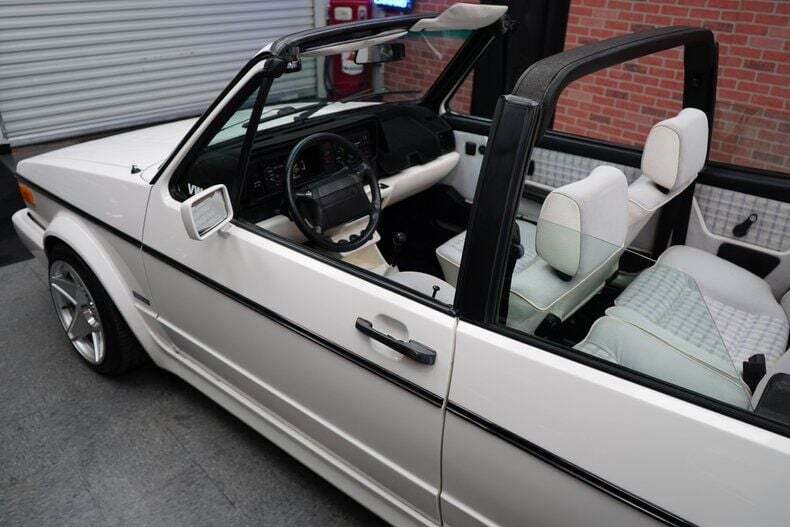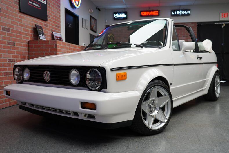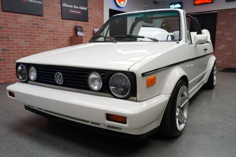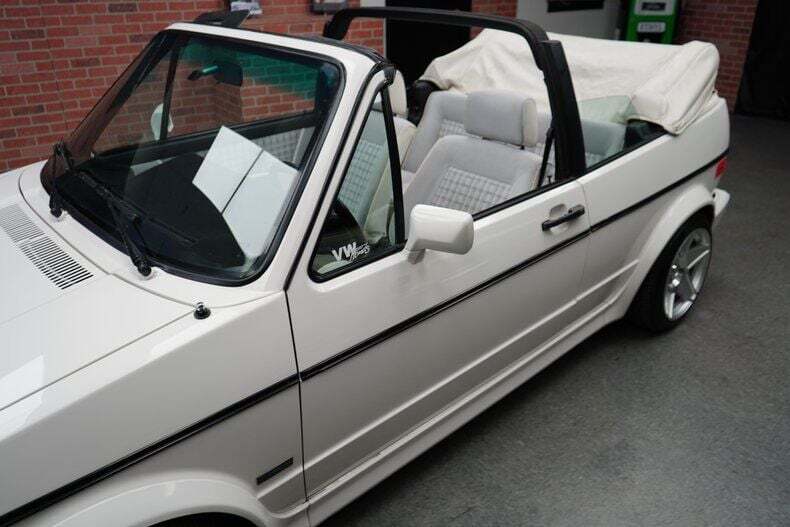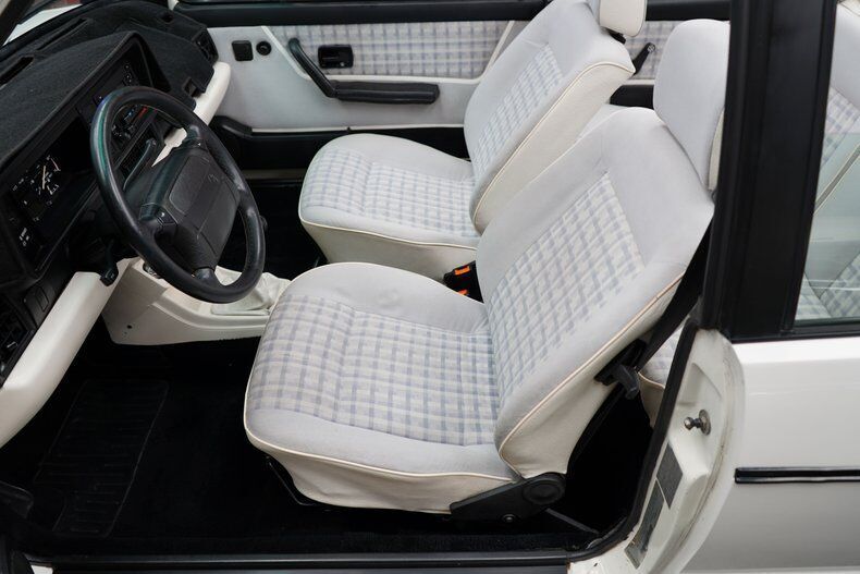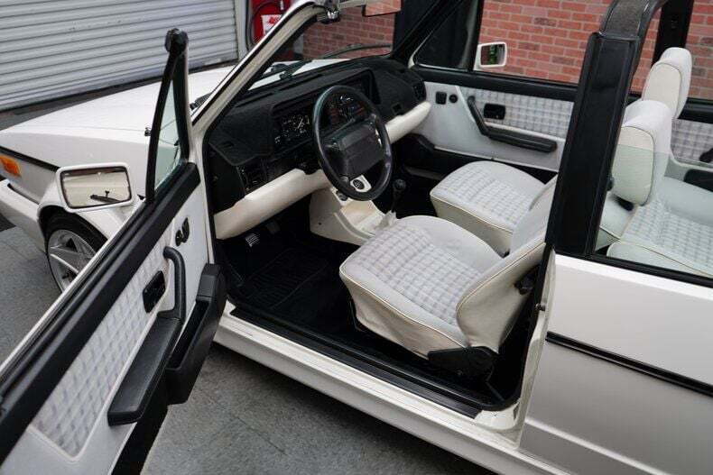 Classic Car Addict is proud to present this 1992 Volkswagen Cabriolet convertible for sale in our Mesa, Arizona showroom. The Volkswagen Golf Cabriolet is the cabriolet version of the Volkswagen Golf, introduced in 1979. The second generation was introduced in 1994, the third in 1998. The engines for the Cabriolet are almost the same as for the regular Golf. The Golf Cabriolet was discontinued in 2002 and succeeded by the Volkswagen New Beetle Cabriolet and the Volkswagen Eos. The cabin features front bucket seats and a rear bench upholstered in white cloth with patterned inserts which are accompanied by matching door panels. Amenities include front power windows, a locking glove box, and a Blaupunkt stereo. The four-spoke steering wheel frames a 120-mph speedometer and a tachometer as well as gauges for fuel level and coolant temperature. Additional auxiliary gauges are mounted in the center console. The six-digit mechanical odometer shows 168k miles (not actual), approximately 2k of which have been added under current ownership. The exterior is finished in Alpine White (L90E) and features color-matched bumper covers, side skirts, and wheel arch flares. Additional equipment includes a roll bar, Karmann badging, quad headlights, bodyside moldings, a white vinyl soft top with a heated glass rear window, and a white top cover. The car is equipped with front disc brakes, front and rear stabilizer bars, and power-assisted steering. Also, you won't have issues driving this VW at night either with the upgraded LED headlights. It rolls on Performa 20 15-inch wheels with 195/45R15 tires. Powered by a replacement 2.0-liter ABA inline-four that is mated to a five-speed manual transmission. The VW fires right up and shifts smoothly. Service in preparation for the sale is said to have included replacing the shifter bushings, transmission axle seals, and one of the front axles along with a transmission fluid change. Recent services include serpentine belt replacement, drive belts replaced, new water pump, and new water pump gasket. A/C was checked, engine checked, and shift linkage checked. Don't miss out on owning this beautiful convertible, call Classic Car Addict today at 480-256-1459. And be sure to follow us on all our socials, Facebook, Instagram, and YouTube. We welcome all buyers to have a pre-purchase inspection done as all our vehicles are sold AS IS.