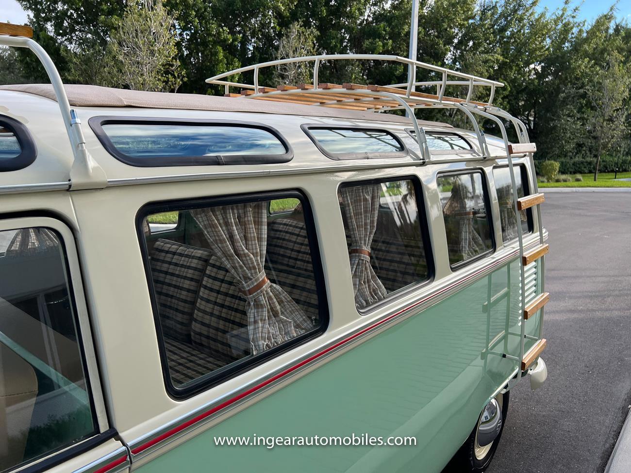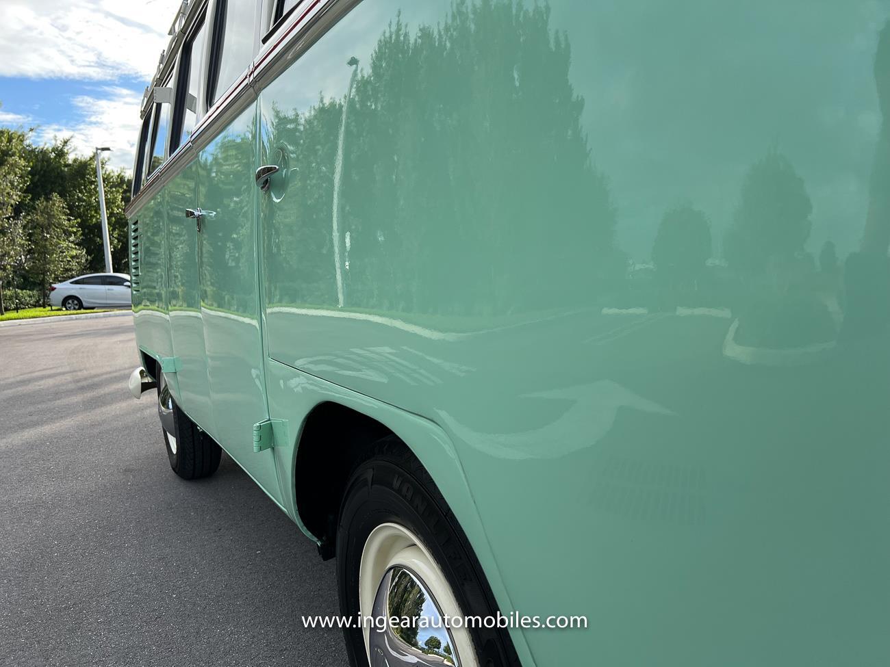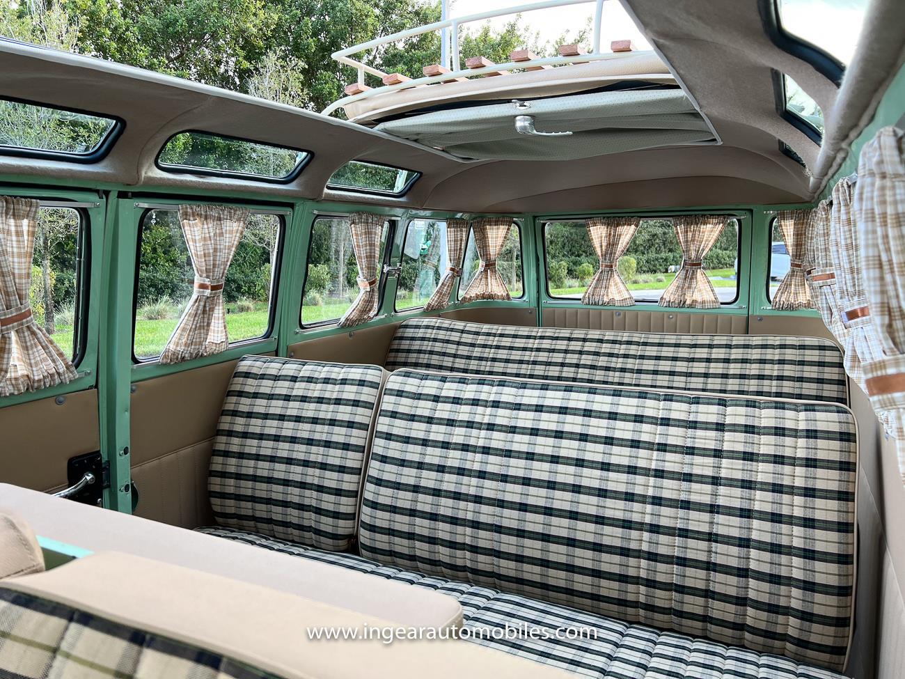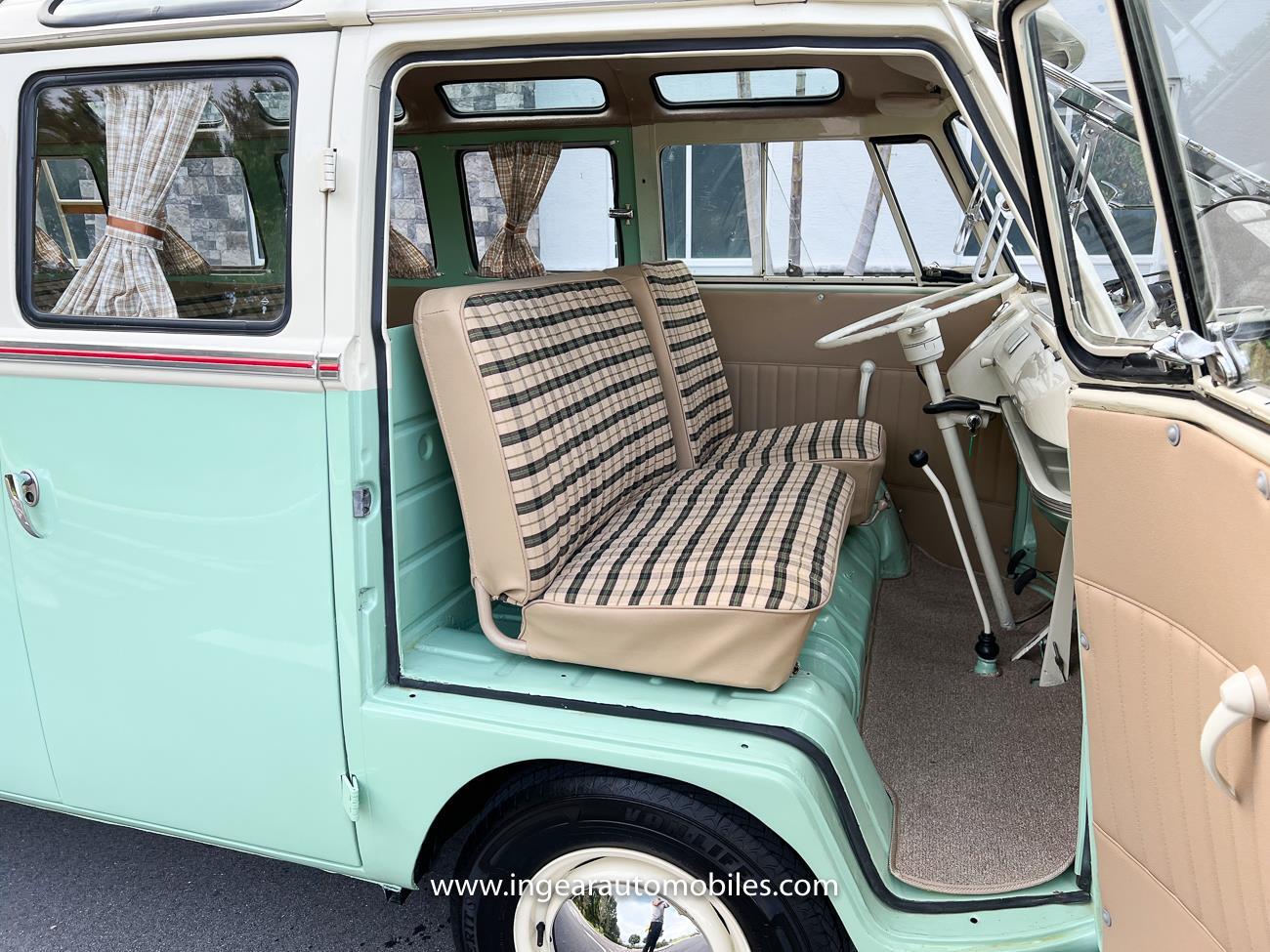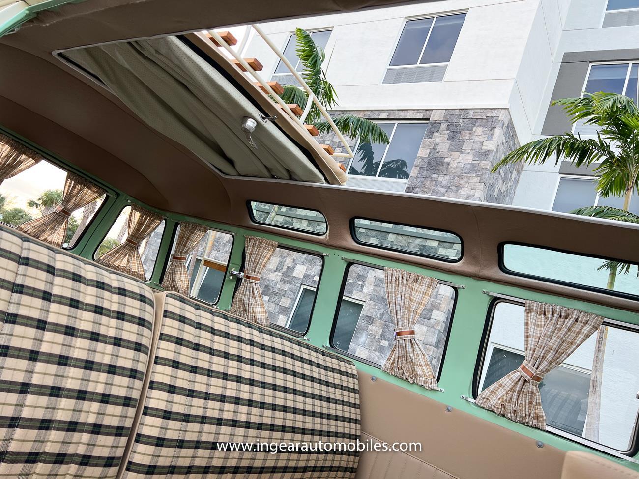 Up for sale is a really cool 1974 split window Volkswagen Bus Deluxe microbus with the 23 window conversion! Chrome Safari front pop out windows! Roof rack, Custom 23 window bus with roof glass stamped Volkswagen. A lot has been invested in this build. Get tons of attention wherever I go with it. Has full deluxe trim with full opening ragtop. Has full custom plaid interior German style. Bus was restored about 5 years ago. During that time it received all new mounts, new door seals, pop up safari windows, new chrome pieces, new windows, new weather stripping, all new lights, bumpers, emblems. The bus has a two tone Mint Green/white paint job clear finish all around, and sits on factory steel wheels. Check out my pictures so you can see all the detail that went into this VW Bus. The engine is 1500cc with a 4-speed transmission and dual carburetors! Full 12 volt upgrade! A lot of detail has been spent on the engine compartment. All new lines and gas tank. This Bus will definitely get lots of attention at the shows & question at the cars and coffee meets.