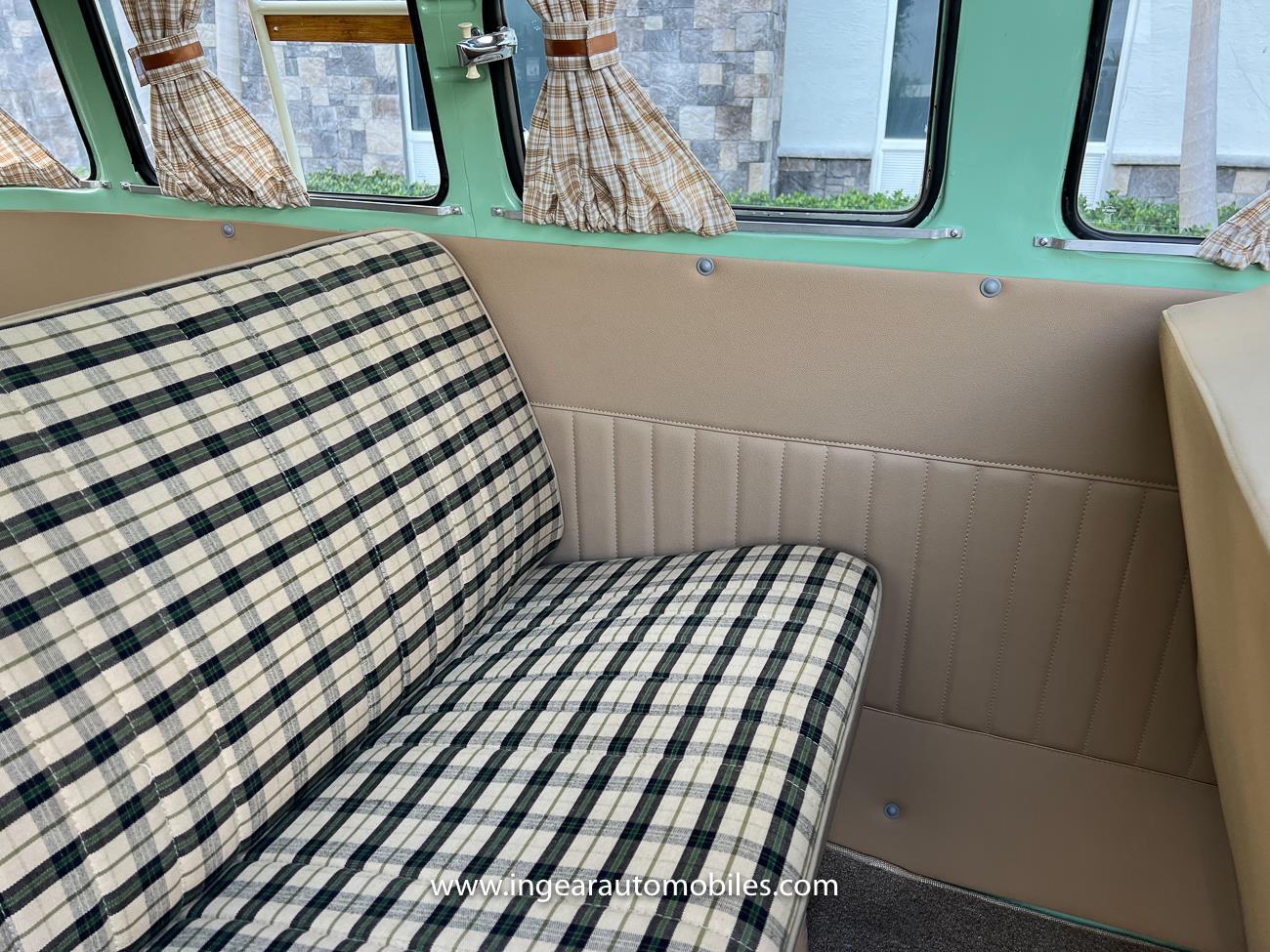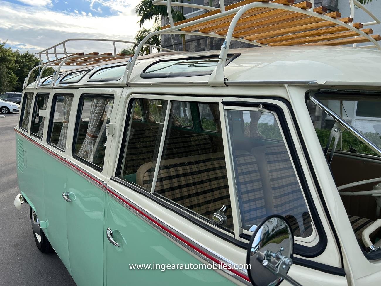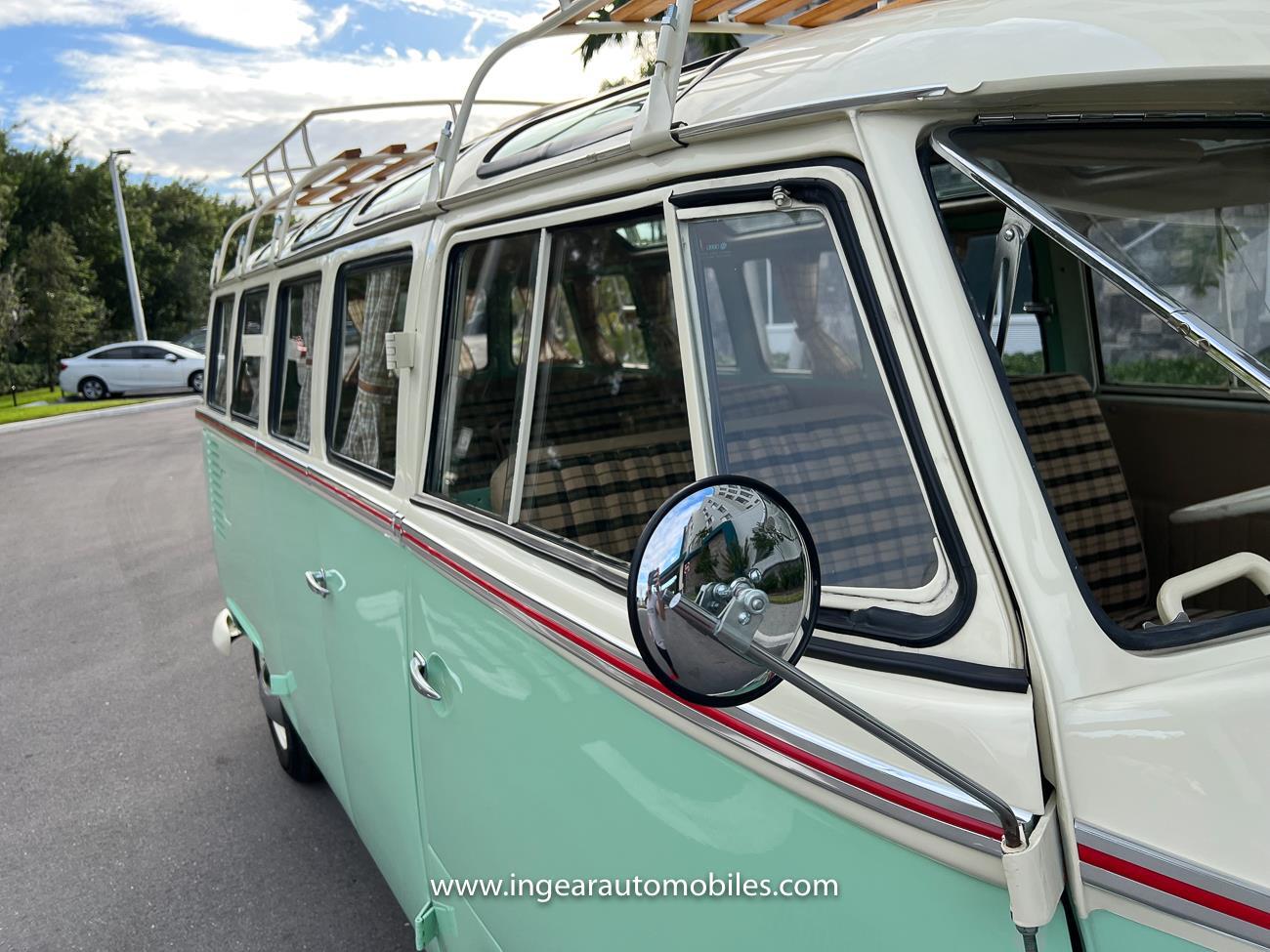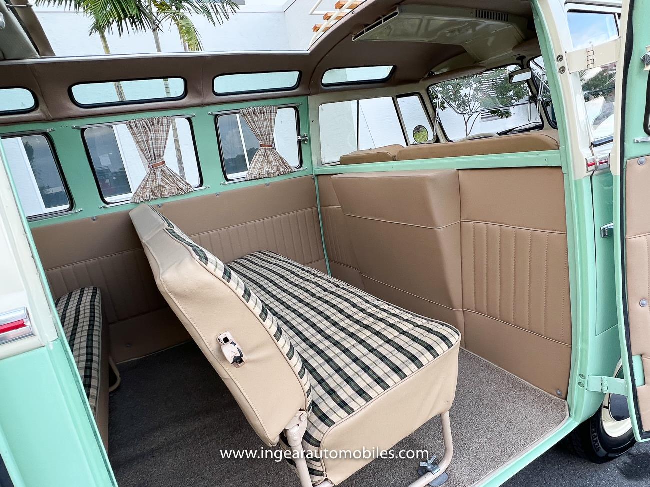 Up for sale is a really cool 1974 split window Volkswagen Bus Deluxe microbus with the 23 window conversion! Chrome Safari front pop out windows! Roof rack, Custom 23 window bus with roof glass stamped Volkswagen. A lot has been invested in this build. Get tons of attention wherever I go with it. Has full deluxe trim with full opening ragtop. Has full custom plaid interior German style. Bus was restored about 5 years ago. During that time it received all new mounts, new door seals, pop up safari windows, new chrome pieces, new windows, new weather stripping, all new lights, bumpers, emblems. The bus has a two tone Mint Green/white paint job clear finish all around, and sits on factory steel wheels. Check out my pictures so you can see all the detail that went into this VW Bus. The engine is 1500cc with a 4-speed transmission and dual carburetors! Full 12 volt upgrade! A lot of detail has been spent on the engine compartment. All new lines and gas tank. This Bus will definitely get lots of attention at the shows & question at the cars and coffee meets.