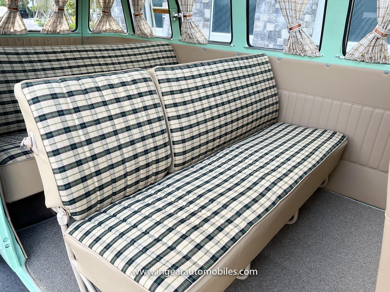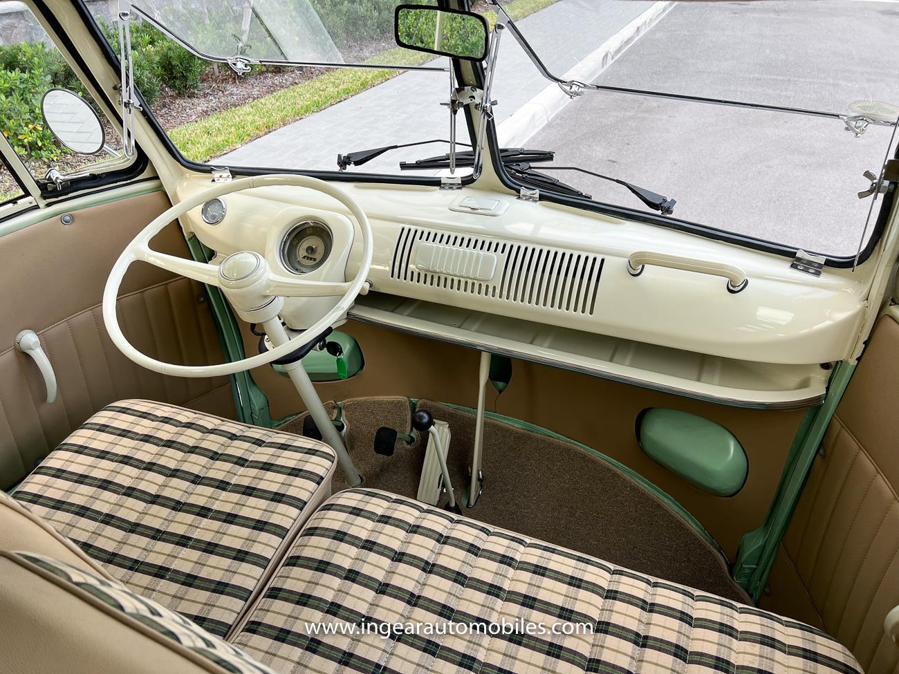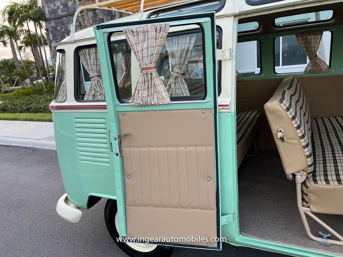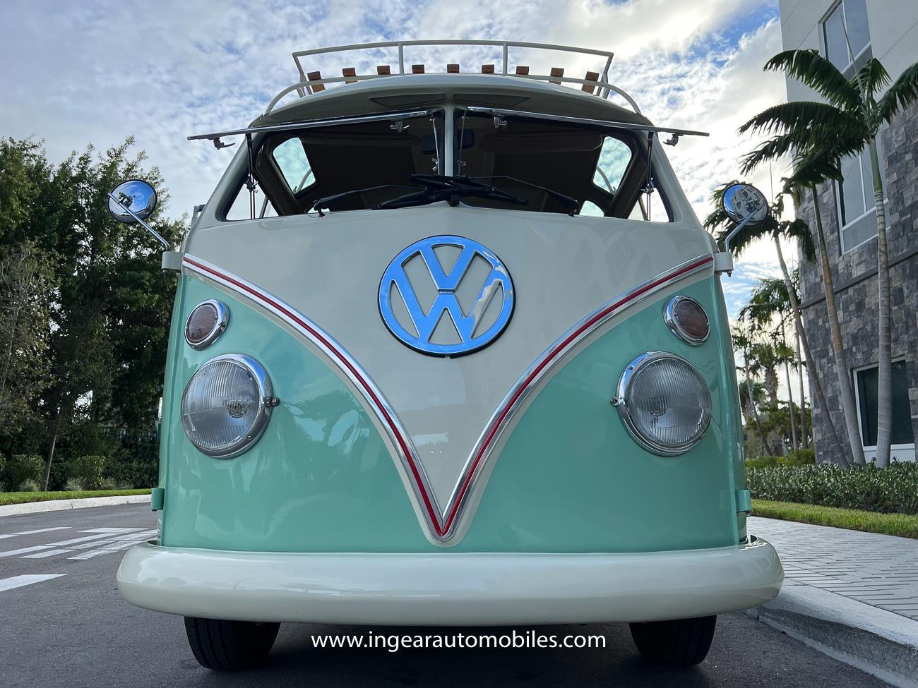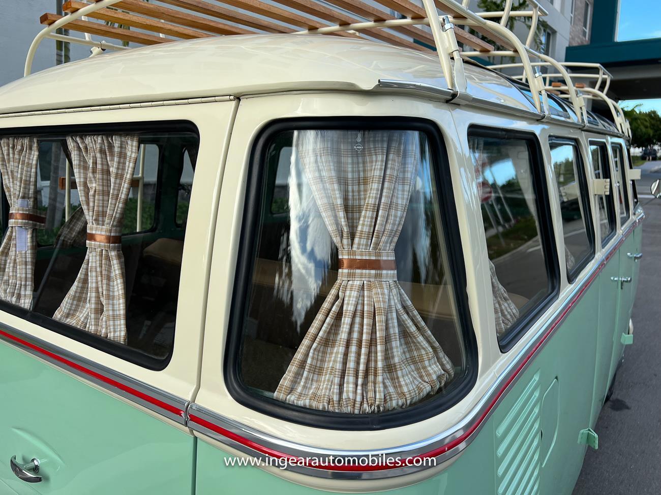 Up for sale is a really cool 1974 split window Volkswagen Bus Deluxe microbus with the 23 window conversion! Chrome Safari front pop out windows! Roof rack, Custom 23 window bus with roof glass stamped Volkswagen. A lot has been invested in this build. Get tons of attention wherever I go with it. Has full deluxe trim with full opening ragtop. Has full custom plaid interior German style. Bus was restored about 5 years ago. During that time it received all new mounts, new door seals, pop up safari windows, new chrome pieces, new windows, new weather stripping, all new lights, bumpers, emblems. The bus has a two tone Mint Green/white paint job clear finish all around, and sits on factory steel wheels. Check out my pictures so you can see all the detail that went into this VW Bus. The engine is 1500cc with a 4-speed transmission and dual carburetors! Full 12 volt upgrade! A lot of detail has been spent on the engine compartment. All new lines and gas tank. This Bus will definitely get lots of attention at the shows & question at the cars and coffee meets.