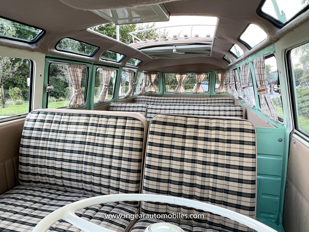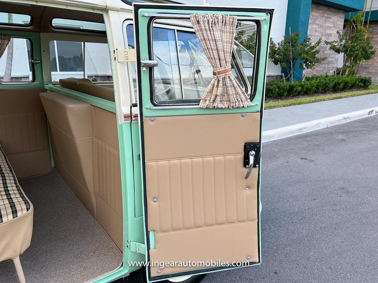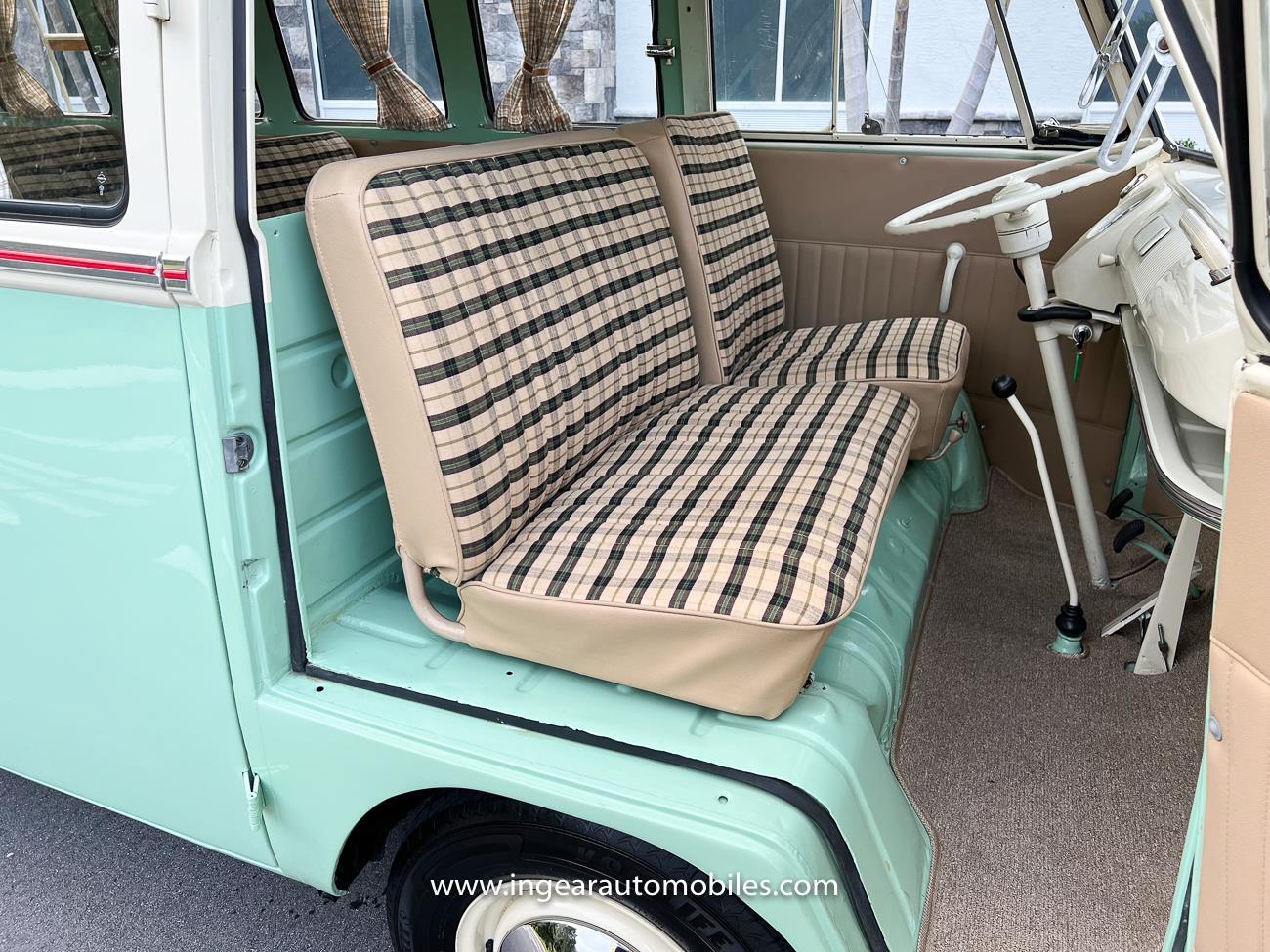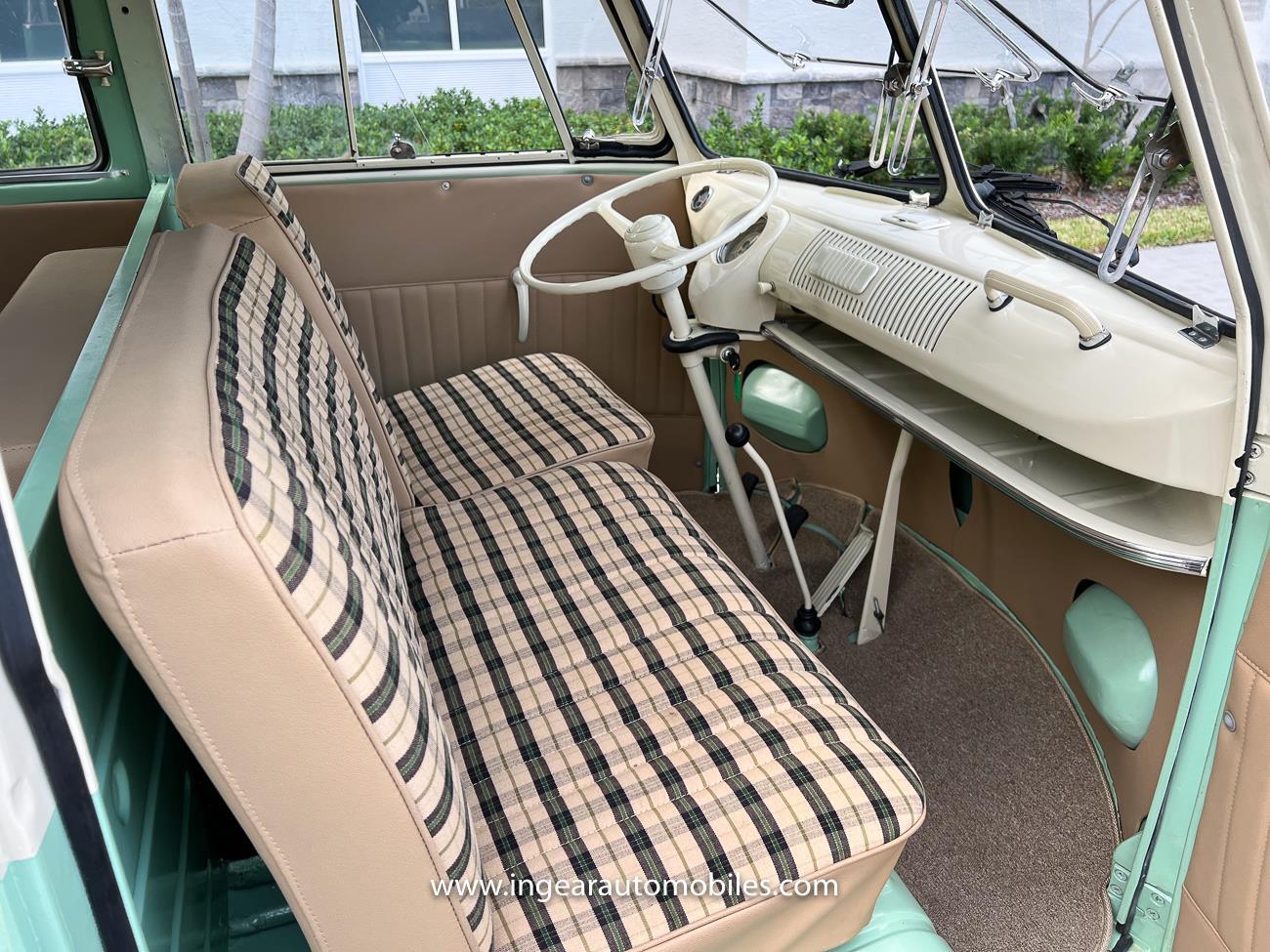 Up for sale is a really cool 1974 split window Volkswagen Bus Deluxe microbus with the 23 window conversion! Chrome Safari front pop out windows! Roof rack, Custom 23 window bus with roof glass stamped Volkswagen. A lot has been invested in this build. Get tons of attention wherever I go with it. Has full deluxe trim with full opening ragtop. Has full custom plaid interior German style. Bus was restored about 5 years ago. During that time it received all new mounts, new door seals, pop up safari windows, new chrome pieces, new windows, new weather stripping, all new lights, bumpers, emblems. The bus has a two tone Mint Green/white paint job clear finish all around, and sits on factory steel wheels. Check out my pictures so you can see all the detail that went into this VW Bus. The engine is 1500cc with a 4-speed transmission and dual carburetors! Full 12 volt upgrade! A lot of detail has been spent on the engine compartment. All new lines and gas tank. This Bus will definitely get lots of attention at the shows & question at the cars and coffee meets.