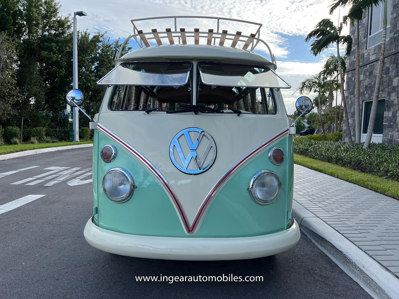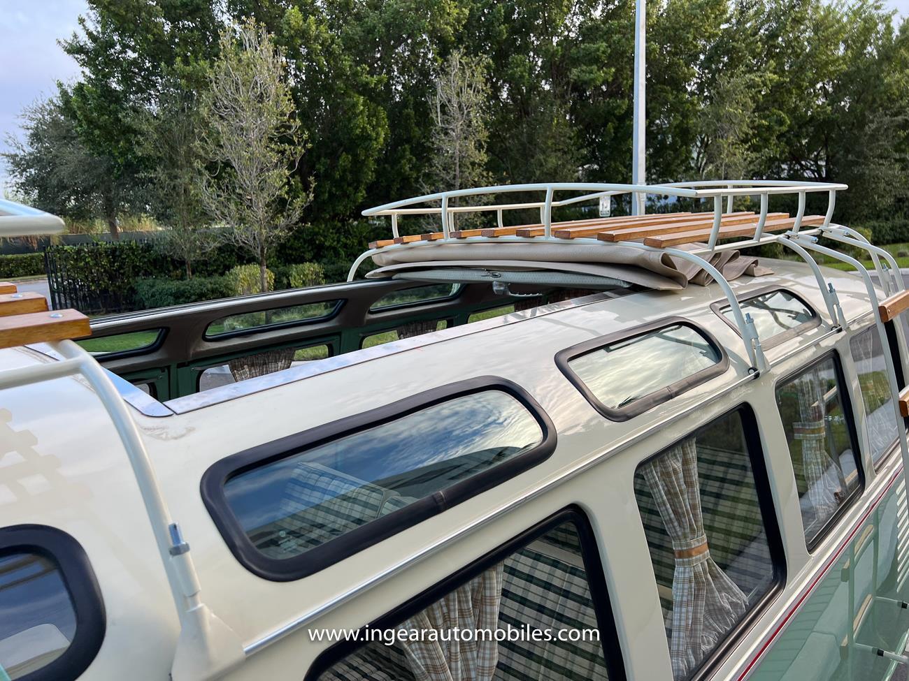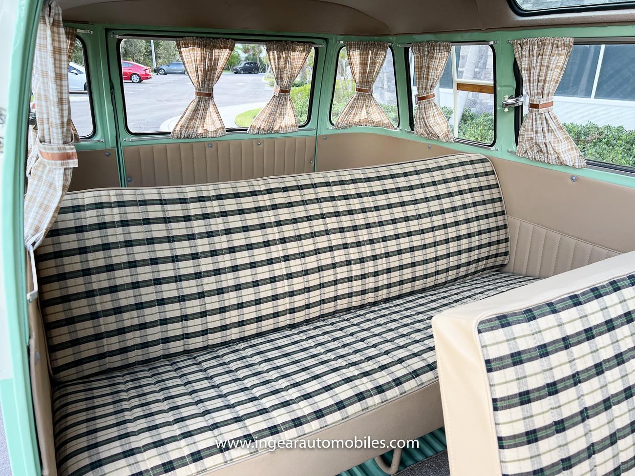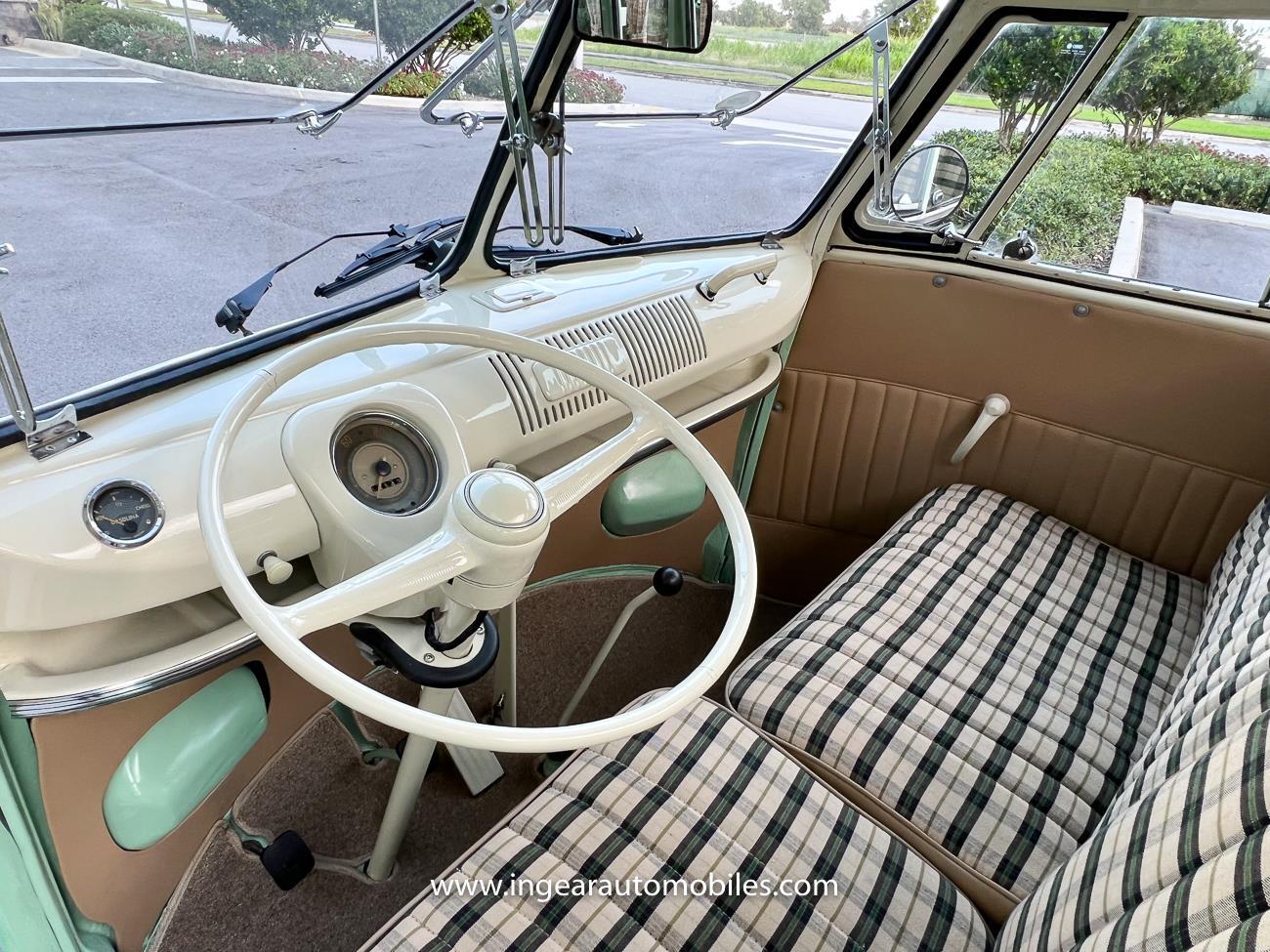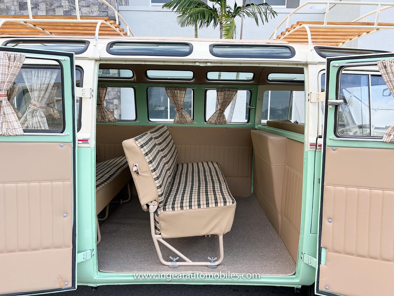 Up for sale is a really cool 1974 split window Volkswagen Bus Deluxe microbus with the 23 window conversion! Chrome Safari front pop out windows! Roof rack, Custom 23 window bus with roof glass stamped Volkswagen. A lot has been invested in this build. Get tons of attention wherever I go with it. Has full deluxe trim with full opening ragtop. Has full custom plaid interior German style. Bus was restored about 5 years ago. During that time it received all new mounts, new door seals, pop up safari windows, new chrome pieces, new windows, new weather stripping, all new lights, bumpers, emblems. The bus has a two tone Mint Green/white paint job clear finish all around, and sits on factory steel wheels. Check out my pictures so you can see all the detail that went into this VW Bus. The engine is 1500cc with a 4-speed transmission and dual carburetors! Full 12 volt upgrade! A lot of detail has been spent on the engine compartment. All new lines and gas tank. This Bus will definitely get lots of attention at the shows & question at the cars and coffee meets.