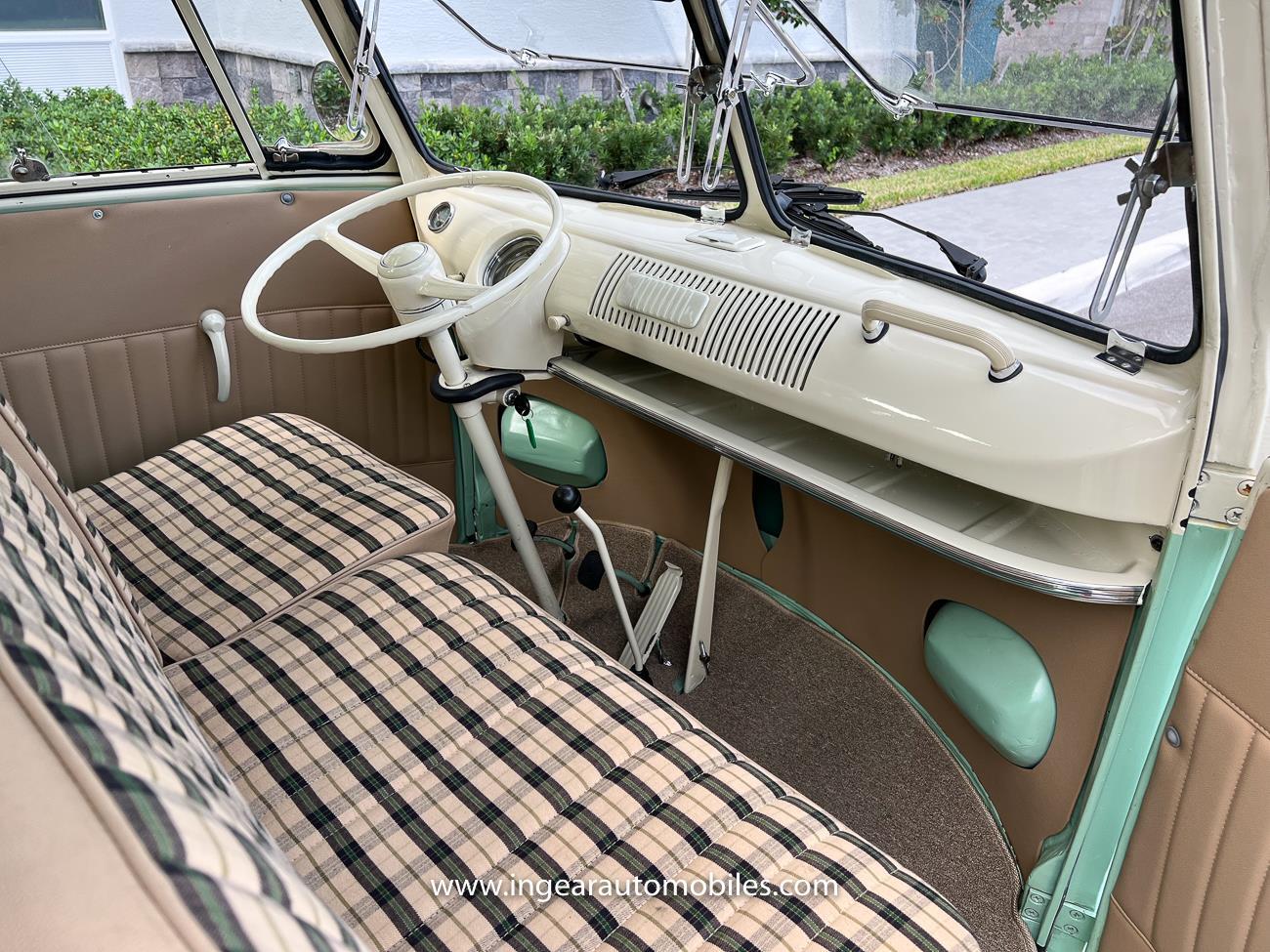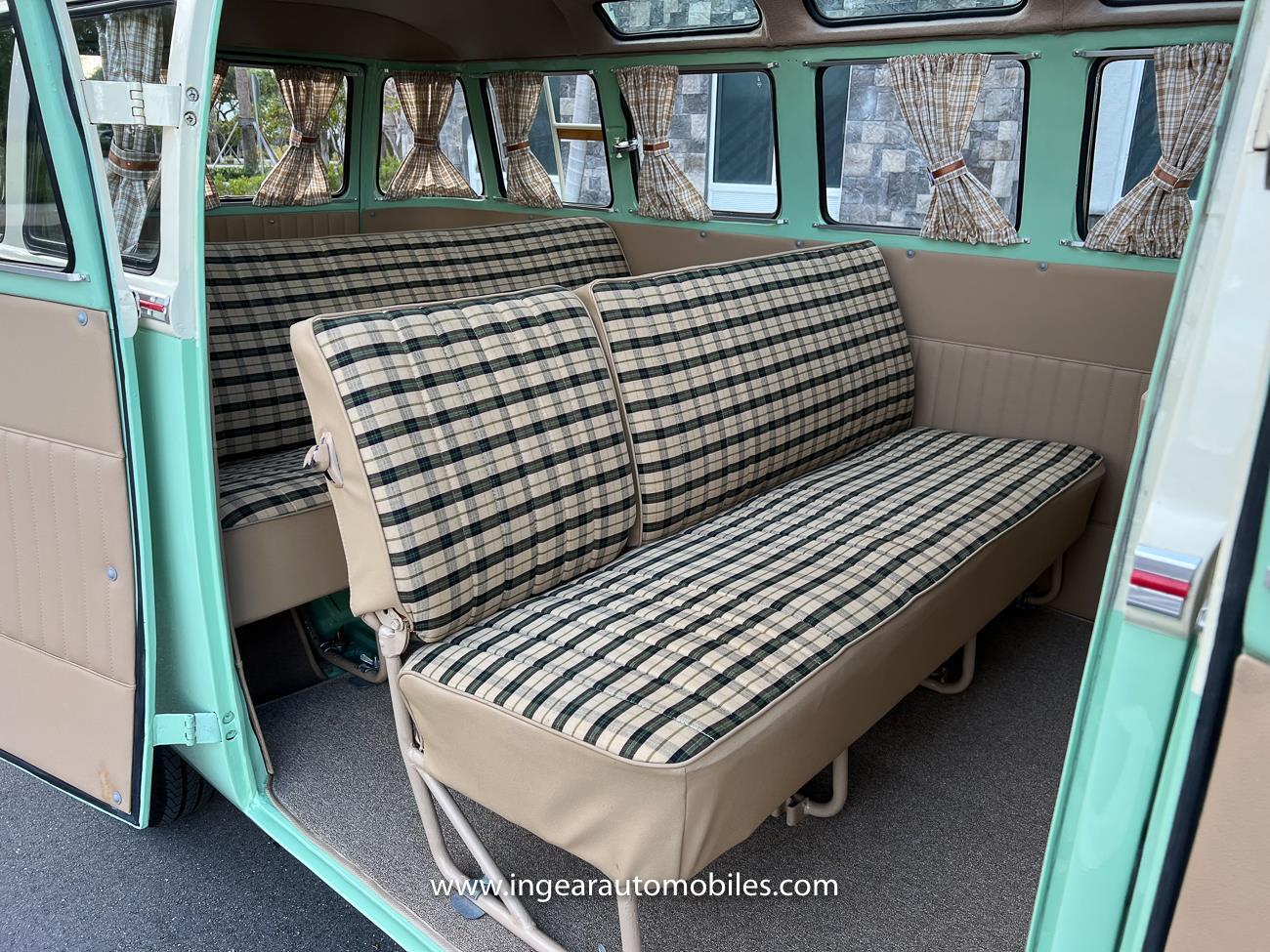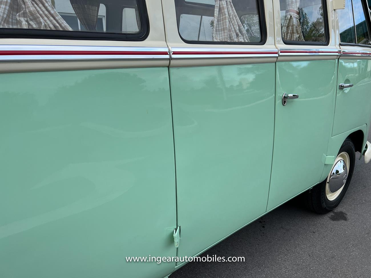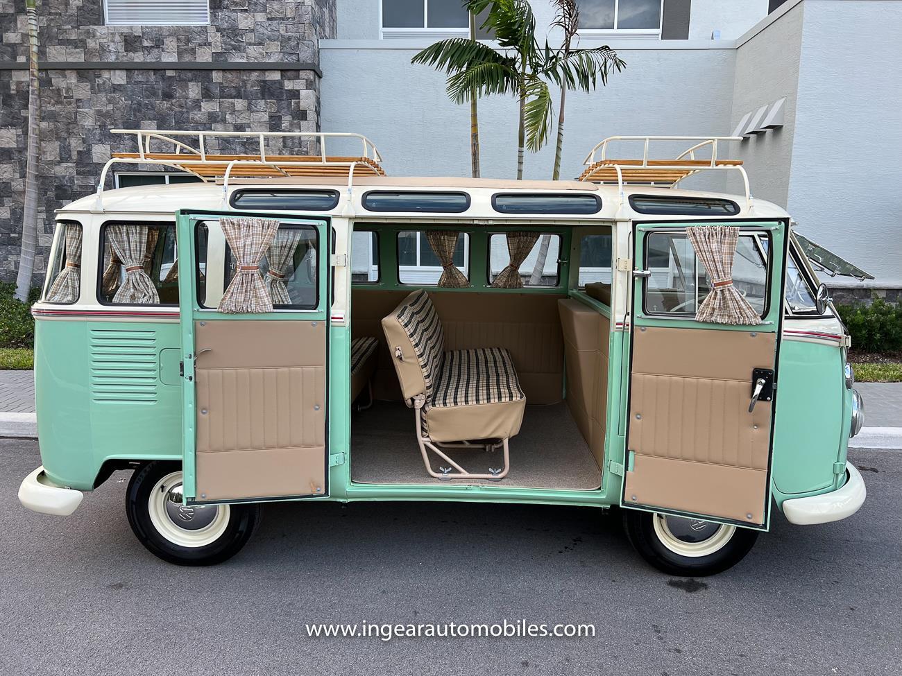 Up for sale is a really cool 1974 split window Volkswagen Bus Deluxe microbus with the 23 window conversion! Chrome Safari front pop out windows! Roof rack, Custom 23 window bus with roof glass stamped Volkswagen. A lot has been invested in this build. Get tons of attention wherever I go with it. Has full deluxe trim with full opening ragtop. Has full custom plaid interior German style. Bus was restored about 5 years ago. During that time it received all new mounts, new door seals, pop up safari windows, new chrome pieces, new windows, new weather stripping, all new lights, bumpers, emblems. The bus has a two tone Mint Green/white paint job clear finish all around, and sits on factory steel wheels. Check out my pictures so you can see all the detail that went into this VW Bus. The engine is 1500cc with a 4-speed transmission and dual carburetors! Full 12 volt upgrade! A lot of detail has been spent on the engine compartment. All new lines and gas tank. This Bus will definitely get lots of attention at the shows & question at the cars and coffee meets.