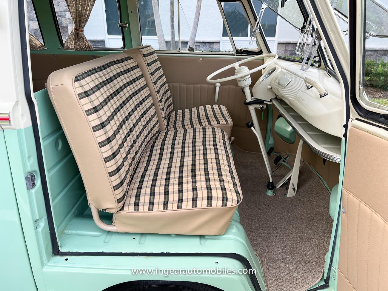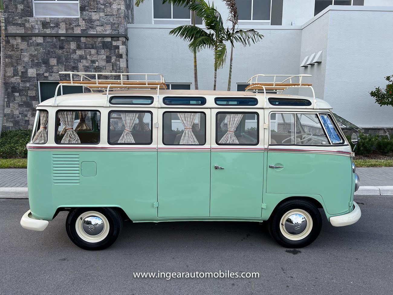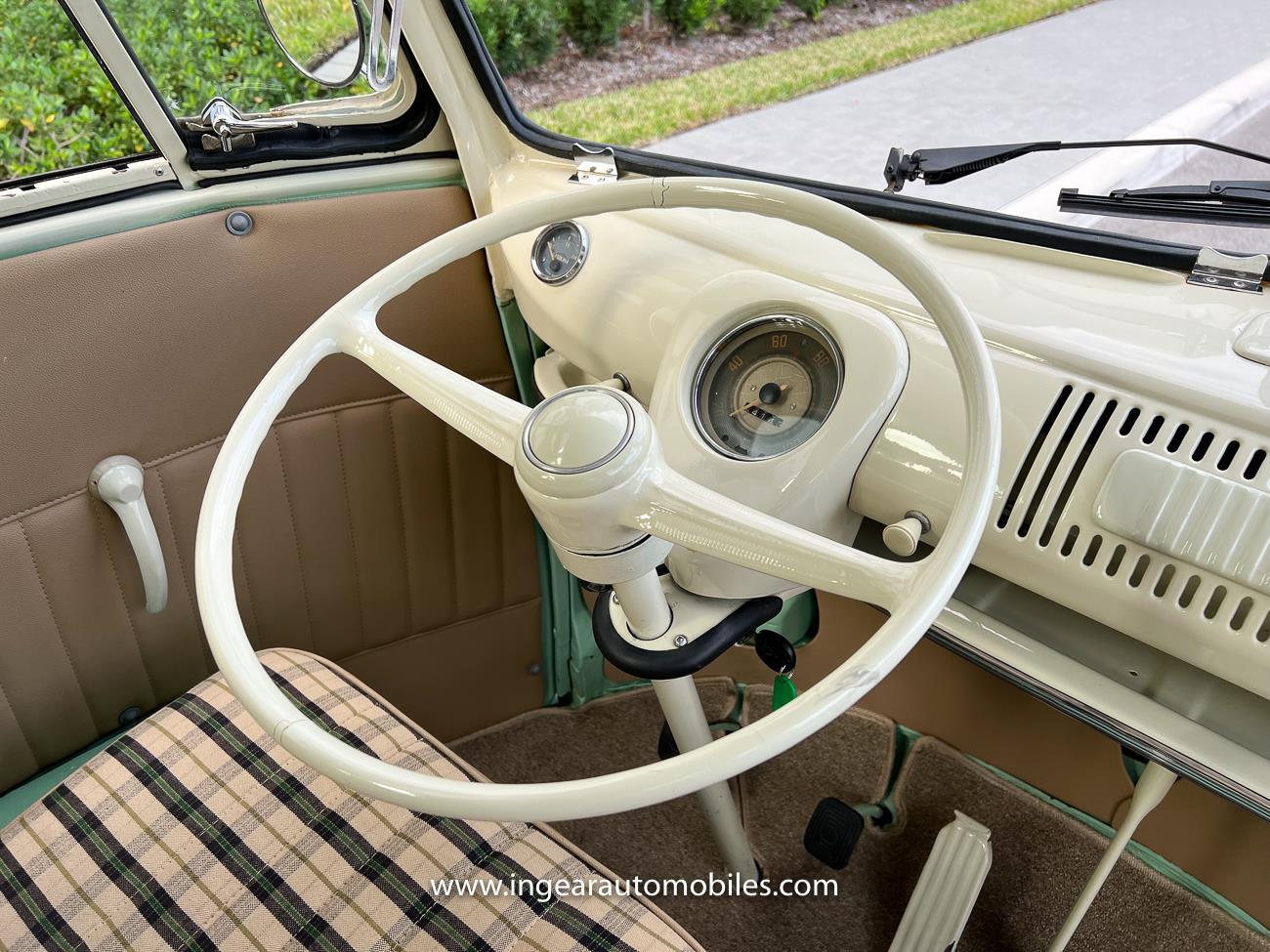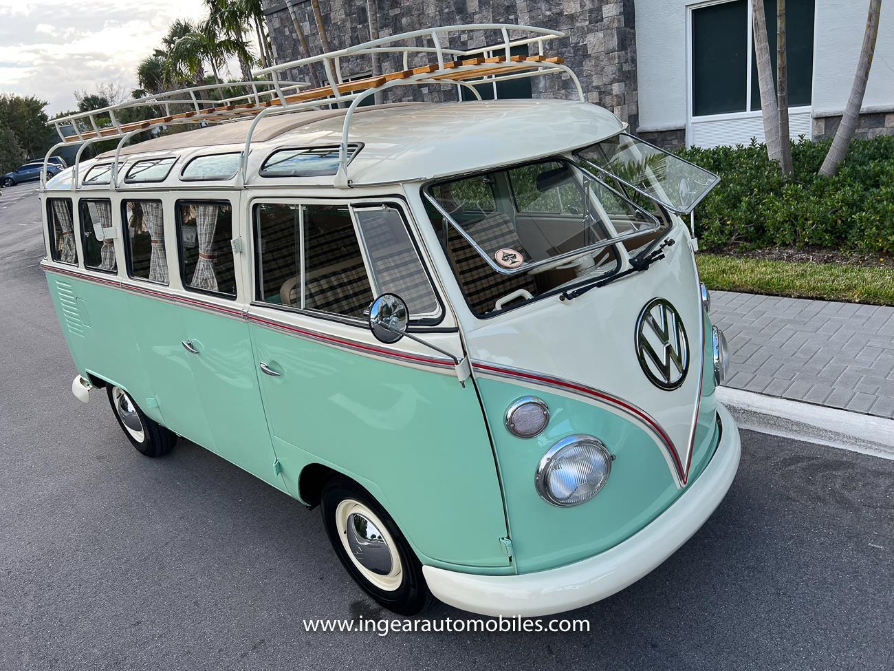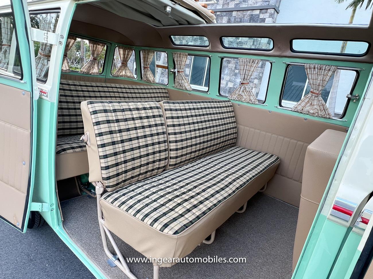 Up for sale is a really cool 1974 split window Volkswagen Bus Deluxe microbus with the 23 window conversion! Chrome Safari front pop out windows! Roof rack, Custom 23 window bus with roof glass stamped Volkswagen. A lot has been invested in this build. Get tons of attention wherever I go with it. Has full deluxe trim with full opening ragtop. Has full custom plaid interior German style. Bus was restored about 5 years ago. During that time it received all new mounts, new door seals, pop up safari windows, new chrome pieces, new windows, new weather stripping, all new lights, bumpers, emblems. The bus has a two tone Mint Green/white paint job clear finish all around, and sits on factory steel wheels. Check out my pictures so you can see all the detail that went into this VW Bus. The engine is 1500cc with a 4-speed transmission and dual carburetors! Full 12 volt upgrade! A lot of detail has been spent on the engine compartment. All new lines and gas tank. This Bus will definitely get lots of attention at the shows & question at the cars and coffee meets.