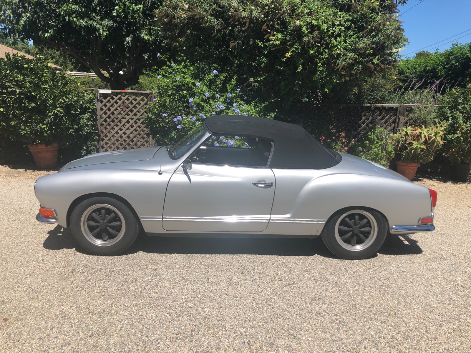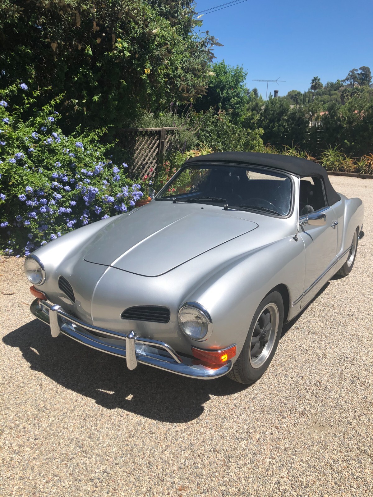 Vintage 1971 Karmann Ghia for Sale. Beautiful Silver Paint Job with custom interior. Engine has recently been professionally rebuilt (Bored to 1766cc) and has a Freeway Flyer 4 speed transaxle. Also has twin Weber carburetors, new clutch, rebuilt front end suspension along with sound deadening insulation installed under the carpets and inside doors. Sports custom mag wheels and heavy duty car cover. 01879 on new engine. Currently licensed in California State with clean title. VIN: 1412620194. Call James at (805) 231-2725 or Don at (805) 231-8181. Located in Newbury Park, CA 91320