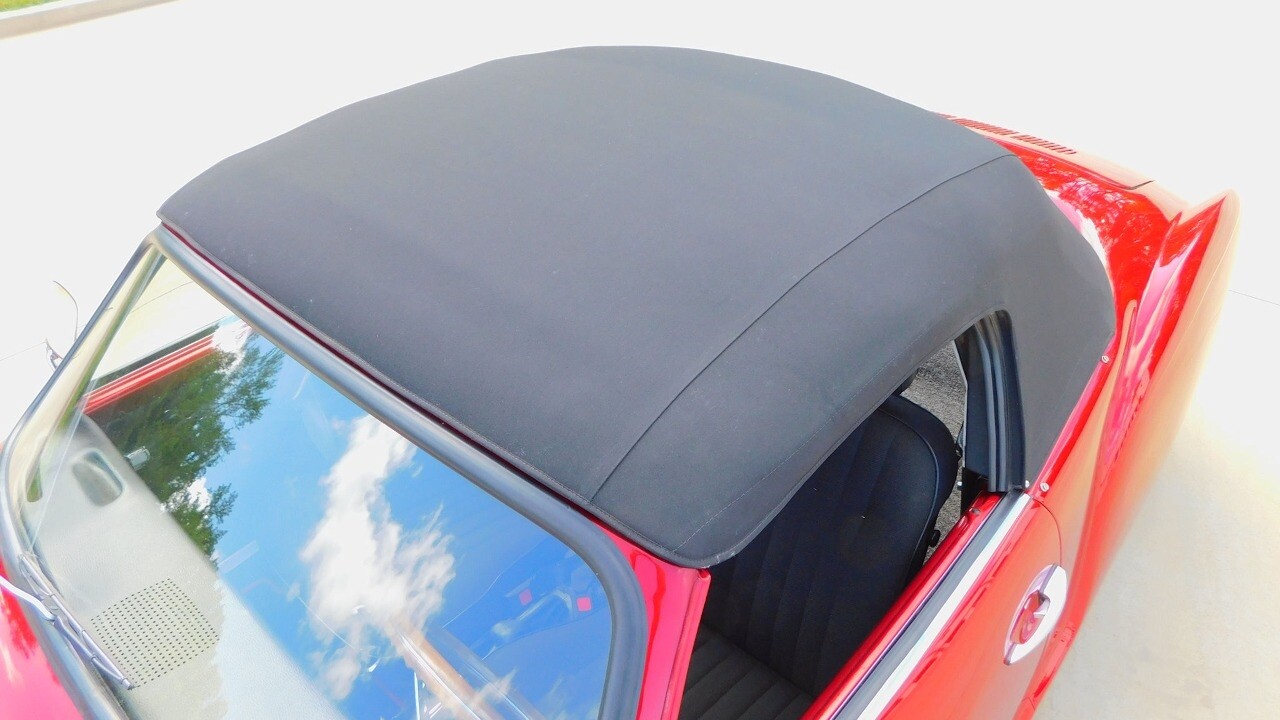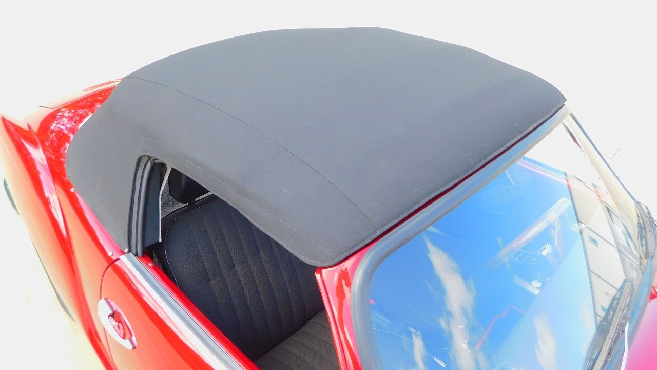 Take a seat inside and you're greeted with a black cloth interior that complements the exterior's bold shade. Adding to its charm, the vehicle features a manual convertible top, letting you enjoy open-air drives on those sunny days.