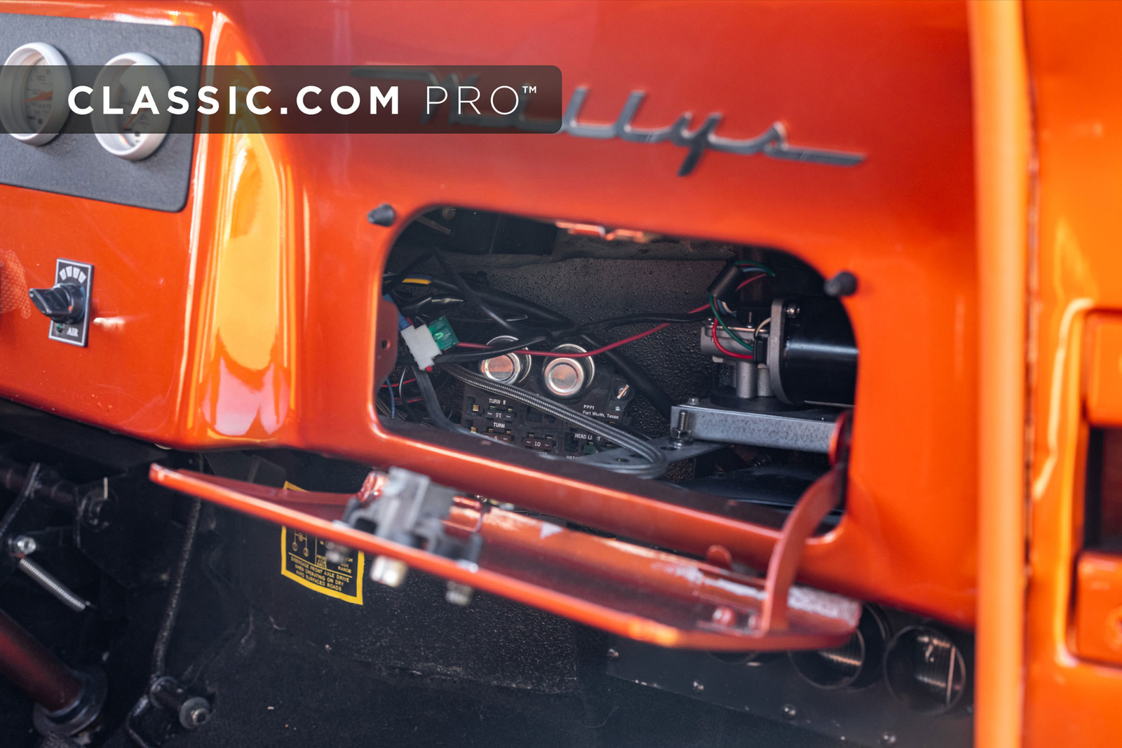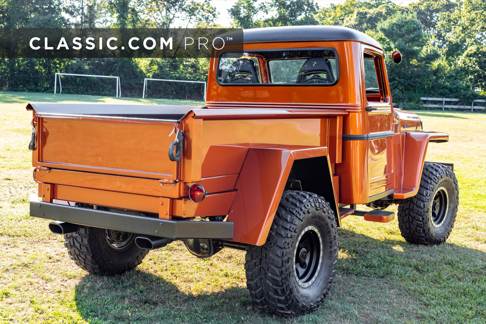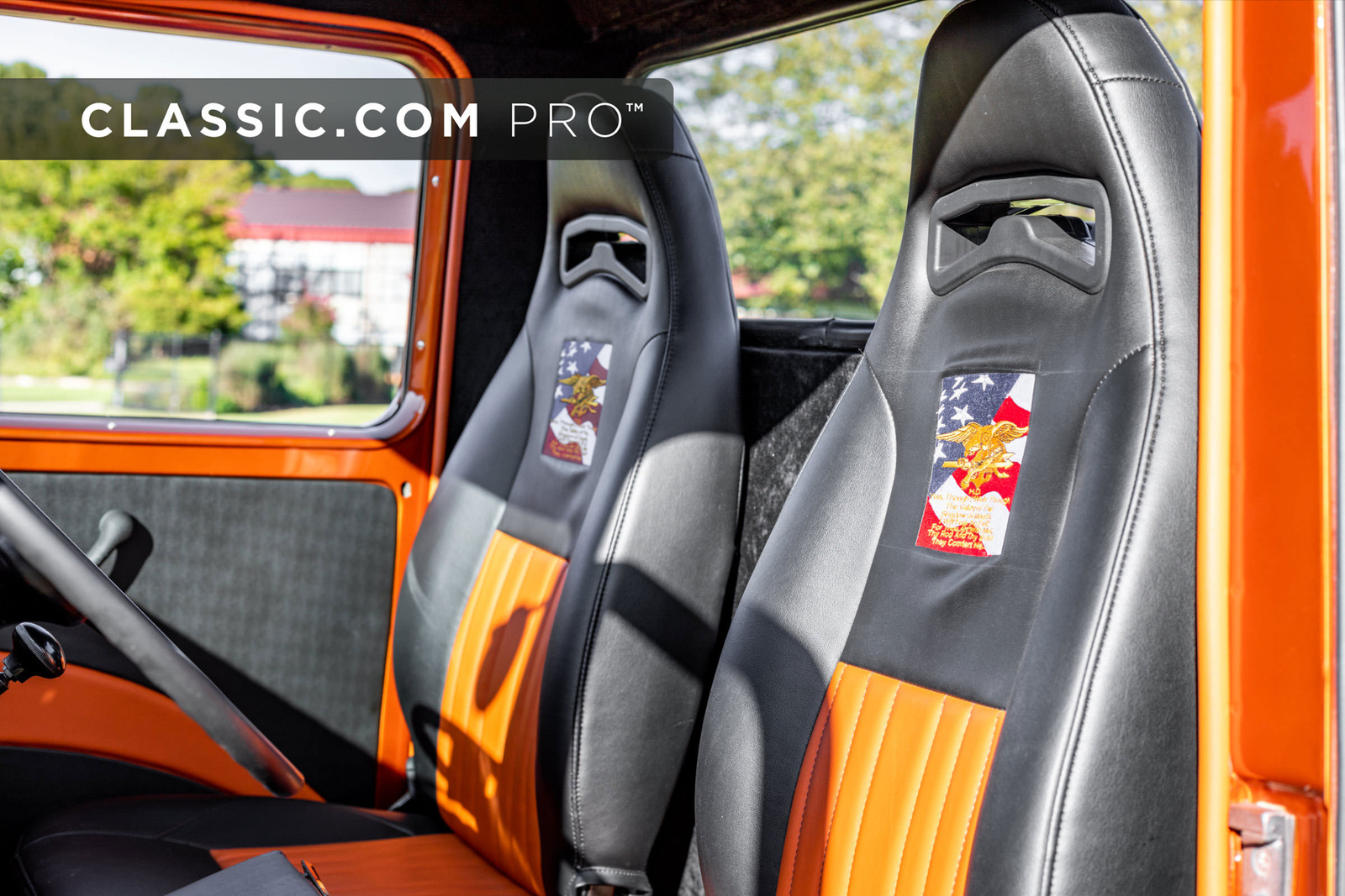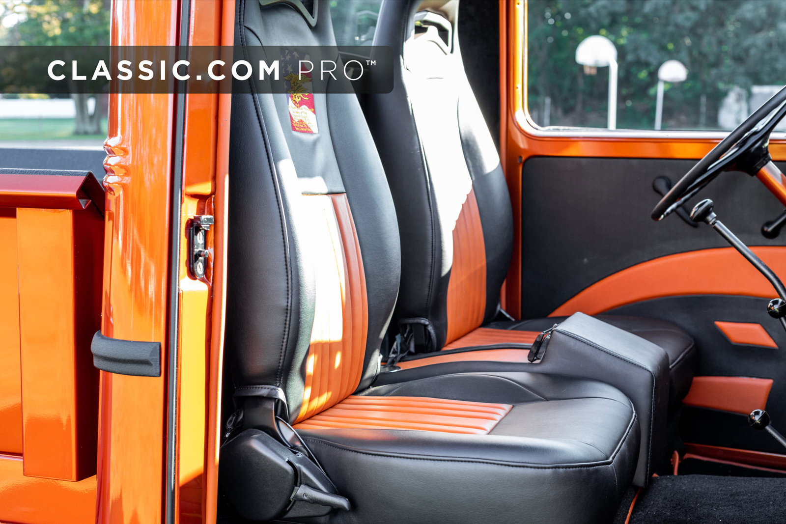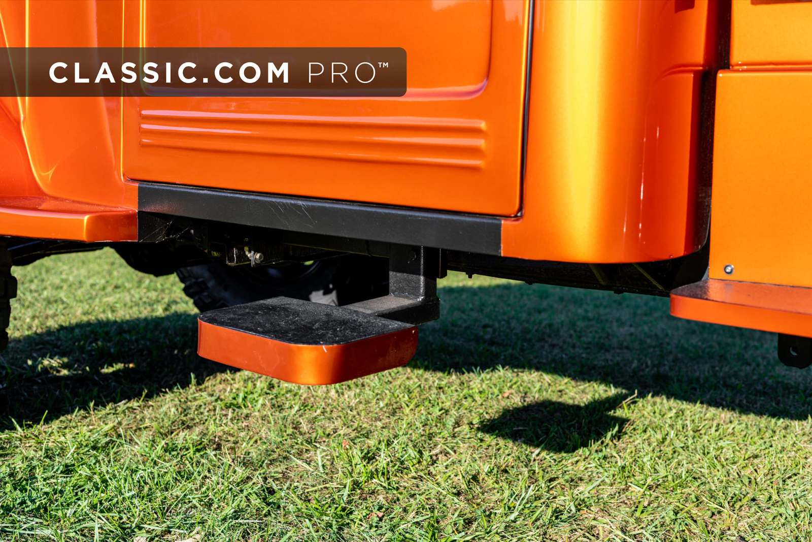 This 1962 Jeep Willys Pickup underwent a full restoration in 2016-2017 and shows just 2 miles on the new odometer (total mileage is unknown). The original straight-six cylinder engine has been replaced in favor of a powerful Chevy-sourced 350ci V8 matched to its original Borg-Warner T90 3-speed manual transmission. This capable and utilitarian Jeep has been modified significantly to modernize mechanical components and give it a unique but classic look. This example was repainted in burnt orange and is complemented by a custom black and orange leather interior with matching floor mats and headliner. The custom center console houses a newer Kenwood stereo head unit. Additional upgrades include new glass and seals, a new dual exhaust, and a suspension lift to accommodate 35 Mickey Thompson tires. The truck is located in Long Island, NY.