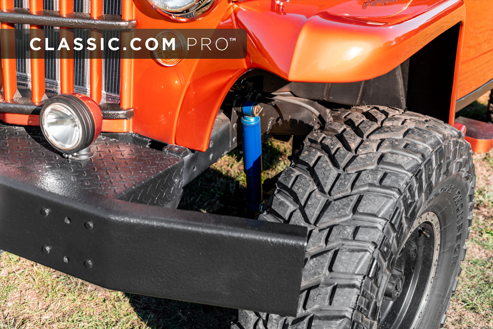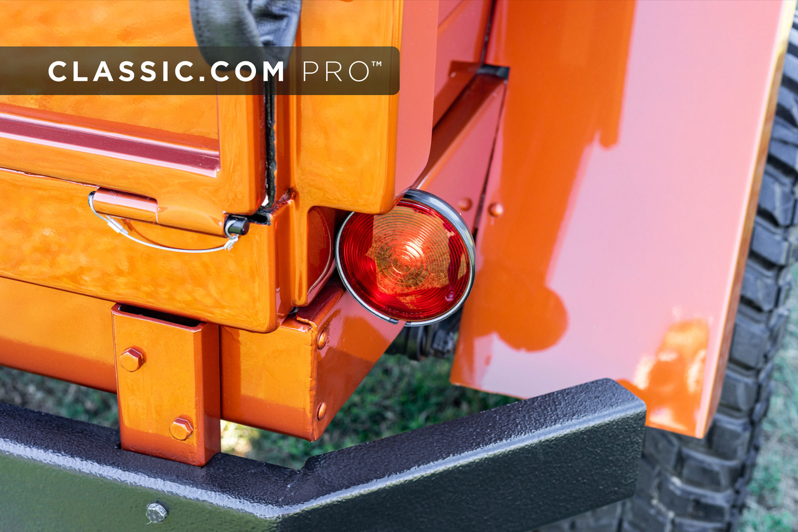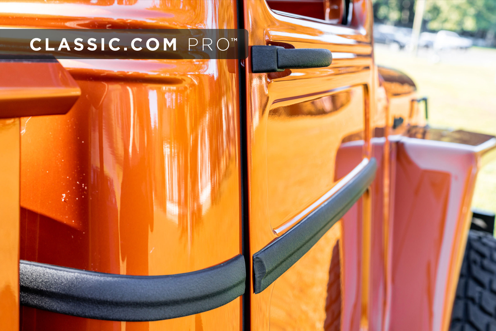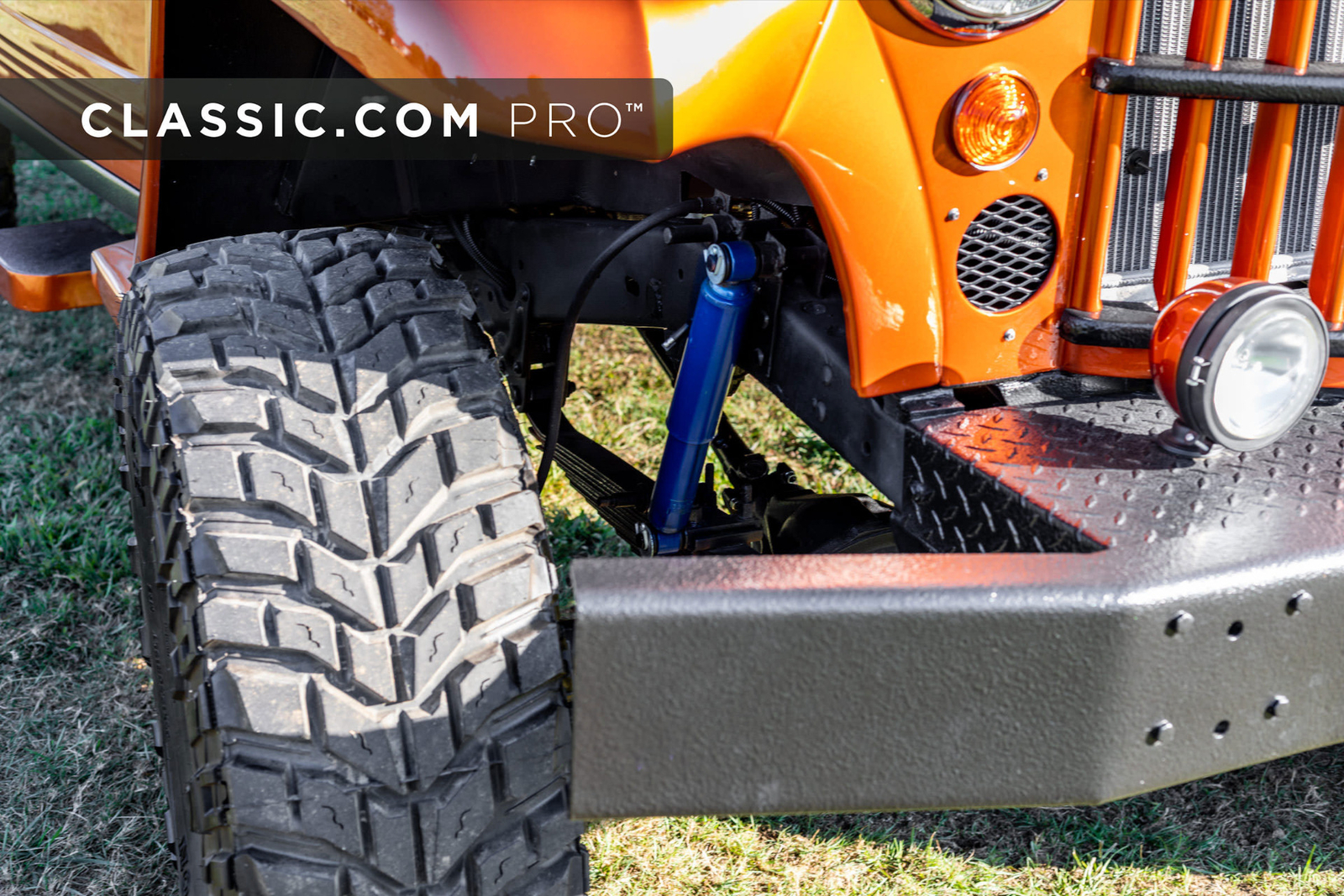 This 1962 Jeep Willys Pickup underwent a full restoration in 2016-2017 and shows just 2 miles on the new odometer (total mileage is unknown). The original straight-six cylinder engine has been replaced in favor of a powerful Chevy-sourced 350ci V8 matched to its original Borg-Warner T90 3-speed manual transmission. This capable and utilitarian Jeep has been modified significantly to modernize mechanical components and give it a unique but classic look. This example was repainted in burnt orange and is complemented by a custom black and orange leather interior with matching floor mats and headliner. The custom center console houses a newer Kenwood stereo head unit. Additional upgrades include new glass and seals, a new dual exhaust, and a suspension lift to accommodate 35 Mickey Thompson tires. The truck is located in Long Island, NY.