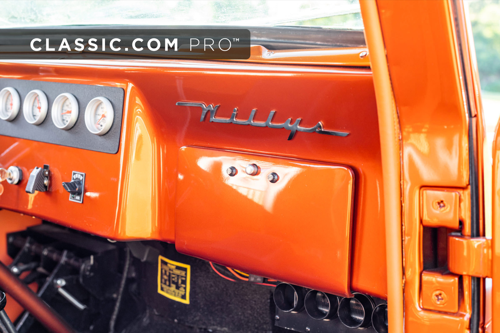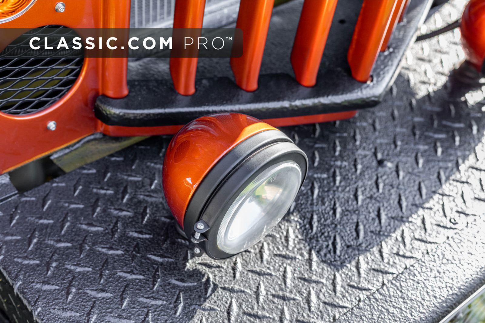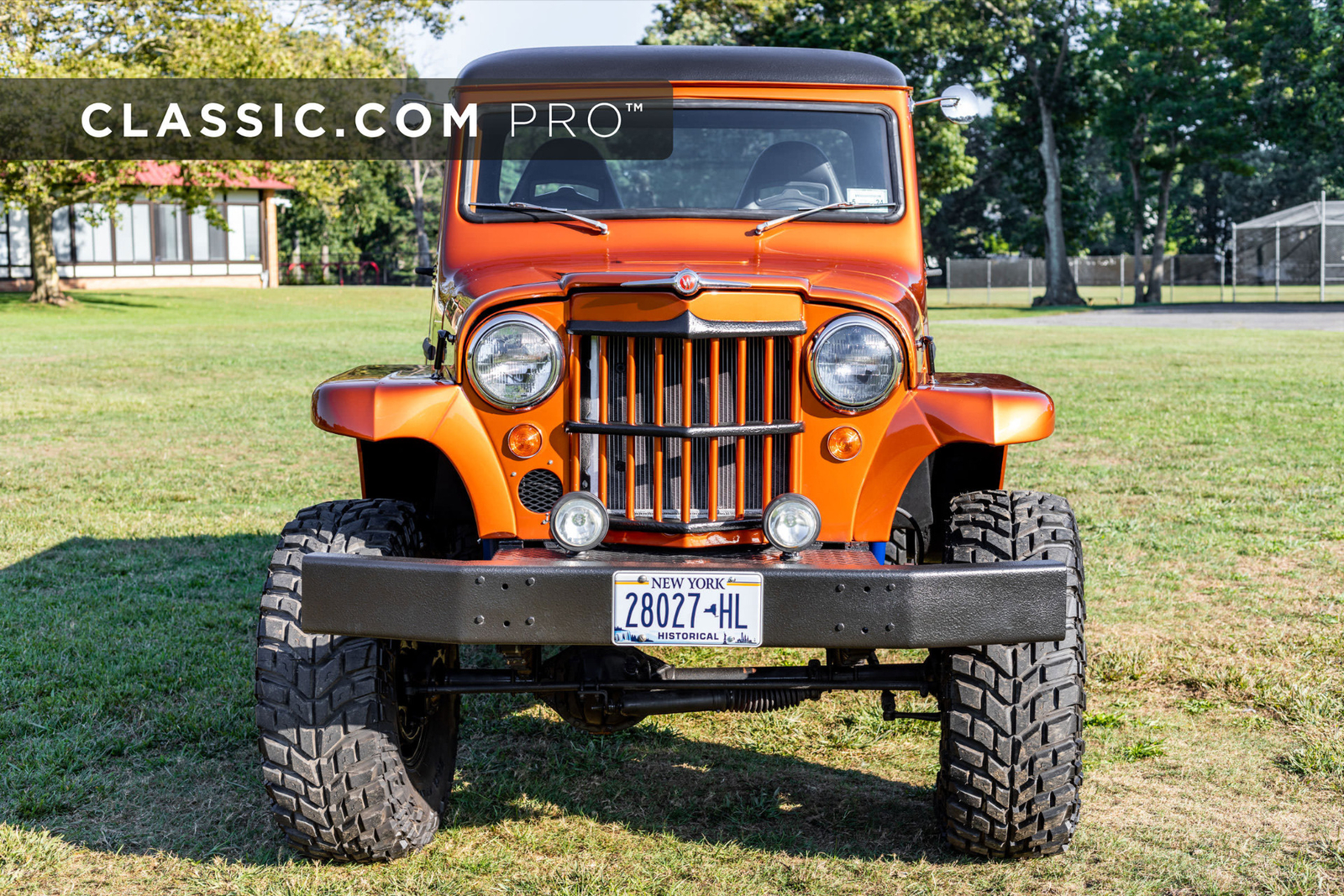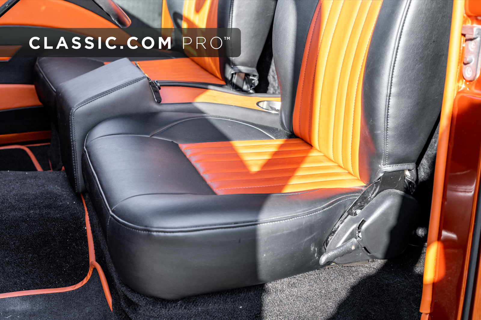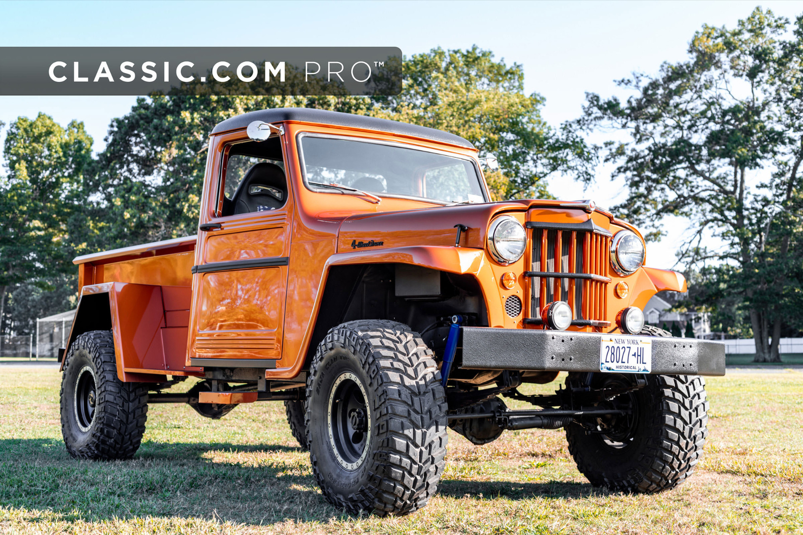 This 1962 Jeep Willys Pickup underwent a full restoration in 2016-2017 and shows just 2 miles on the new odometer (total mileage is unknown). The original straight-six cylinder engine has been replaced in favor of a powerful Chevy-sourced 350ci V8 matched to its original Borg-Warner T90 3-speed manual transmission. This capable and utilitarian Jeep has been modified significantly to modernize mechanical components and give it a unique but classic look. This example was repainted in burnt orange and is complemented by a custom black and orange leather interior with matching floor mats and headliner. The custom center console houses a newer Kenwood stereo head unit. Additional upgrades include new glass and seals, a new dual exhaust, and a suspension lift to accommodate 35 Mickey Thompson tires. The truck is located in Long Island, NY.